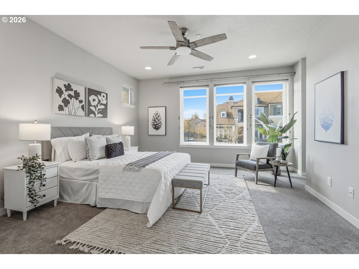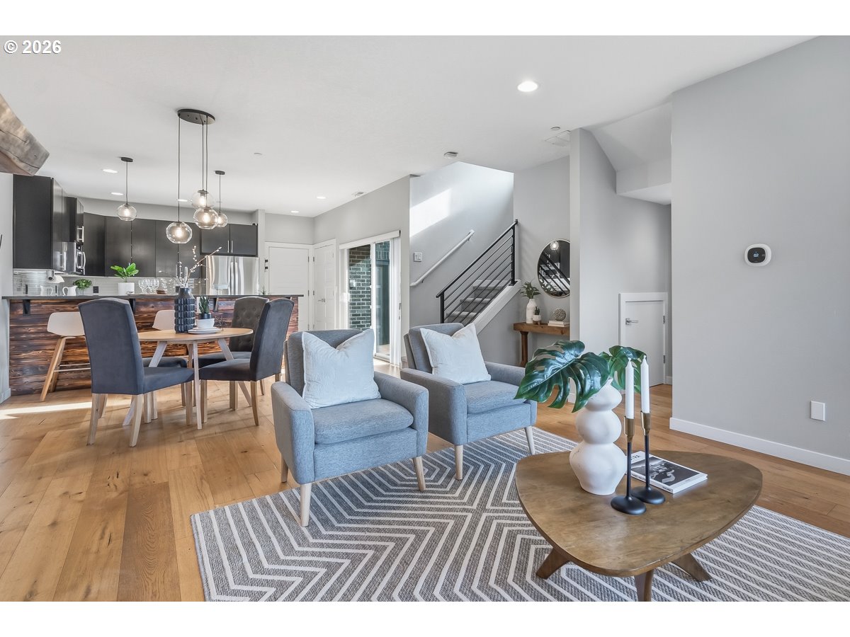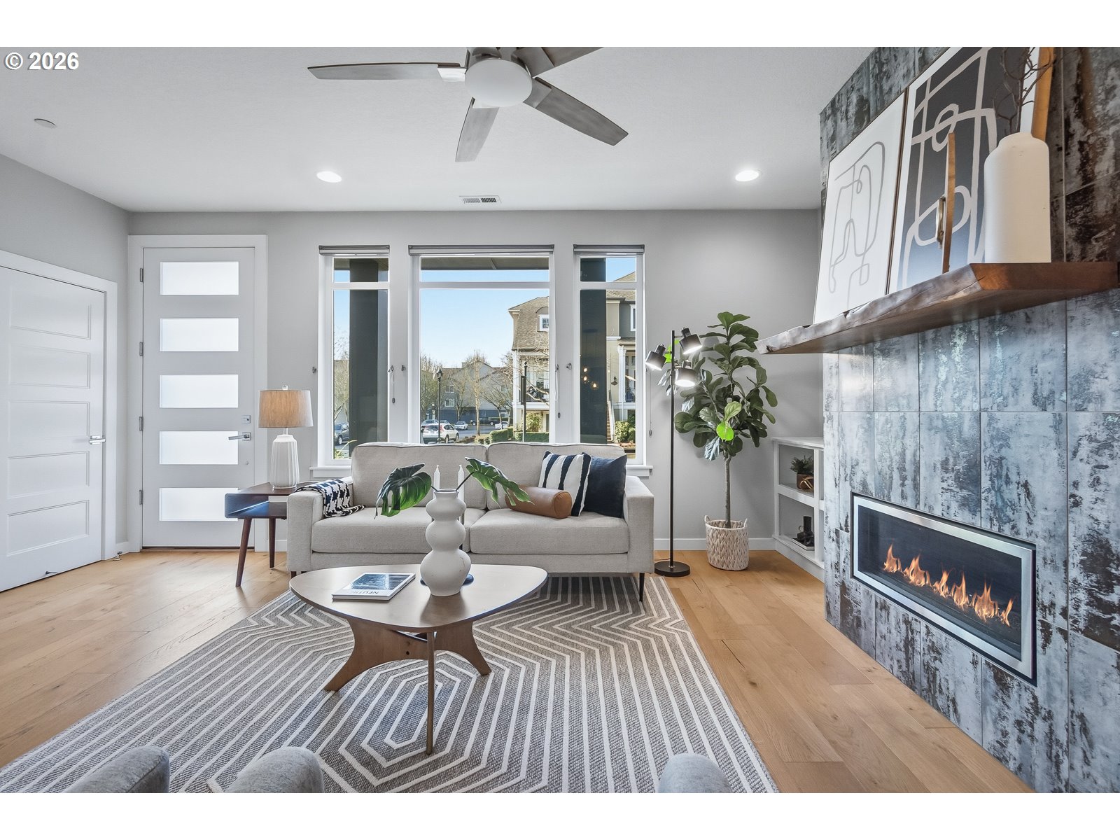 Set in the heart of Wilsonville’s beloved Villebois community, this stunning detached residence offers effortless living and LOW HOA dues in one of the area’s most sought-after neighborhoods. This striking home is thoughtfully designed, beautifully maintained, and filled with natural light, showcasing hardwood floors, quartz countertops, custom tile, and designer cabinetry. The inviting open-concept main level seamlessly connects the living room with a custom tile gas fireplace and built-ins to the dining area and gourmet kitchen, complete with stainless steel appliances, pantry, and eat-bar—perfect for both everyday living and entertaining. A slider leads to a private patio with an auto-drip system, hot/cold spicket, and space that is ideal for grilling and outdoor gatherings, while a unique retractable glass garage door creates a fun, flexible entertaining space. The second level features three bedrooms, two bathrooms, and convenient laundry, highlighted by a spacious primary suite with French door entry, walk-in closet, and a spa-like bath with dual sinks, soaking tub, and tile walk-in shower. The vaulted upper level provides exceptional versatility with a large bonus retreat featuring a kitchenette, full bath, and bedroom/office—ideal as a separate living space, media room, or guest suite. The 2-car garage features a mini split with heating and cooling, perfect for winter and summer projects. With central air conditioning, central vac, and recent updates including new carpet, furnace, and dishwasher. A prime corner-lot location offering incredible walkability to parks, trails, markets, and community events, this move-in-ready home delivers comfort, flexibility, and an exceptional Villebois lifestyle.