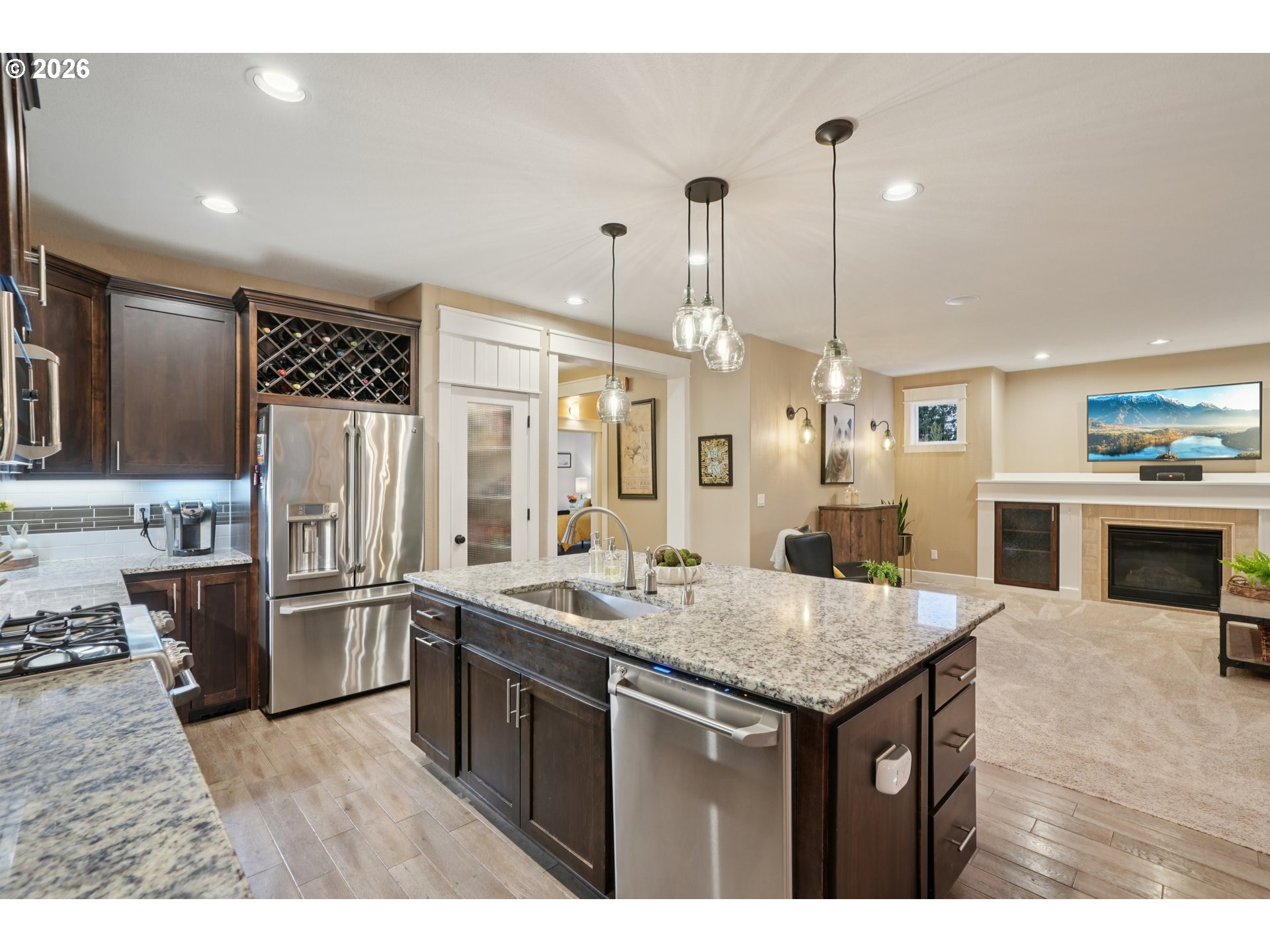 Fantastic custom Happy Valley home with amazing layout on quiet street! This home is the only home on the loop without a home built in front of it and is within minutes to all the parks, schools, shopping, and other amenities of the desirable Happy Valley area. Main level primary suite with walk-in closet, walk-in shower, soaking tub, bay window, and access to back patio. Two additional bedrooms on the main level adjacent to full bath, the 5th bedroom is currently used as office. Excellent open kitchen overlooks living and dining rooms with granite counters, stainless steel appliances, gas range, large pantry and big island with breakfast bar. Upper level features spacious family room perfect as a media room. Two additional bedrooms upstairs, one with en suite bathroom. A total of two full baths on the upper level for a total of 4 full bathrooms in the home. Storage room off the upper level bathroom provides plenty of space in addition to more storage in the huge 3-car garage. Head outside to enjoy the covered patio which extends out into the backyard, fantastic low maintenance landscaping in both the front and backyards. This well thought out home is absolutely a must see!