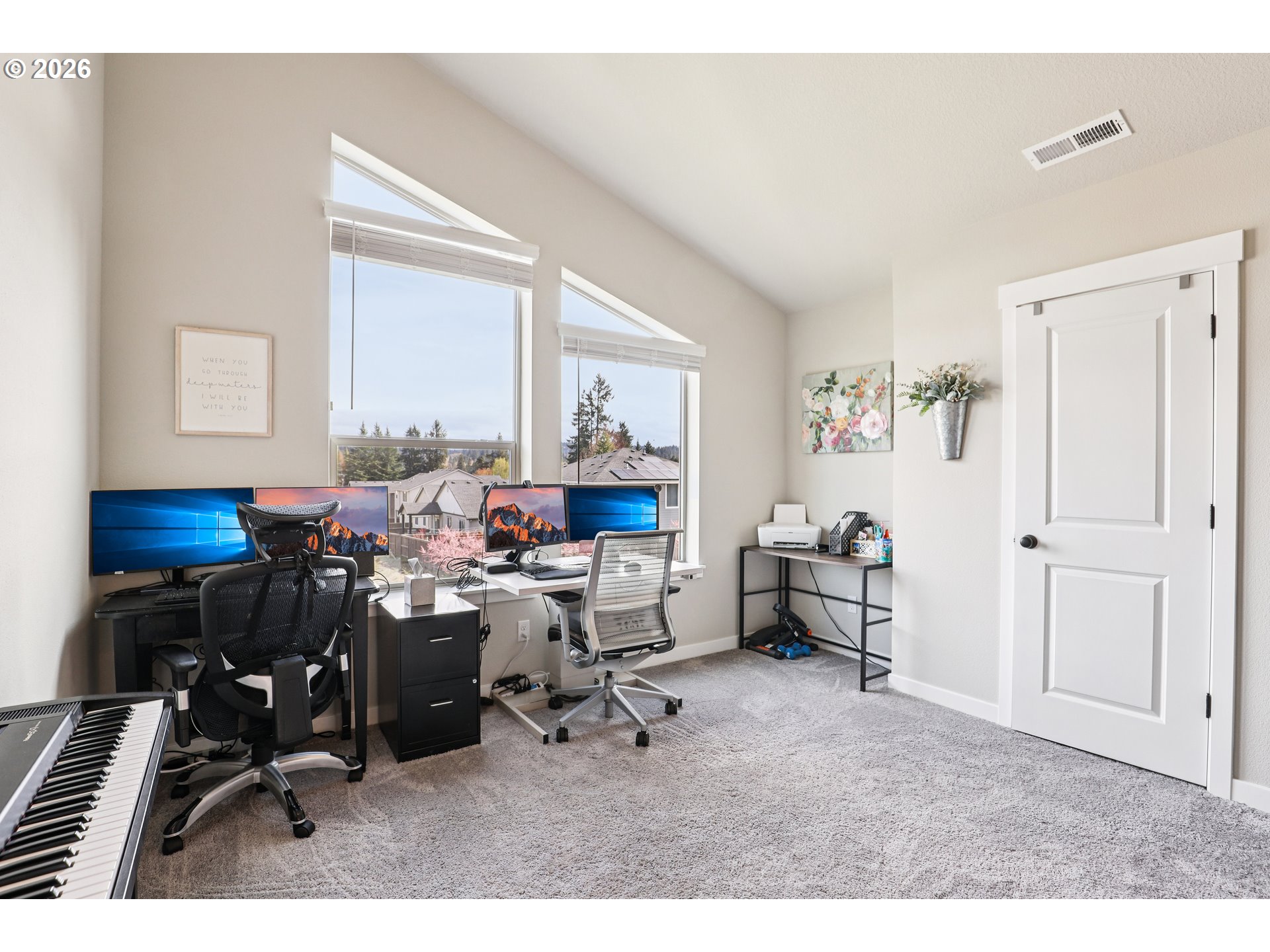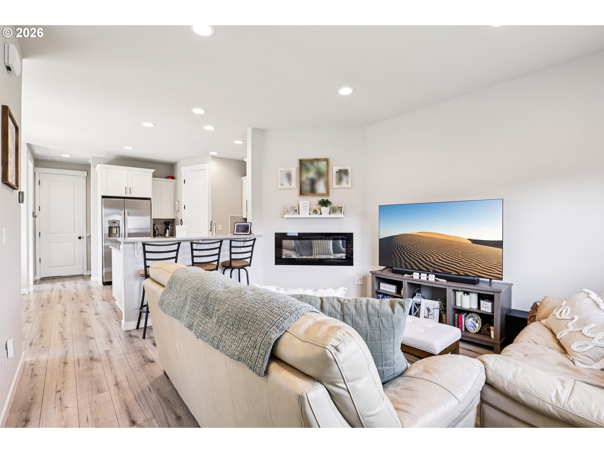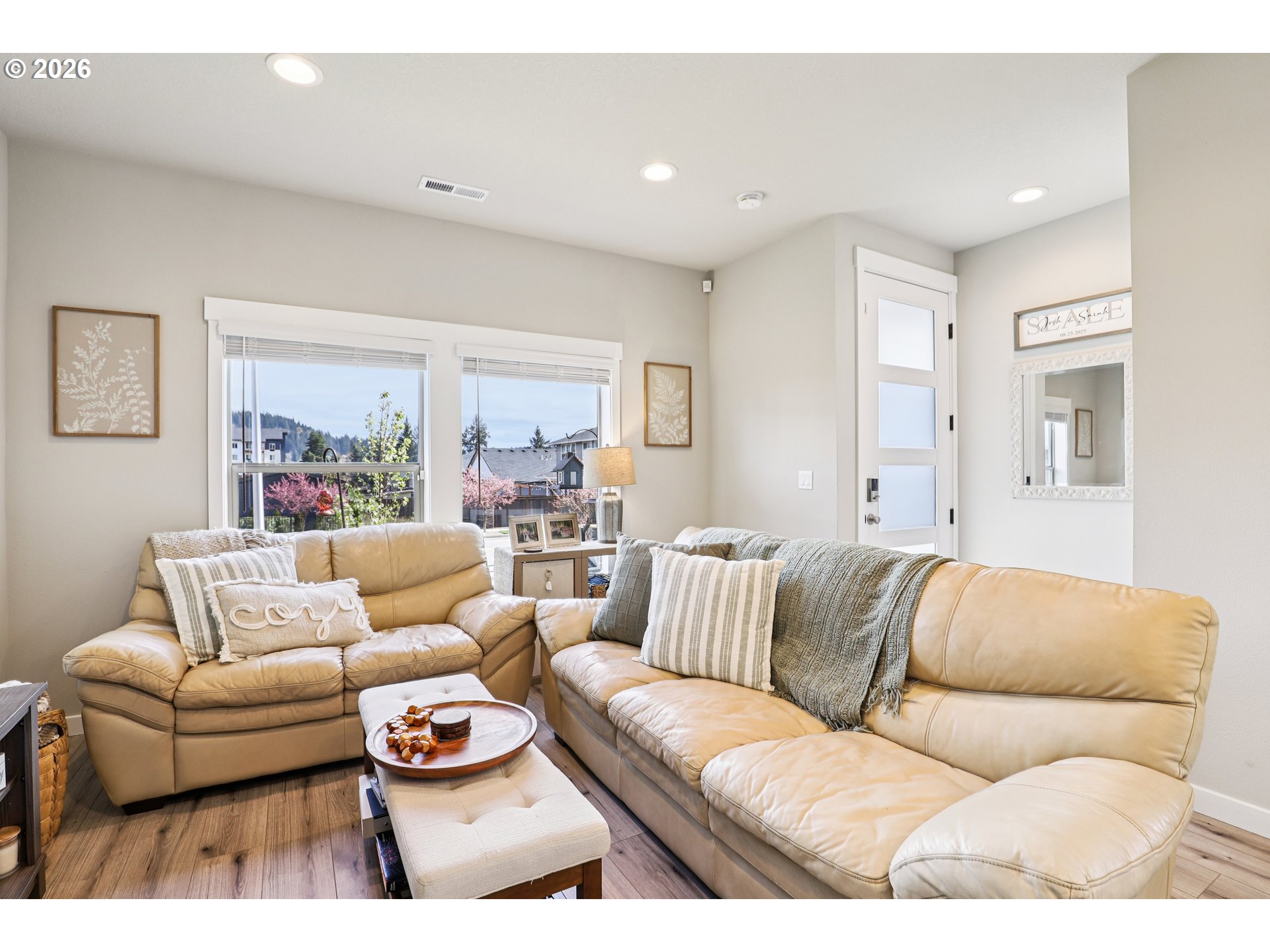 (503) 893-8874Former model home and still showing like it, this 3 bedroom, 2.5 bath townhome delivers the polished feel of newer construction without the wait. Built in 2022, the 1,608 sq ft layout pairs modern design with everyday function, featuring quartz countertops, a bright and open kitchen with upgraded white cabinetry, pantry storage, durable laminate flooring, and an electric fireplace that adds just the right amount of warmth to the main living space. Extra tall ceilings and doors on the main floor enhance the sense of space, while abundant natural light fills the home, highlighted by beautiful sunrise views through the east-facing living room windows.Upstairs, the owner’s suite offers a luxurious oversized, tiled walk-in shower, while both bathrooms feature quartz countertops and upgraded finishes. The second bedroom stands out with vaulted ceilings and an extra walk-in closet, adding both charm and functionality. As an end-unit duplex with only one shared wall, the home provides added privacy and a quieter living experience.The attached 2-car garage, tankless water heater, and well-planned layout make daily life easy, while the home’s model-home roots give it an extra edge in style and finish. Purchased just one year ago, it still feels fresh, clean, and move-in ready—a smart option for buyers who want low-maintenance living with a more elevated look and feel.Beyond the home itself, the community brings real lifestyle value with a pool, park, playgrounds, covered sports court, trails, community center, and yard maintenance through the HOA. Happy Valley Park, Scouters Mountain Nature Park, Happy Valley Town Center, and Happy Valley Station are all nearby, putting recreation, groceries, dining, and local conveniences close at hand. A great opportunity to step into a home that feels newer, sharper, and just a little more special than the standard resale. Mortgage savings may be available for buyers of this listing.