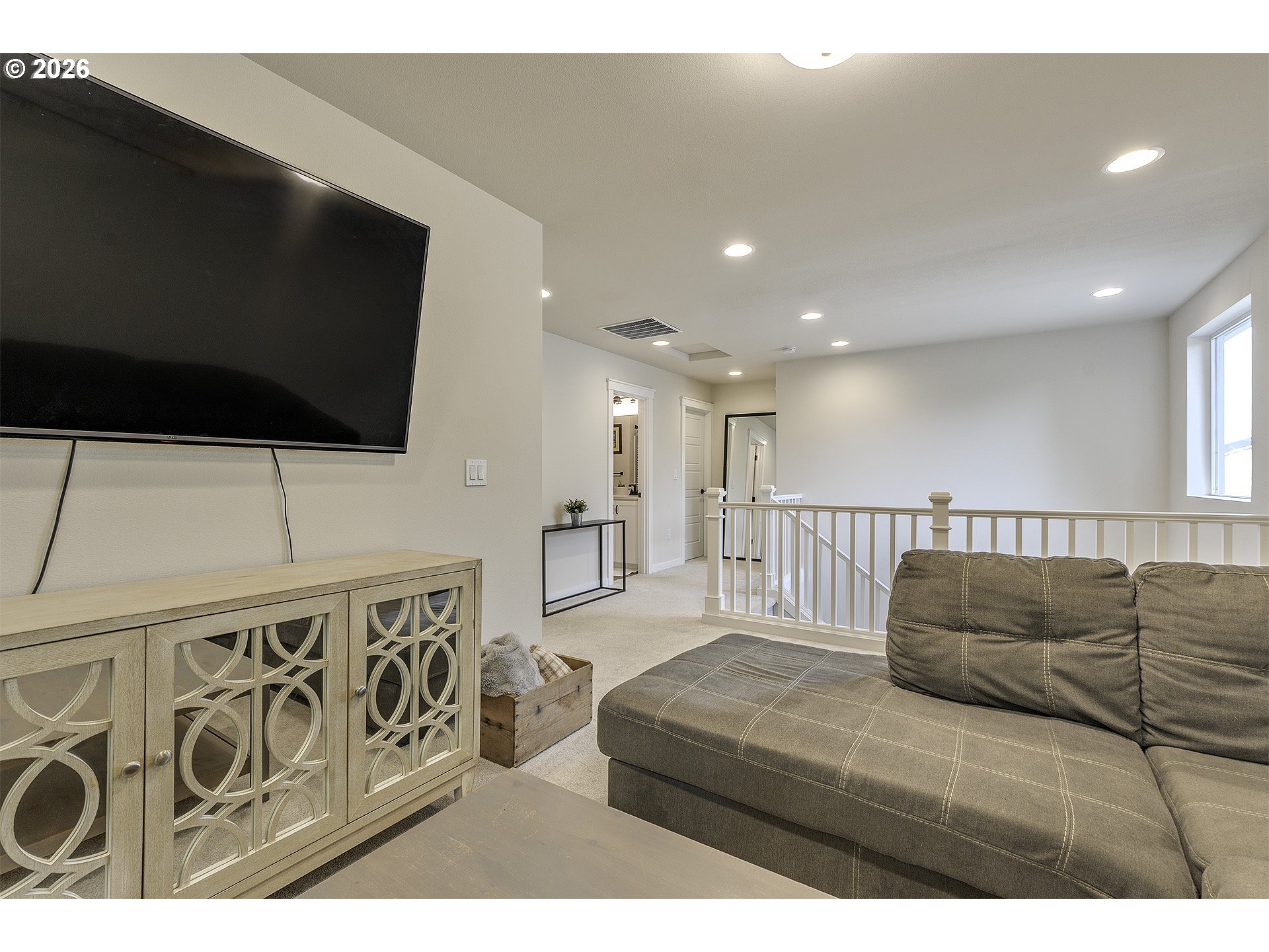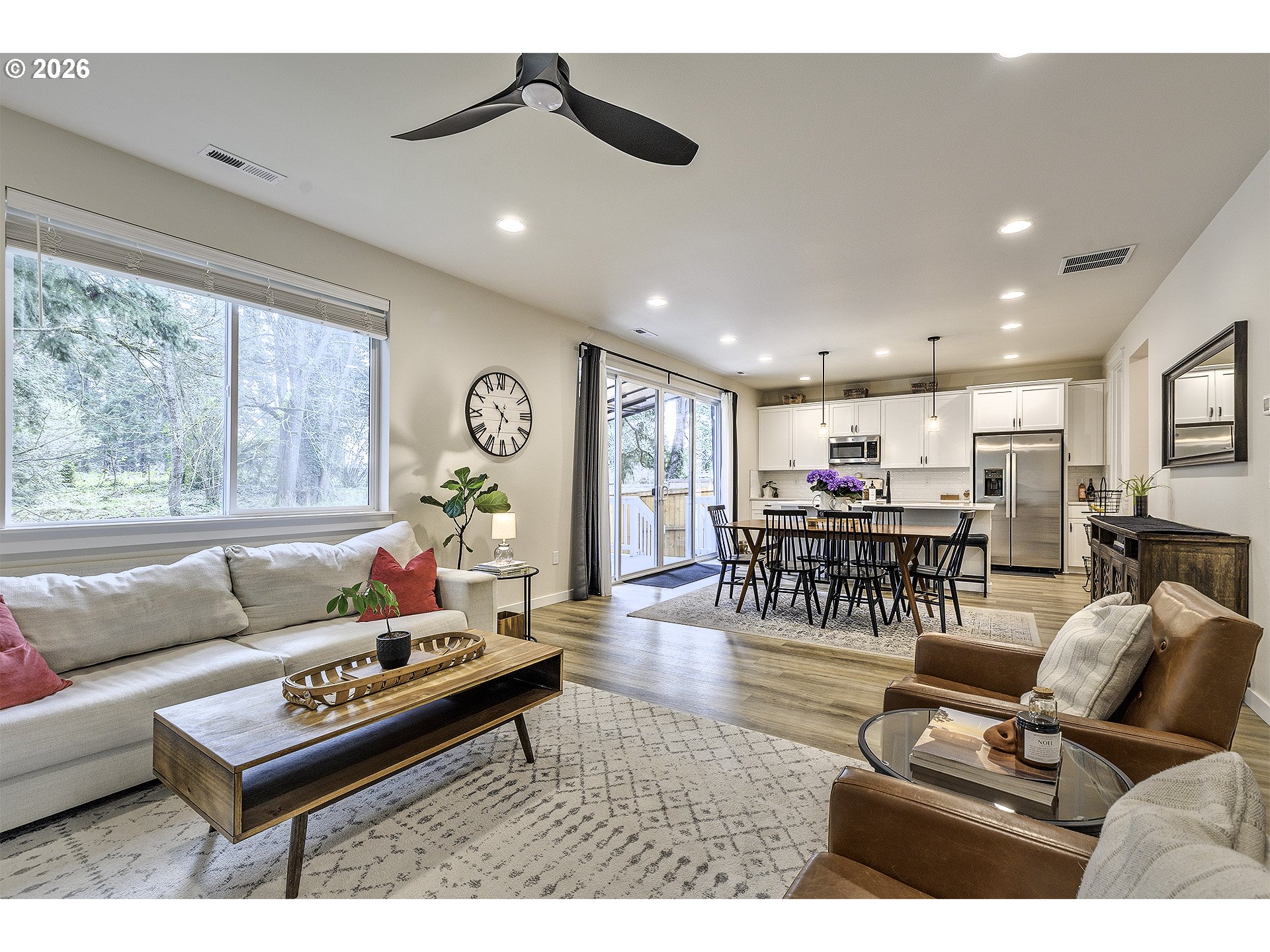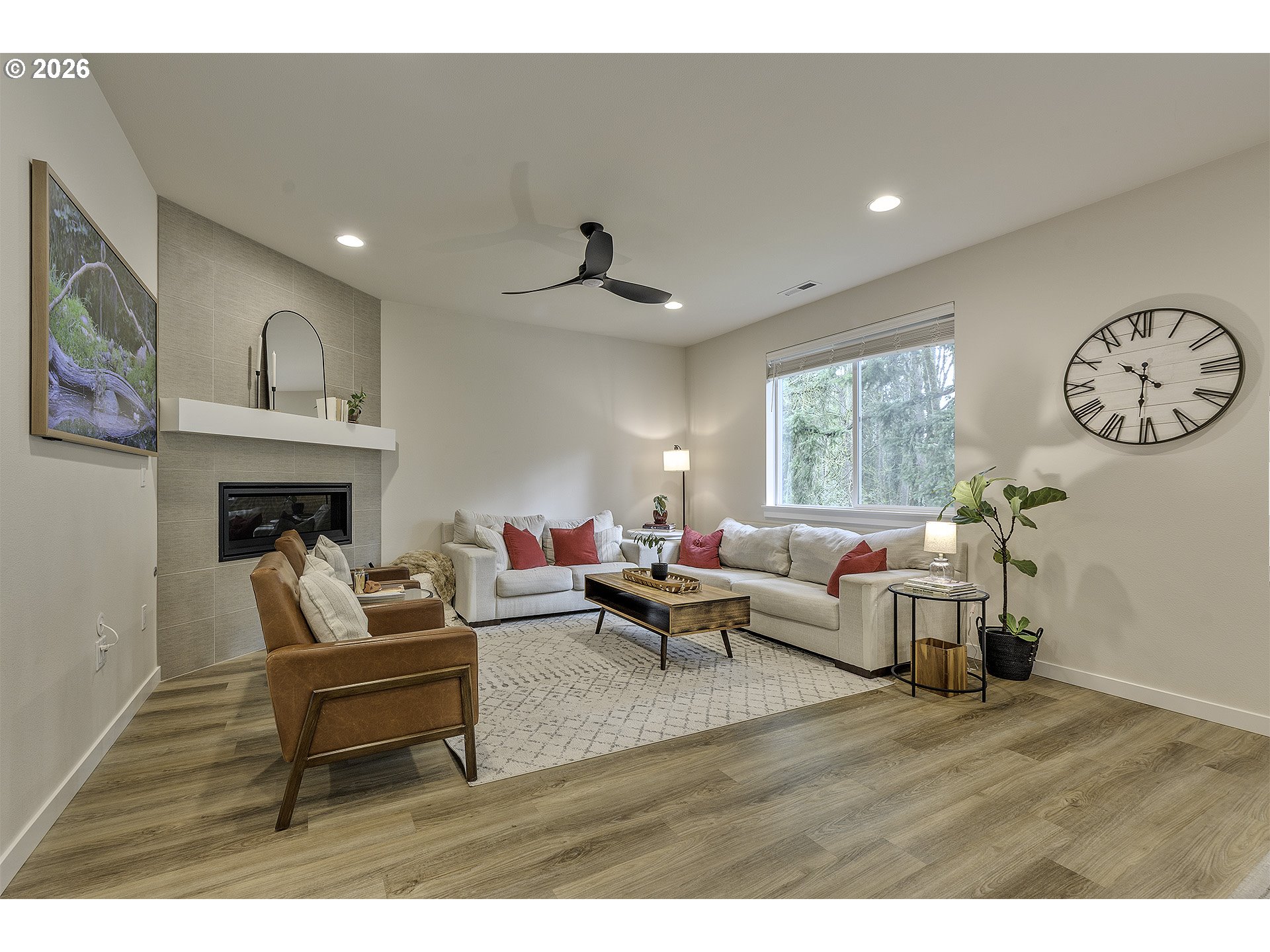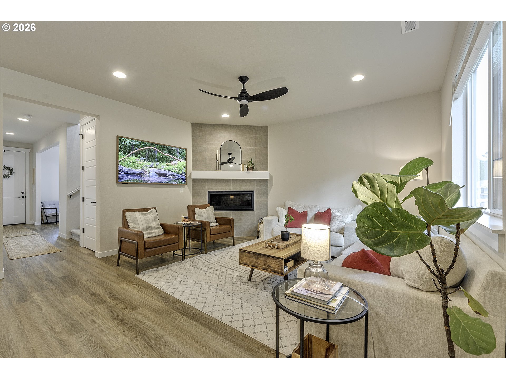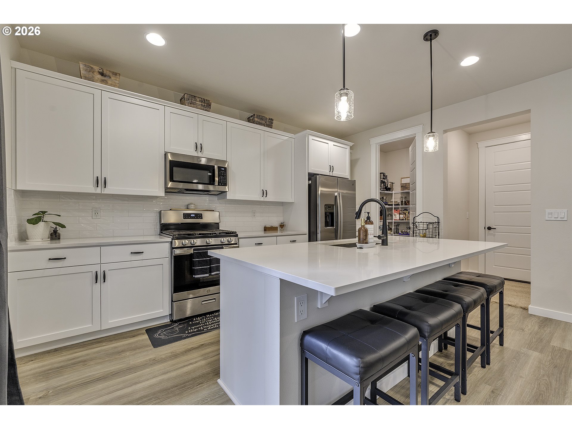 Open House - Saturday April 4th 12-2PM & Sunday April 5th 10AM-12PM ~ Beautifully upgraded floor plan featuring the sought after Pebble Beach design collection, modern finishes, functional living spaces, and a private setting. The open concept main level offers durable luxury vinyl plank flooring through the entry, study, kitchen, dining, and great room. The kitchen is the heart of the home with classic white shaker cabinetry, quartz countertops, matte black hardware, stainless steel appliances, gas range, pendant lighting, and a large island perfect for gathering and everyday living. The spacious great room features a designer tile fireplace, abundant natural light, and large center sliding glass doors that create a seamless connection to the outdoor living space. A dedicated main level study offers great flexibility for working from home, hobbies, or guest use. Upstairs you will find a generous primary suite, additional bedrooms, and a versatile loft that works well as a second living space, playroom, or media area. The primary bath features dual vanities with quartz counters, matte black fixtures, and a beautifully tiled shower surround. Step outside to enjoy the large covered deck overlooking a fully fenced backyard that backs to a beautiful green space, offering privacy and a peaceful setting for relaxing or entertaining. Additional upgrades include central air-conditioning, recessed lighting, ceiling fan prewiring in multiple rooms, Cat6 wiring, upgraded stair rail, modern matte black interior hardware, upgraded interior doors, garage door opener, front yard and back yard irrigation, patio gas stub, and passive radon system.