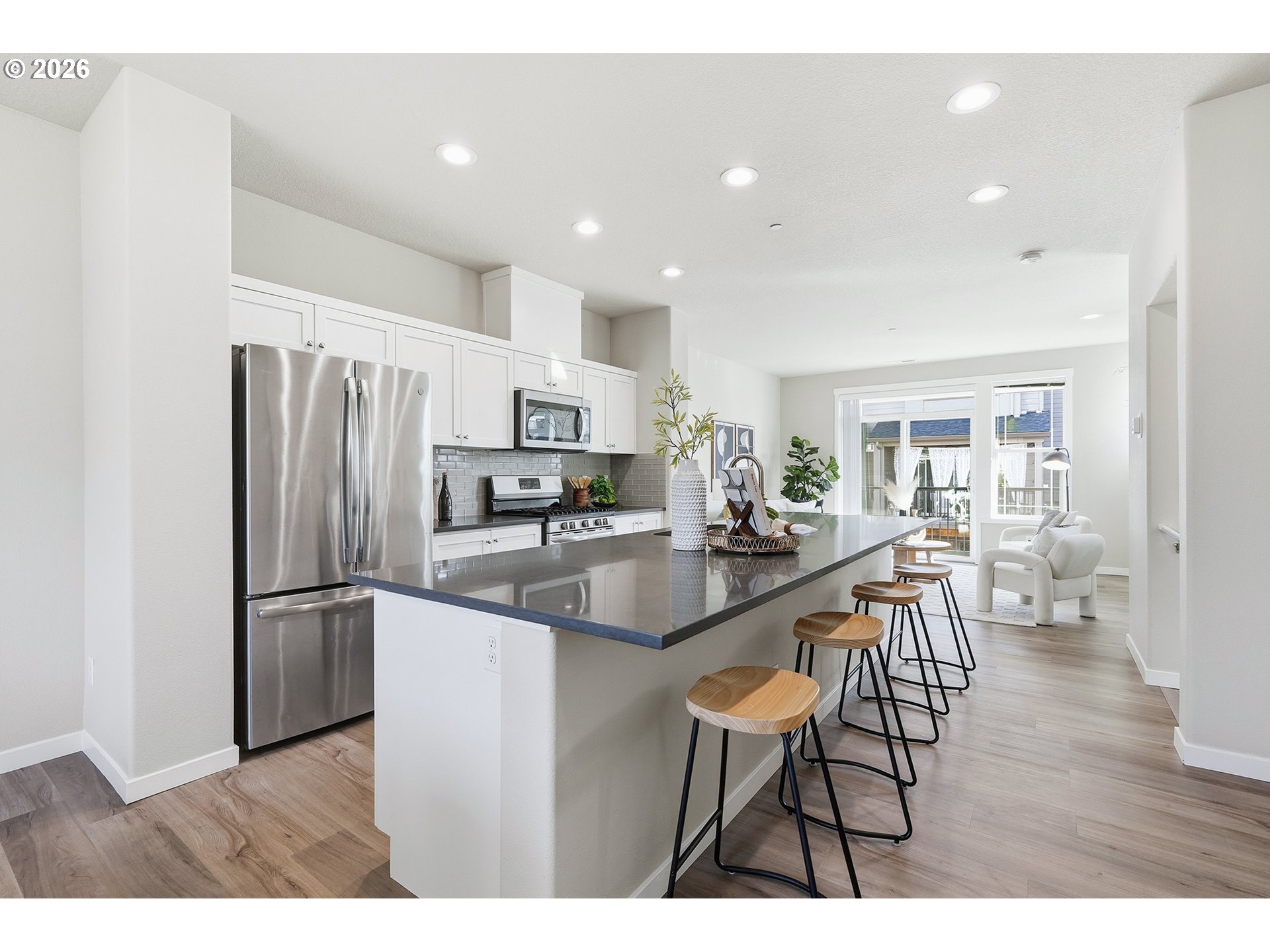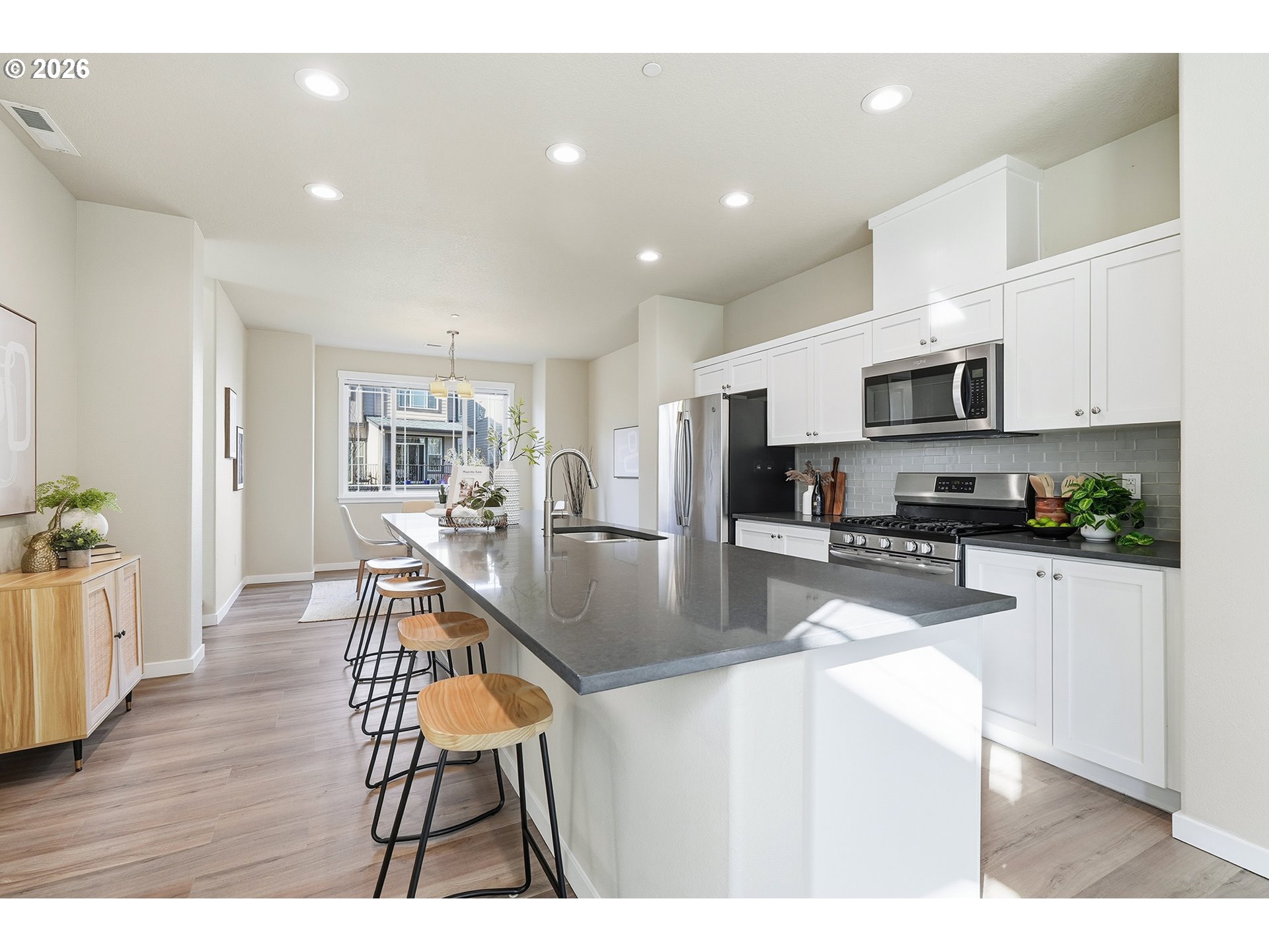 Phenomenal end unit townhome centrally located within Villebois. The interior has received a fresh coat of paint, new LVT floors and carpet. A foodie's kitchen featuring quartz counters, stainless steel appliances and oversized island. This home boasts high ceilings, gas fireplace and recessed ceiling in the primary bedroom. The spacious and bright nook on the upper level makes for a perfect work from home or workout space. The oversized single car garage with rear parking pad driveway offers plenty of space for multiple cars, workbench or hobby projects. Centrally located in Villebois between Edelweiss and Sofia Park, enjoy pickle ball, beach volleyball and many kids' playgrounds. Just steps to the central Piazza for coffee and convenience store.