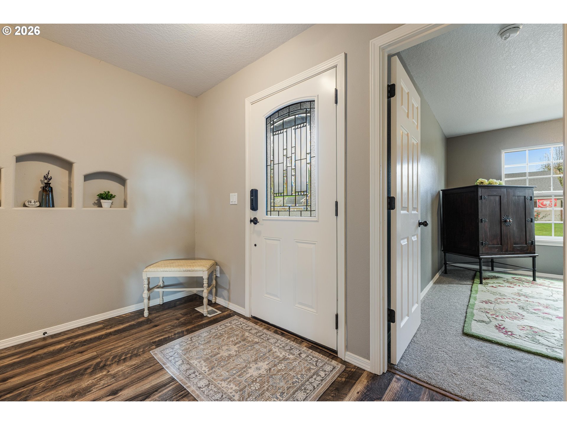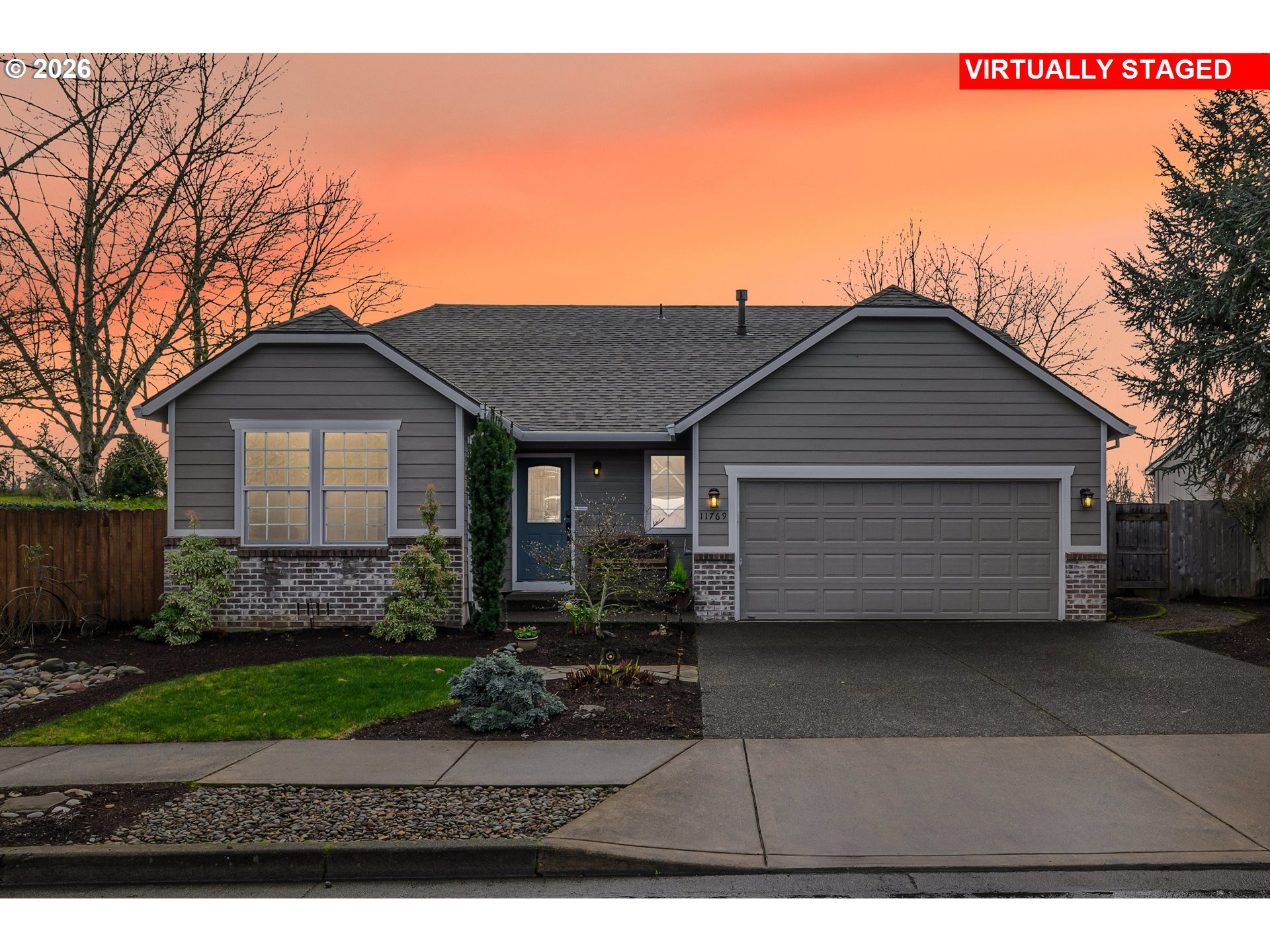 Serene one-level home on a quiet cul-de-sac, backing to green space and adjacent to a private community park. Open-concept great room with vaulted ceiling, gas fireplace with new rock surround and mantel, and slider to a patio & private fenced yard with pergola, garden box. Private primary suite with walk-in closet and ensuite bath, plus two additional bedrooms and full bath. Extensively updated with interior and exterior paint, all new flooring, stainless steel kitchen appliances, garbage disposal, touchless faucet, new Rheem water heater, 80% efficiency Coleman gas furnace, Goodman A/C, and a new 30-year CertainTeed Designer roof with new gutters and Leaf Guard. Close to many nearby amenities and easy access to quaint downtown Oregon City and more. Meticulously maintained and move-in ready!