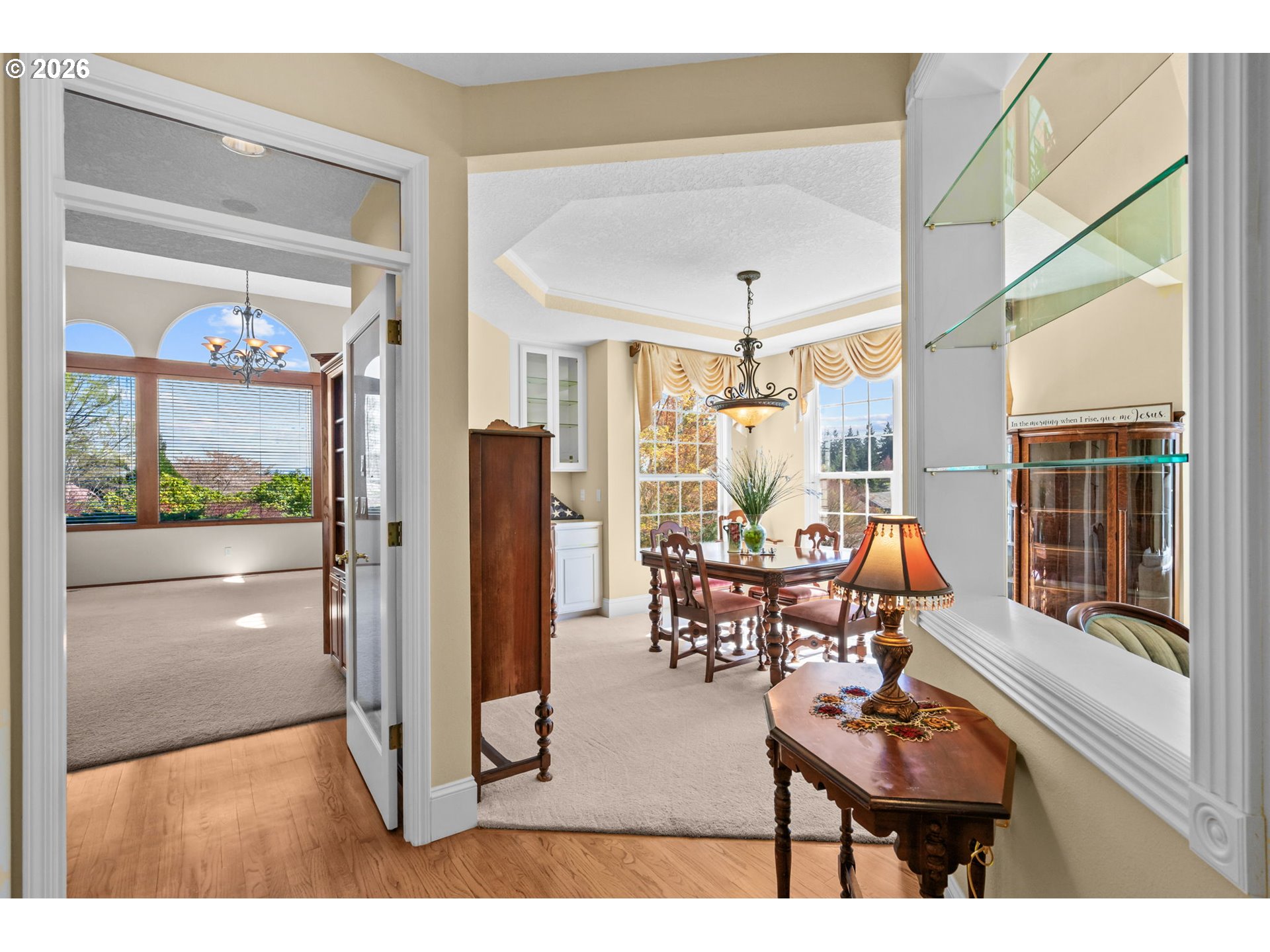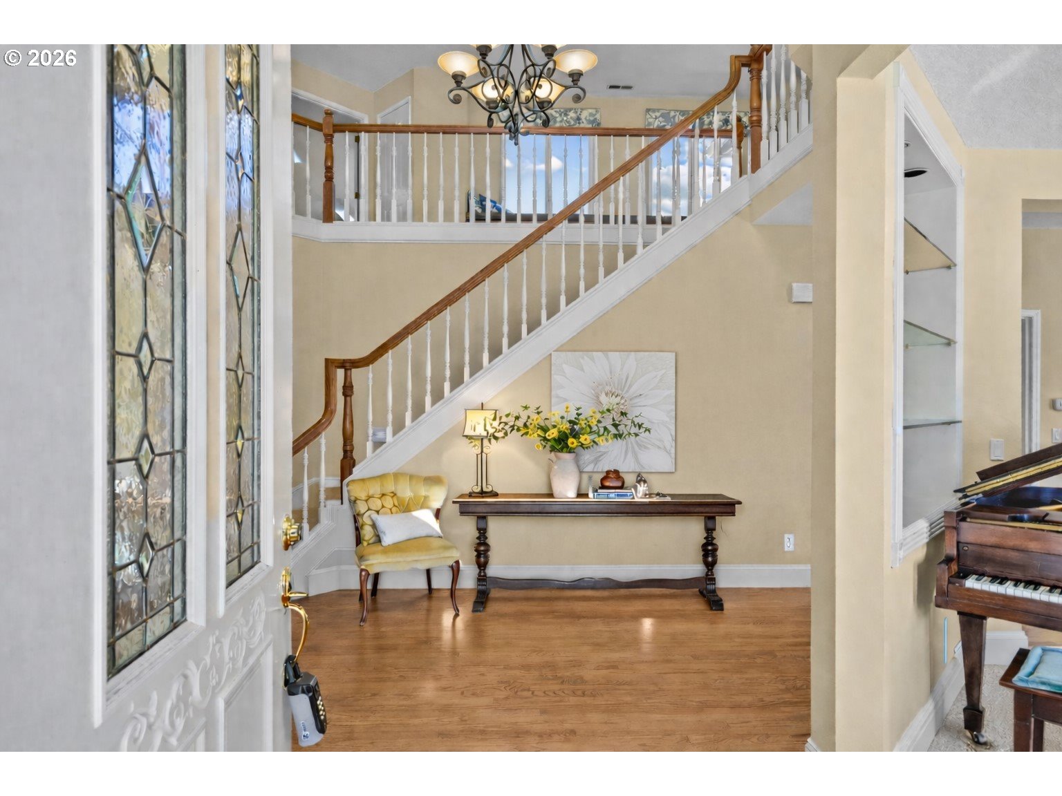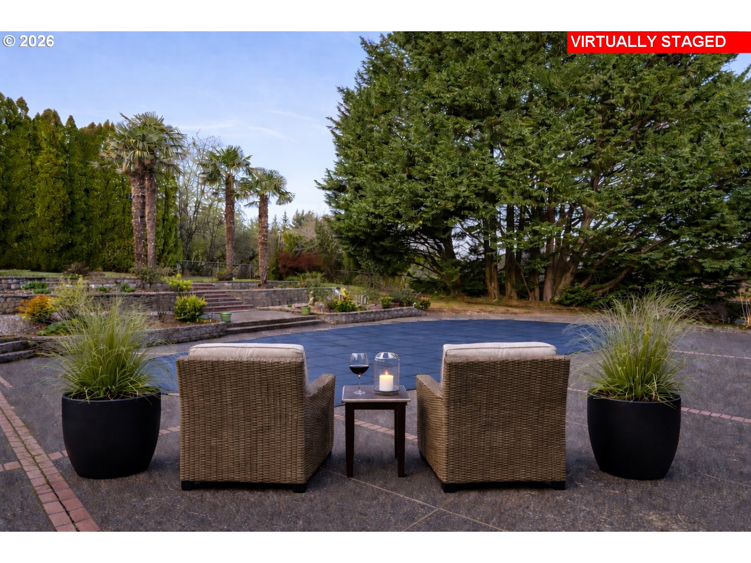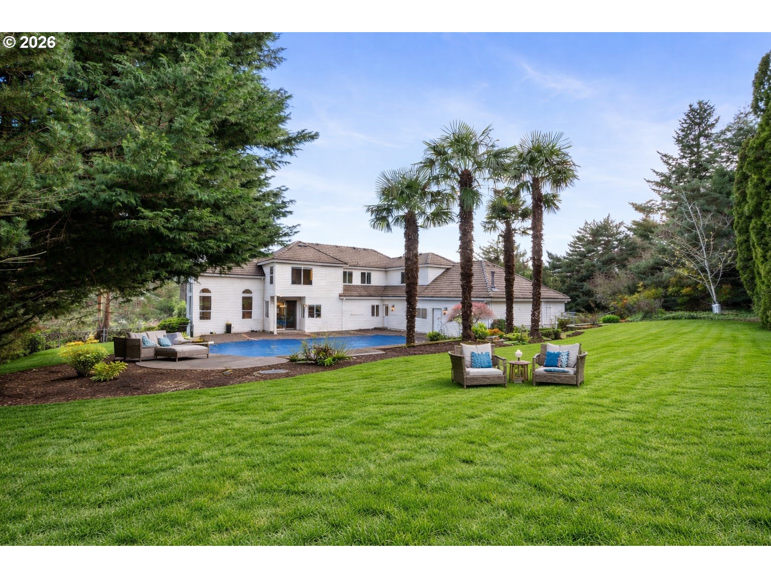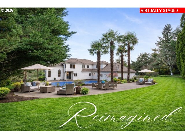 Acreage, Mt.Hood views, and gated privacy—this one checks boxes you don’t often find together.This exceptional home offers over 4000 square feet of well-designed living on more than an acre of beautifully landscaped grounds. With a main-level primary suite and a thoughtful, functional layout, this home blends comfort, space, and timeless style.The kitchen is equipped with a cooktop island, all stainless-steel appliances, granite countertops, a pantry, and built-in features. It's bright, lovely, with beautiful hardwood floors. It opens seamlessly into a spacious family room featuring a gas fireplace, solid-wood built-ins, and views of Mt. Hood. Just beyond, enjoy effortless indoor-outdoor living with views of the patio, in-ground pool, and lush landscape with palm trees for a nice touch—perfect for entertaining or everyday enjoyment.Upstairs, you'll find two bedrooms connected by a Jack-and-Jill bath, an additional bedroom with its own bath, and a large bonus room offering flexible space for media, play, or guests. The main level also features a dedicated den/office with built-ins, along with formal living and dining areas that provide a classic setting for gatherings.Significant updates over the years include a presidential tile roof, newer furnace and HVAC system, and updated hot water tank, offering both peace of mind and long-term value. Thoughtfully maintained, this home also offers the opportunity to personalize select spaces to suit your own style and vision—be sure to view the reimagined photos for inspiration and possibilities.Opportunities like this are rare—acreage properties in this tucked-away gated community in Happy Valley seldom come available.
