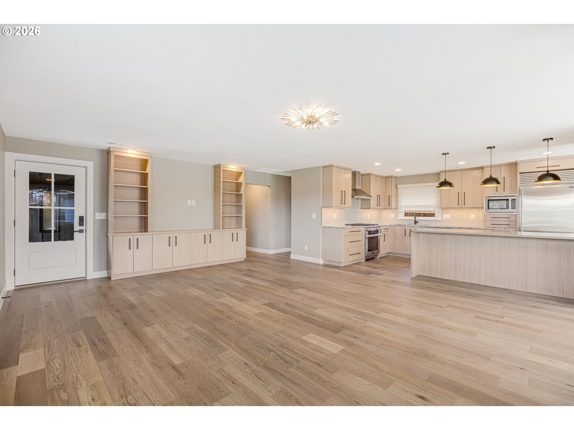 What an amazing property. Hard to find one level home in a great part of Milwaukie with quality you wont find anywhere else in this price range. This home has been completely remodeled in 2025 from the ground up. Only thing original is the foundation and studs. Features a popular open floor plan concept that makes everything light and bright. Gorgeous kitchen with custom cabinetry, upper end appliance package and eating bar. There is a cute dining area for the kitchen and then connects into a bigger dining room. The kitchen, eating areas and great room lay out perfectly and are wonderful for entertaining. Vaulted primary suite with with an incredible bathroom and walk in closet with custom closet organizers. Hard to find 2 1/2 baths, most one level homes have 2 bathrooms. 2nd & 3rd bd have their own full bathroom and then a partial for guests. Utility room with washer and dryer. Home is completely move in ready, has all appliances and window coverings. Oversized lot with brand new concrete and new landscape with sprinklers. Beautiful covered patio with stamped concrete, canned lights and tongue and groove ceiling. Multiple raised beds for the garden enthusiast. Big shop/storage with concrete floor and it's own electrical panel that provides power to this structure and another shed on the property. This is an absolute "10" and must see.