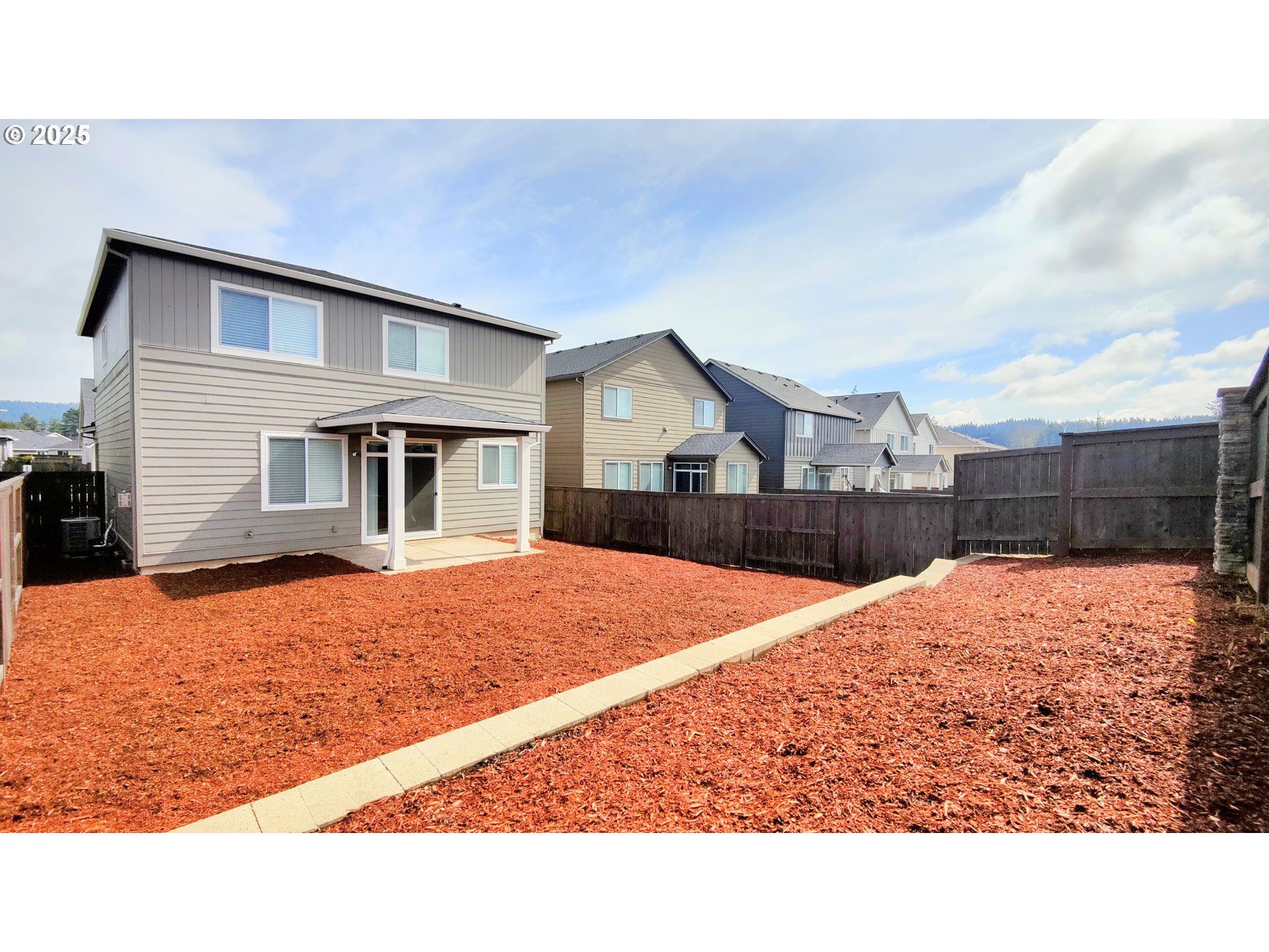 Vacant & Better-Than-New! This beautiful 4-bedroom, 2.5-bath home with AC, built in 2021 by award-winning Holt Homes, combines modern design and energy-efficient upgrades, including a new hybrid water heater, refrigerator, water-resistant laminate flooring. Relax in the cozy living room with a fireplace, a primary suite with a walk-in closet, soaking tub, and shower. The fully equipped kitchen opens to a bright dining area with sliding doors leading to a huge fenced backyard, newly covered with fresh bark wood pieces for easy outdoor living and gardening. Covered patio, perfect creates for year-round entertainment. The upgraded laundry room features a sink, counter space, and wooden drawers for additional storage and convenience. Located in the desirable Pleasant Valley Villages, enjoy amenities like a park, pool, clubhouse, playground, and walking trails. Convenient access to shopping, dining, highways, and great schools. Washer/dryer and refrigerator stay with the house at no extra cost! Schedule your viewing today!