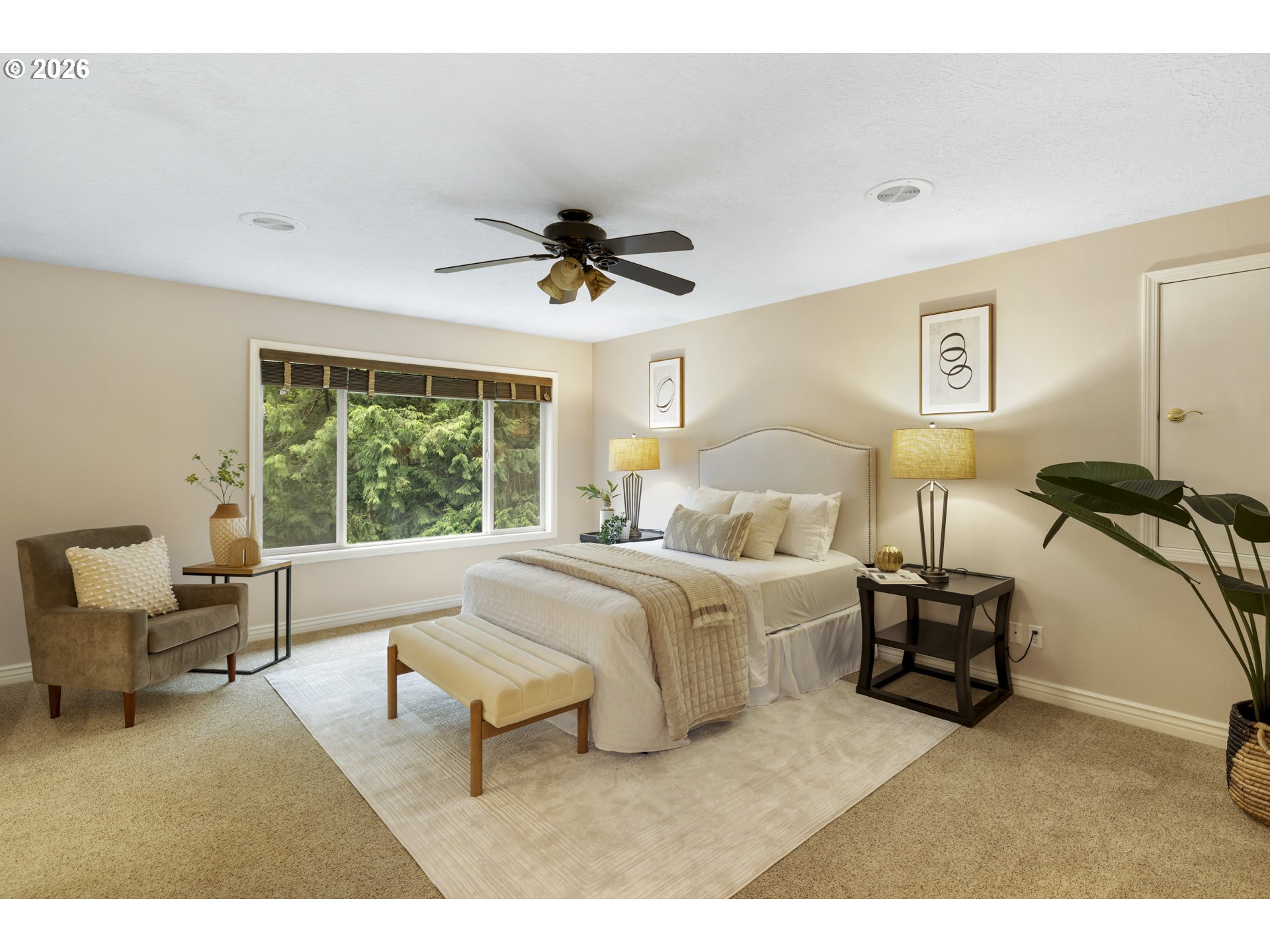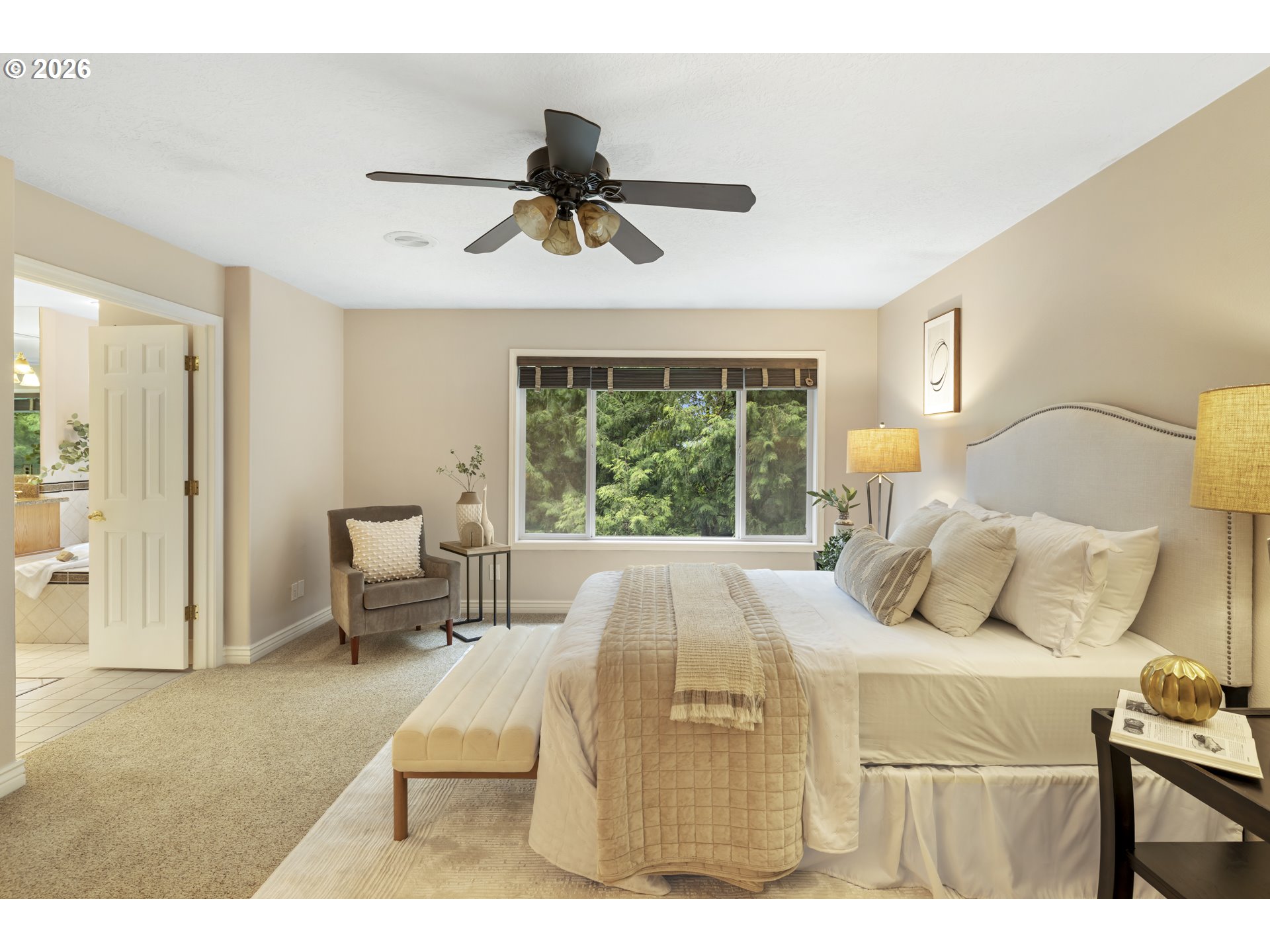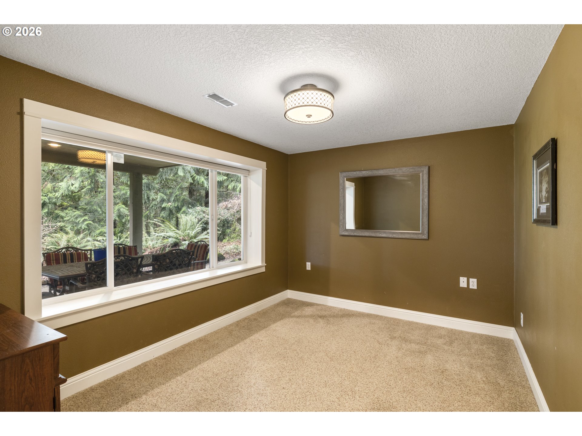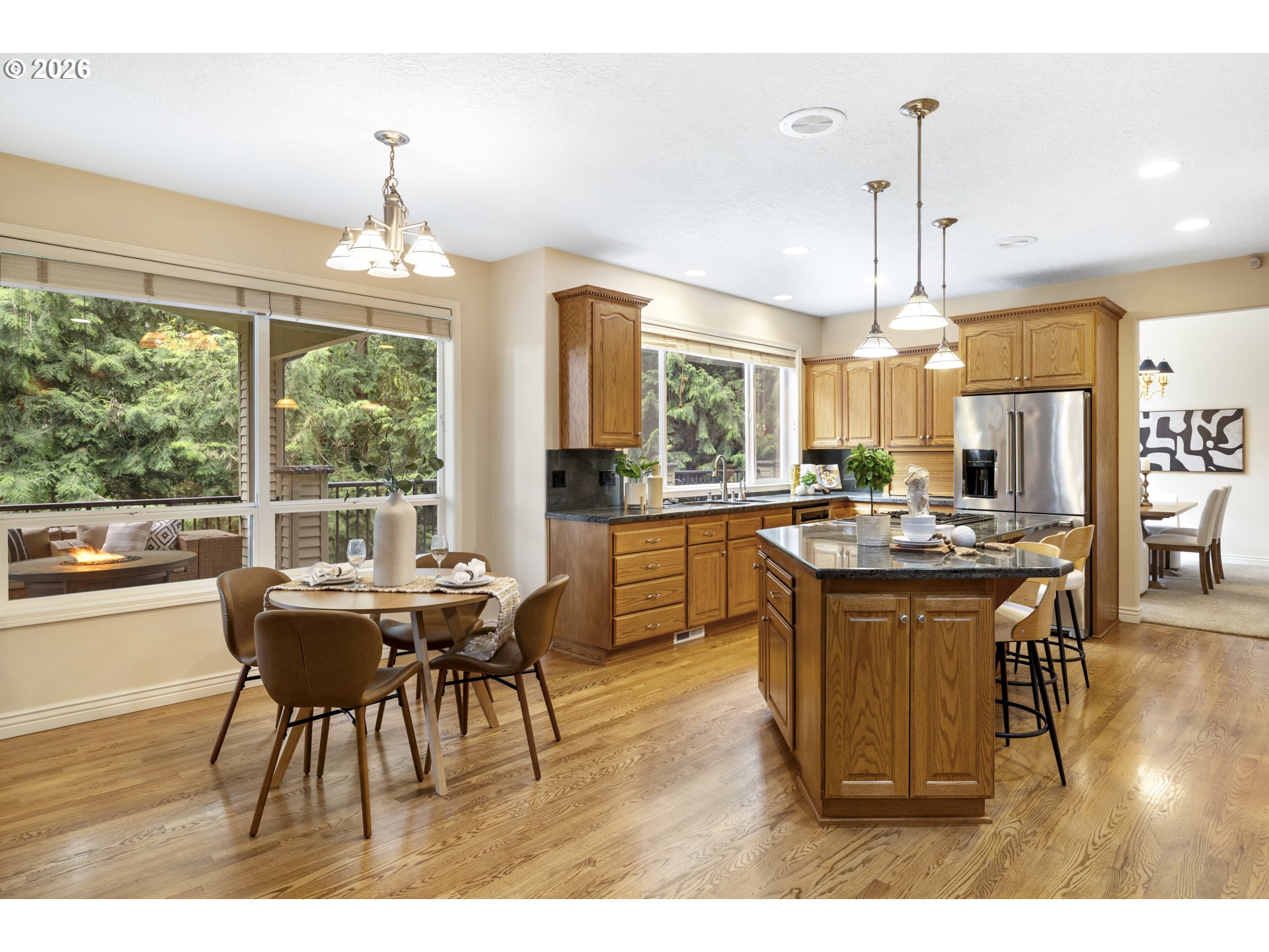 Simply stunning, one-of-a-kind estate in the heart of Happy Valley offering privacy, flexibility, and a setting that feels worlds away while remaining close to everything. Situated on 1.69 acres beyond a gated drive, this well-constructed and meticulously maintained home is surrounded by evergreens, mature fruit trees, seasonal gardens, and protected green space with regular wildlife sightings. Inside you are greeted by soaring ceilings (12’ main, 18’ entry) and a lodge-style living room with a floor-to-ceiling stone fireplace that evokes a striking first impression. The kitchen and family room are warm and inviting with expansive views of the grounds. Upstairs, the spacious primary suite is complemented by two additional bedrooms with a Jack-and-Jill bath and private sink areas. Downstairs, the lower level offers flexible multi-generational living with a separate entrance, kitchenette, 2 bedrooms, full bath, and a fully equipped home theater with stadium seating and high end audio and projection. Outdoor living shines with a large deck (covered and uncovered), paver patio with fire pit, basketball court, garden shed, and expansive grounds ideal for relaxing and entertaining. A custom detached RV garage built to match the home offers heaps of shop space for hobbyists or workshop use, and a carpeted upper level for additional storage. Easy access to nearby trails, and proximity to Happy Valley Town Center, dining, parks, and I-205 complete the package. Nothing about this home is cookie-cutter! It’s an exceptional opportunity for those who value quality, flexibility, and hobbies, all in a nature-rich setting.