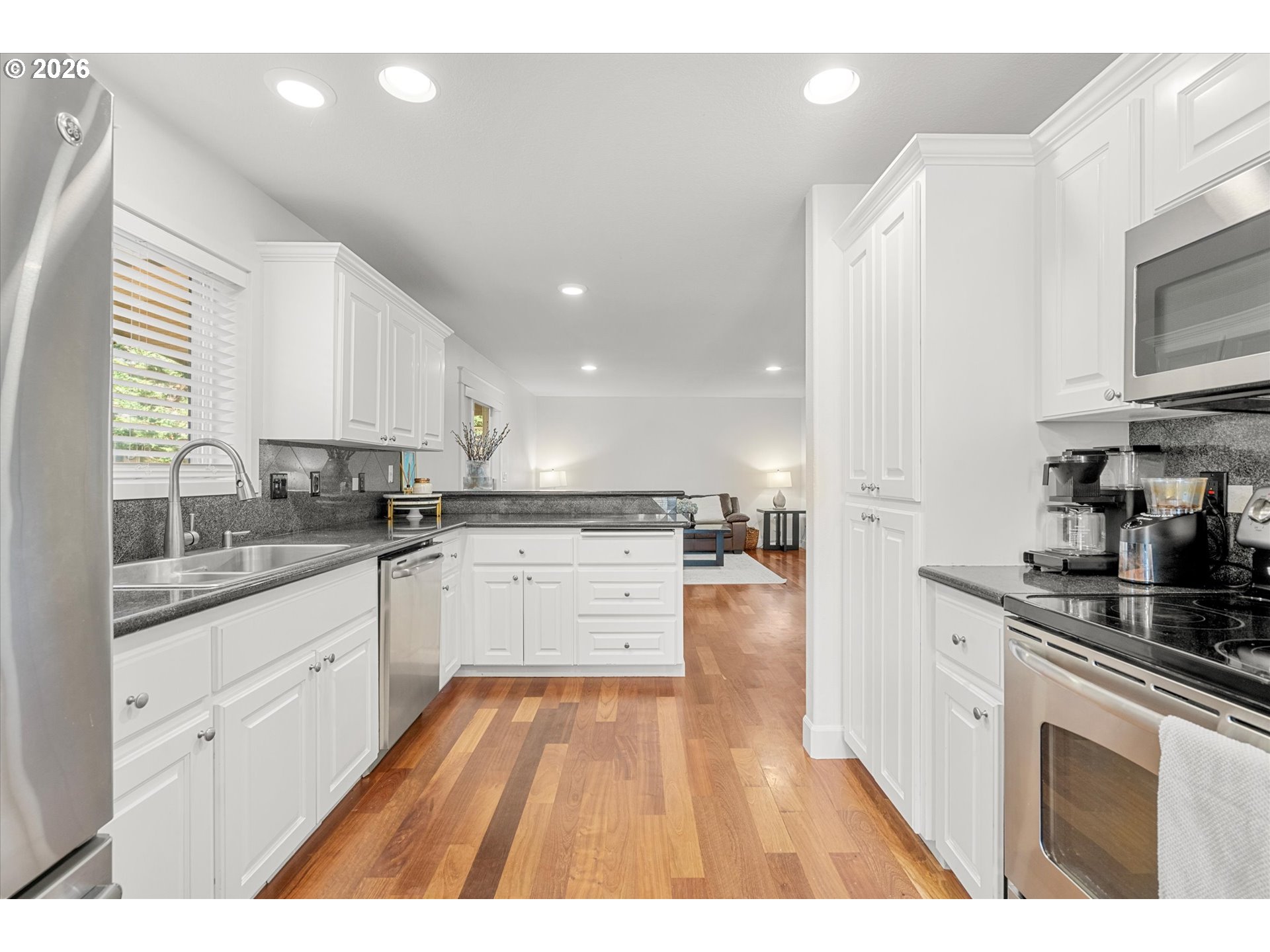 (503) 893-8874Thoughtfully updated and well cared for, this Clackamas home reflects years of intentional improvements and pride of ownership. Designed to balance comfort and functionality, the home offers meaningful upgrades already completed—allowing the next owner to simply move in and enjoy.Inside, Brazilian cherry flooring anchors the space, complemented by refreshed finishes throughout including, new doors, trim, sleek metal railing railing that elevate the overall design and modern light fixtures for a cohesive, polished feel. The kitchen features newer appliances, white cabinetry and a space that flows with your everyday living The spacious lot offers territorial views and outdoor areas ideal for everyday enjoyment and entertaining. The front porch has been updated with durable composite (Trex-style) decking for low-maintenance living. Outdoor improvements include landscaped grounds with an in-ground sprinkler system in 2019, fully fenced and patio upgrades completed in 2021, including updated decking and a covered outdoor area—perfect for gatherings and relaxed evenings.Major system updates provide peace of mind, including a new roof, furnace, and air conditioning installed between 2022–2023. New exterior paint was completed in 2017. Welcome Home.