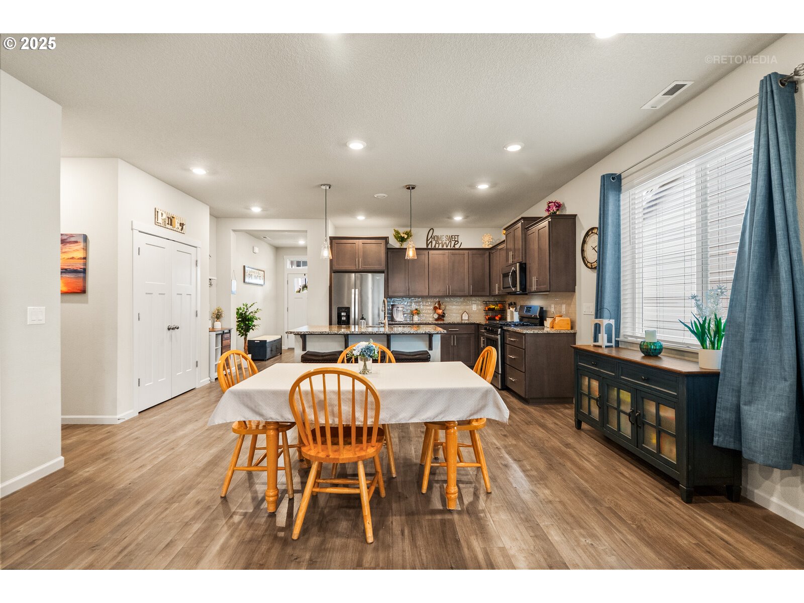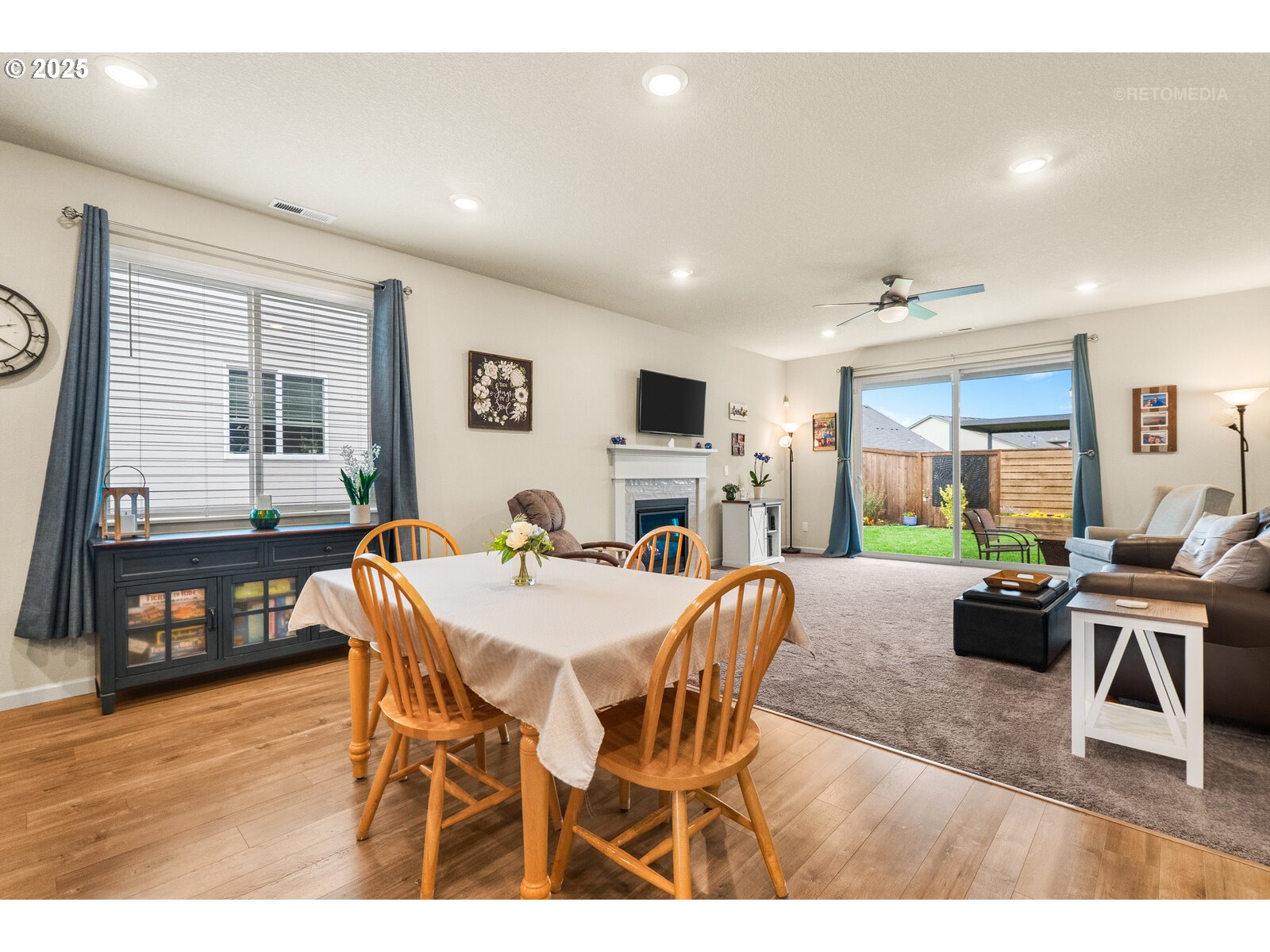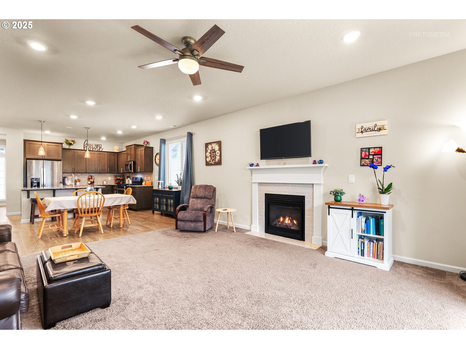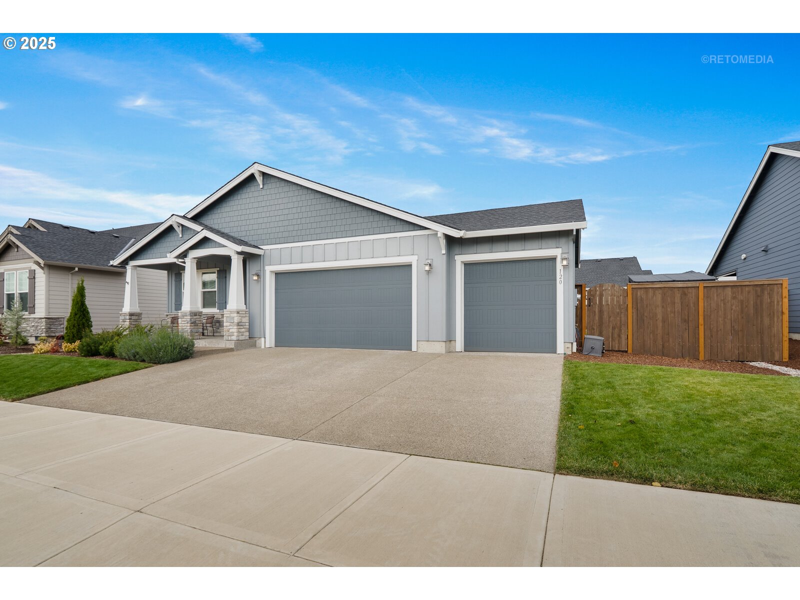 Better than new, this single-level craftsman offers timeless appeal and thoughtful design in the heart of Canby. Featuring 3 bedrooms plus a dedicated home office, the open-concept layout lives large with tall ceilings, luxury vinyl plank flooring, and abundant natural light. The kitchen impresses with slab countertops, subway-set tile backsplash, stainless steel appliances, warm cabinetry, and a large island with undermount sink—plus an oversized pantry behind French doors. The spacious great room centers around a modern gas fireplace and opens to covered outdoor living for year-round enjoyment. The primary suite features a walk-in closet, dual-sink vanity, and tile floors. Additional highlights include built-in closet systems, a generous laundry room, and a 3-car garage. Set on a beautifully landscaped lot with wraparound yard, near parks, schools, and all the charm that makes Canby so loved. Request the list on file with additional improvements provided by the seller.