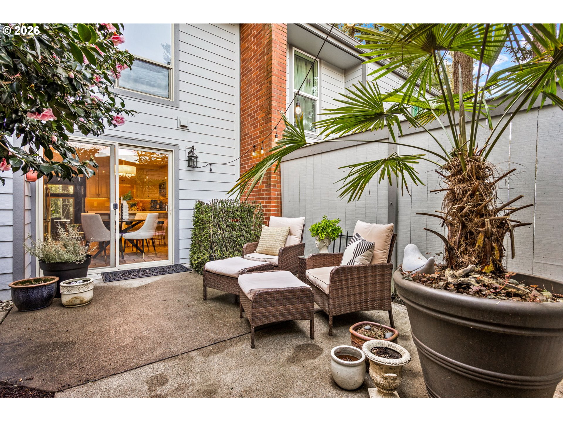 OPEN Sat 3/28 @ 12-2pm! Tucked among the trees in the sought-after Willamette Green community, this spacious 4-bedroom, 2.5-bath townhome offers 1,660 square feet of comfortable living with a rare blend of privacy, amenities and flexibility. The sunken living room features a wood-burning fireplace, hardwood floors, built-in cabinetry storage, a wall of windows and a large slider leading to the patio that brings in natural light and peaceful wooded views. The remodeled kitchen is outfitted with quartz counters, stainless steel appliances, pantry storage with pull-out shelving, an eat bar and an easy connection to the dining area and private courtyard for everyday living or entertaining. Upstairs, the primary suite includes its own bathroom with walk-in shower & walk-in closet, while three additional bedrooms provide space for guests, hobbies or work-from-home needs. A detached oversized garage includes a partially converted bonus space of approximately 300 square feet (temp walls can be returned to a full 2 car garage) ideal for an office, studio, workout room or hangout space. Heat pump heating and cooling. Parking for 2 cars in the driveway. HOA amenities include landscaping, exterior maintenance, water, sewer, recreation facilities, party room, basketball court, commons and the large pool make for easy living in one of Canby’s most unique condo settings. Surrounded by towering tree, walking paths and park-like grounds, this home offers a peaceful retreat with resort-style community amenities!