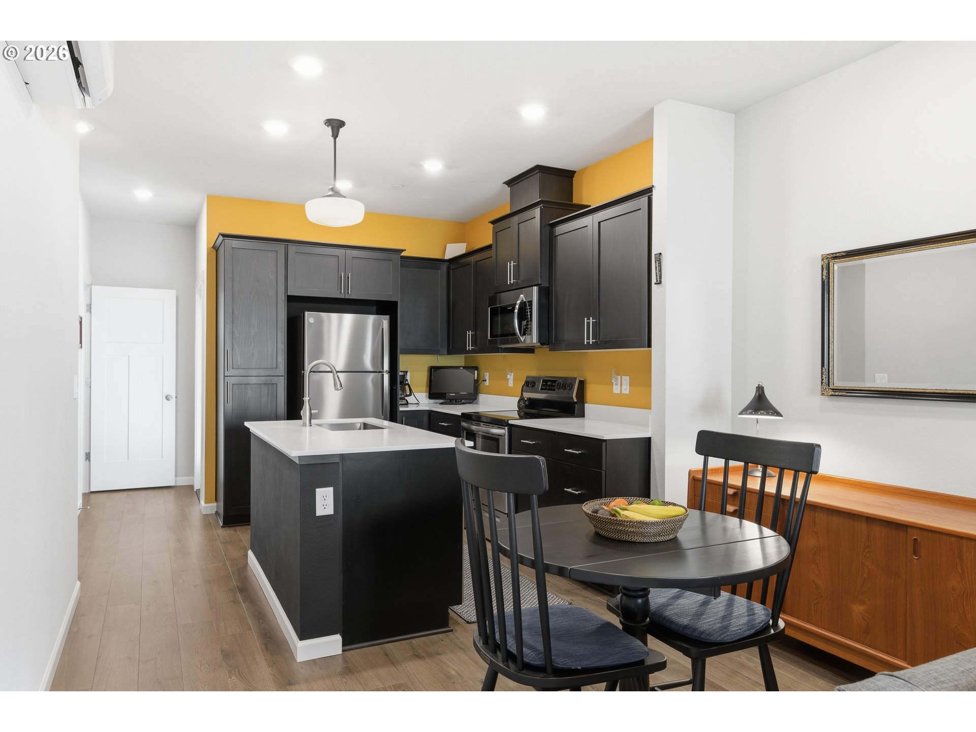 Modern three-story Condo in Happy Valley offering convenience, efficiency, and stylish living. Located just minutes from shopping, dining, with easy access to I-205, this home is close to Costco, Clackamas Town Center, Kaiser Sunnyside Medical Center, and local parks including Eagle Landing Golf Course and Mt. Talbert Nature Park.Built in 2023, this pristine condo features a versatile floor plan with two upper-level primary suites, each with a private full bath—perfect for roommates, guests, or flexible living. One suite includes a private balcony, ideal for morning coffee or evening relaxation.The main level showcases an open-concept living space designed for both everyday comfort and entertaining. The kitchen seamlessly flows into the dining and living areas and features a spacious island, quartz countertops, stainless steel appliances, and modern finishes throughout. The ground level offers an oversized two-car tandem garage with alley access, providing excellent storage and convenience. Additional highlights include high ceilings, new carpet, a new water heater, smart home technology, and included refrigerator, washer, and dryer. Low HOA dues cover water, exterior maintenance, and landscaping—making for truly easy living in a well-maintained community. Walkable to shopping, restaurants, and MAX transit, and just 20 minutes to the airport or downtown Portland. A turnkey opportunity combining modern design, prime location, and low-maintenance living. This has been a pet-free home. Open house Sat. March 7th from 2-4pm.