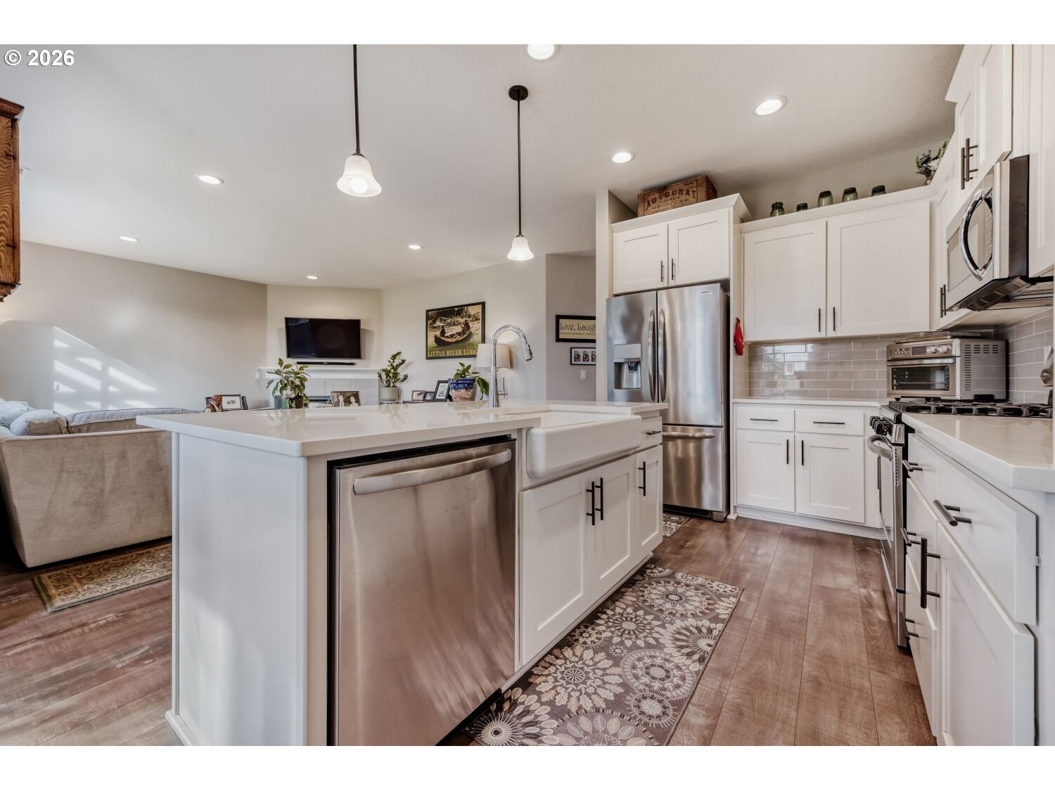Dishwasher, Disposal, FreeStandingGasRange, GasAppliances, Island, Microwave, Pantry, Quartz, StainlessSteel