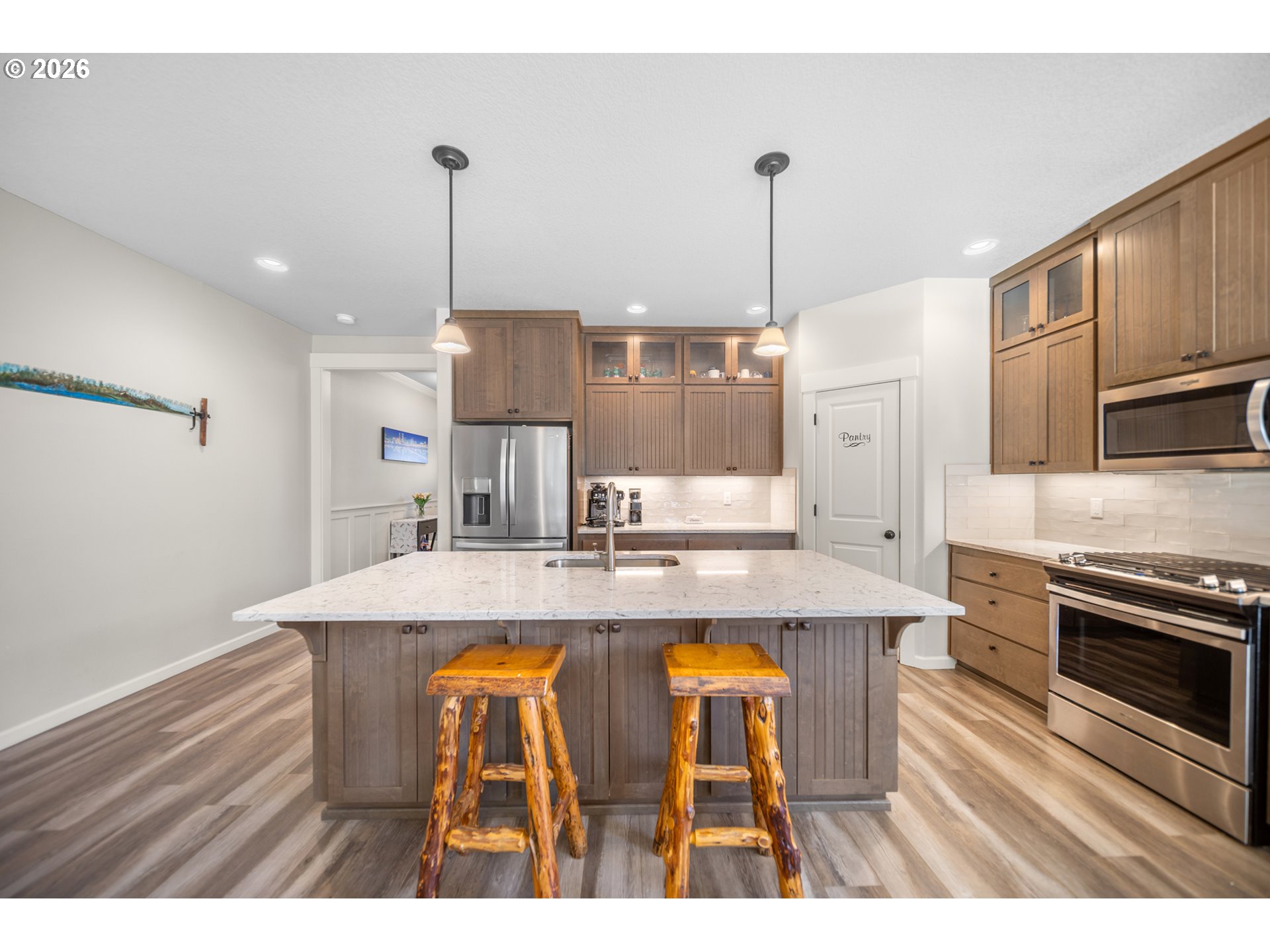 (503) 893-8874Step inside a home that truly has it all. This impeccably maintained almost 2,400 sq ft one-level ranch home offers the perfect blend of comfort, style, and flexibility to fit the way you live. With 4 bedrooms or the option of 3 bedrooms plus an office, playroom, or bonus space, you can easily tailor the layout to meet your needs, whether you're working from home, hosting guests, or creating the perfect hobby space.The open-concept design welcomes you with spacious living areas ideal for everyday living and entertaining. At the heart of the home is a gourmet kitchen featuring beautiful quartz countertops, a large island, custom cabinetry, gas cooktop, stainless steel appliances, and a walk-in pantry. The generous dining area flows seamlessly into the great room, where built-in bookcases frame a stunning custom tile-faced gas fireplace, creating a warm and inviting atmosphere. From here, step out to the covered patio, making indoor-outdoor living effortless.The private primary suite, located at the back of the home, offers a relaxing retreat with double sinks, a soaking tub, walk-in tile shower, and an oversized walk-in closet. Two additional bedrooms feature closet organizers, a second bathroom and a lot of storage.Thoughtful upgrades throughout the home include LVP flooring, elegant wainscoting, and high ceilings that enhance the home’s bright and open feel. There is a laundry room with cabinets and a folding table. The oversized 3-car garage, complemented by a large driveway with plenty of room for vehicles, guests, or recreational toys. Step outside to a spacious, fully fenced backyard with mature landscaping, a sprinkler system, planter boxes with drip system, perfect for gardening or relaxing outdoors. And for those needing extra space, the property also features a fully permitted 24' x 26' shop or man cave, complete with 100 amp power supply and abundant storage—ideal for projects, hobbies, or additional workspace. Open house Saturday the 7th from 1 to 3 pm