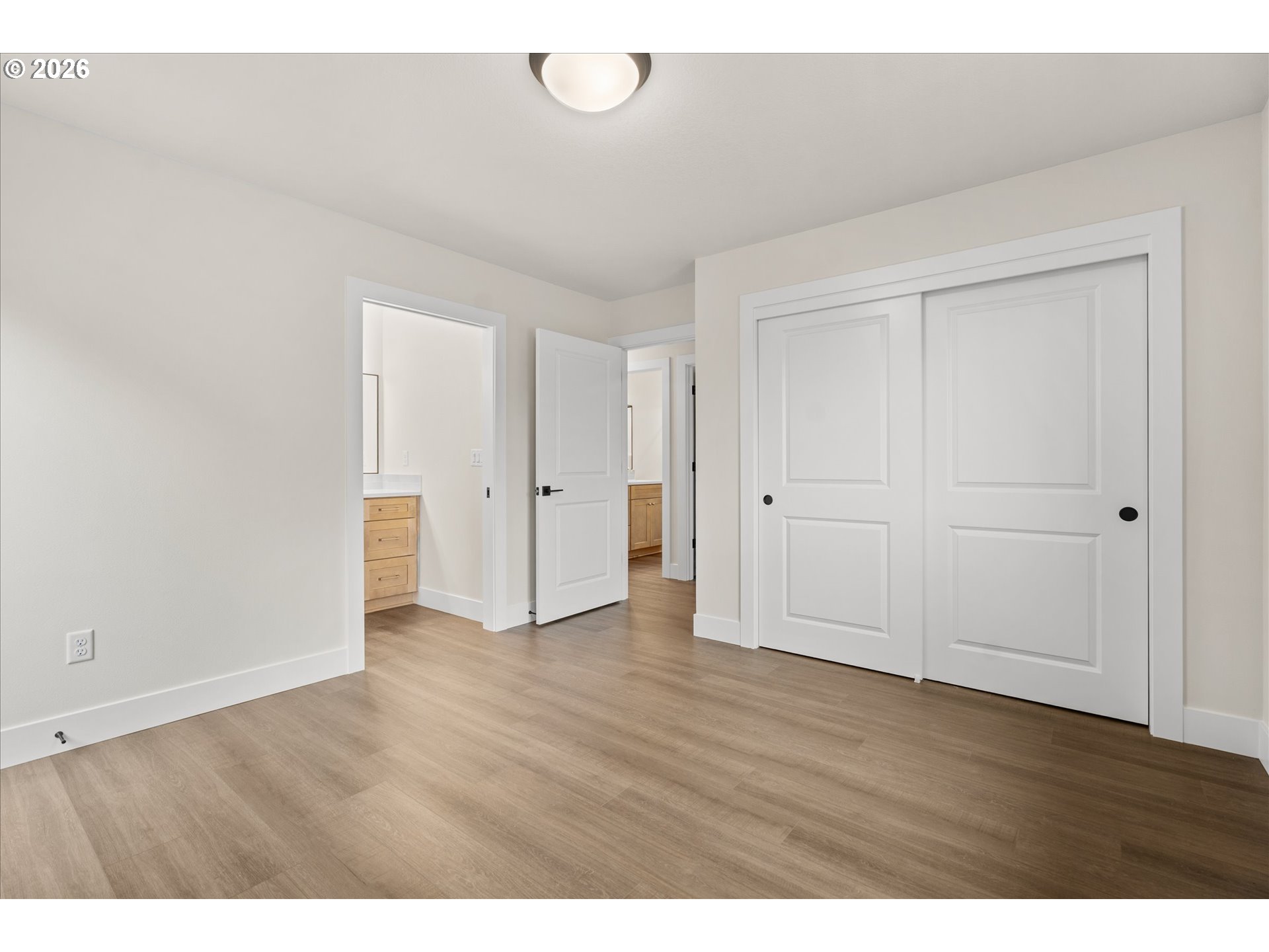 Welcome to 12306 Meadowlawn Dr, Oregon City, OR 97045, a beautifully crafted brand new one-level detached condo designed for comfort, style, and easy living! From the moment you step inside, you’ll notice vaulted ceilings, luxury vinyl plank flooring, and abundant natural light that create an inviting and open atmosphere.The thoughtfully designed floor plan features an open-concept living space centered around a stunning kitchen with quartz countertops, soft-close cabinetry, stainless steel appliances, and a spacious island—perfect for everyday living and entertaining.This home offers 2 bedrooms and 2 full bathrooms, including a spacious primary suite with a well-appointed ensuite bath and walk-in shower. The primary suite also features a private door leading to a fully fenced side yard, offering a great extension of living space for relaxing, pets, or easy outdoor access. The efficient layout maximizes both comfort and functionality, all on one level. Located in a peaceful setting just a short distance to Wesley Lynn Park, with convenient access to shopping, dining, and everyday amenities. A great opportunity to own a new construction, single-level home offering a blend of modern finishes, convenience, and charm in Oregon City.