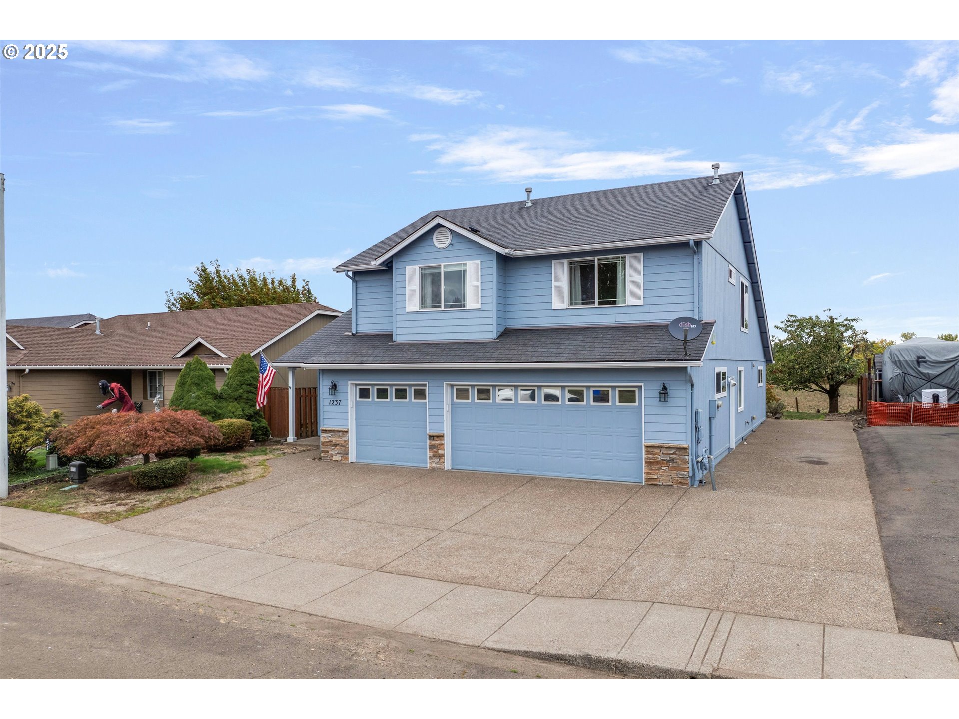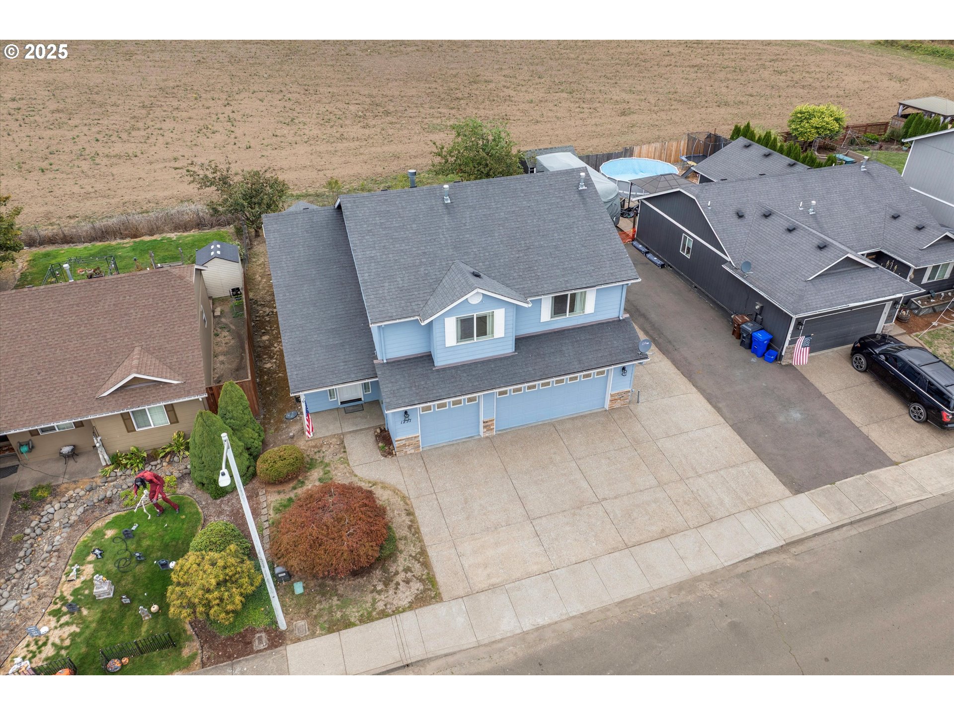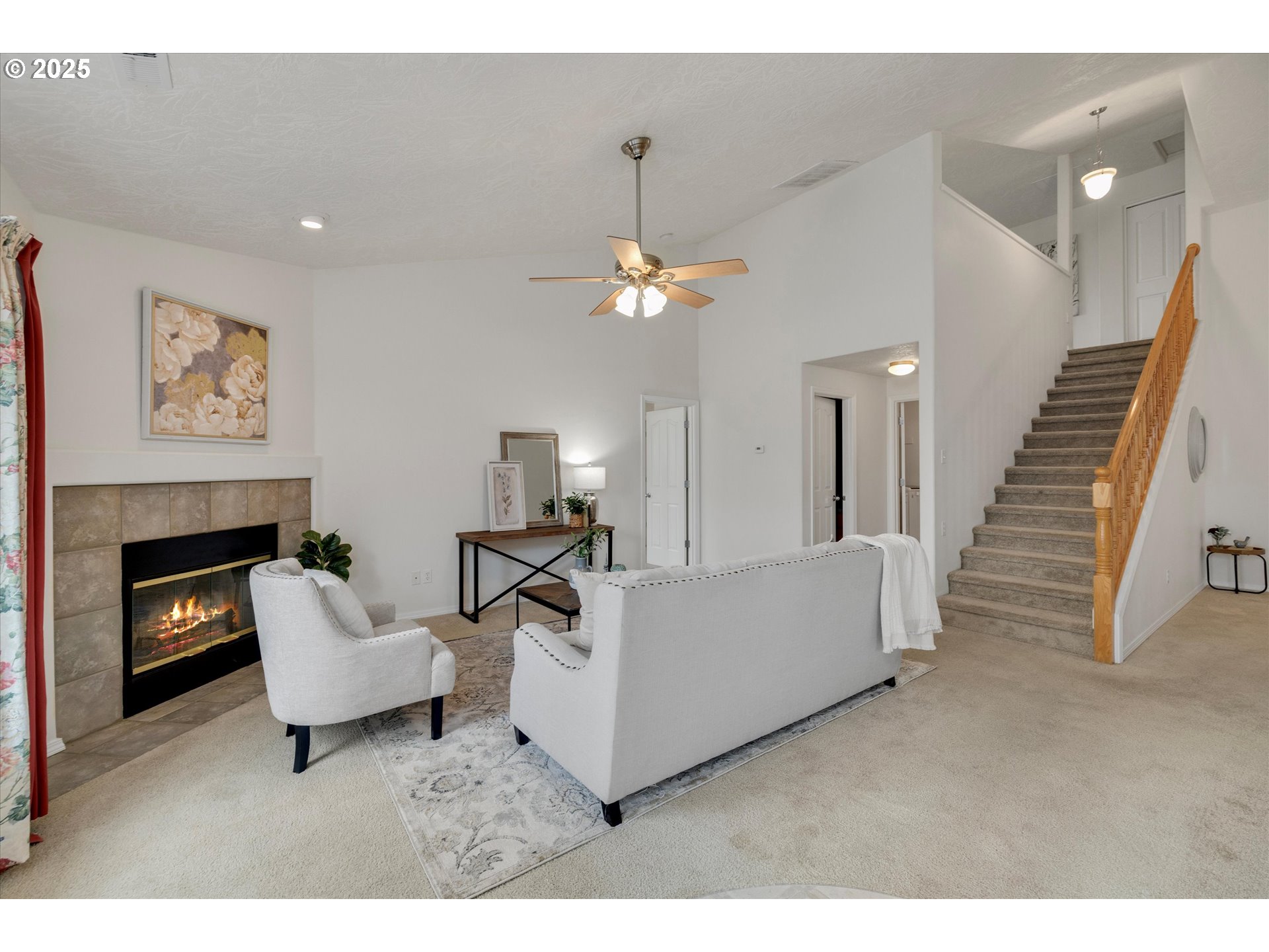 Inviting 3-bedroom + bonus/loft home in the desirable Big Meadow Subdivision of Molalla! The spacious main-level primary suite offers soaring ceilings, a walk-in closet, double sinks, and a private slider to the backyard. The kitchen features gas appliances, a pantry, and a cozy breakfast nook, while the open living room with a fireplace and patio access is perfect for relaxing or entertaining. Upstairs, you’ll find two additional bedrooms, a versatile loft, and plenty of storage space. Enjoy a backyard that backs to serene green space, a 3-car garage with updated LiftMaster openers, and RV parking—making this home a true blend of comfort and functionality.