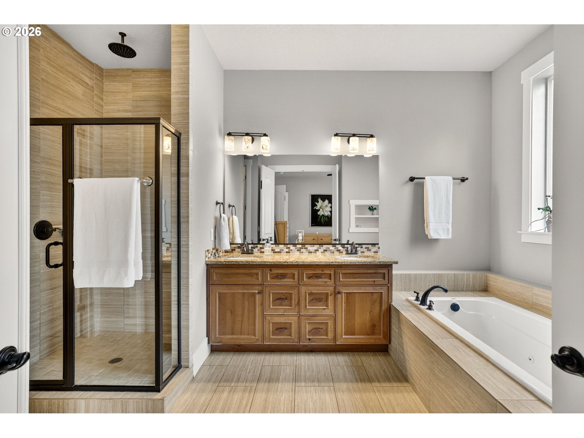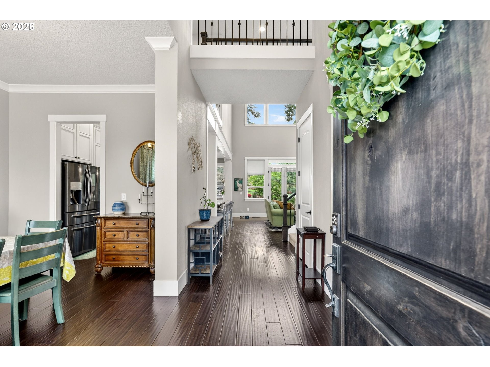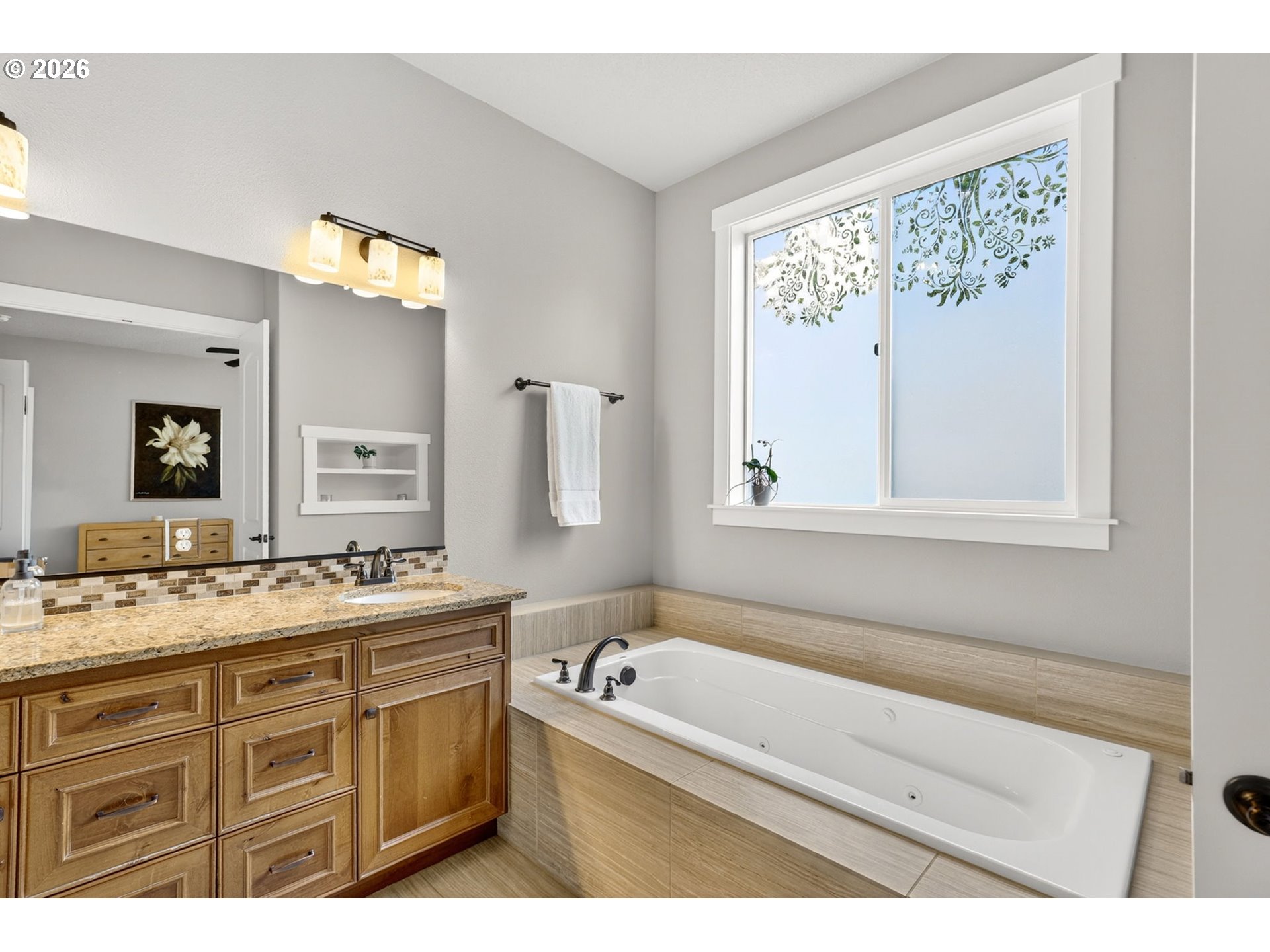 (503) 893-8874Simply gorgeous, custom home in Coveted location that backs to greenspace with tranquil walk trail. Enter into the lap of luxury featuring hardwood flooring, soaring ceilings that create abundant natural light & open, airy feel. Spacious floor plan, perfect for those intimate gatherings or large parties. Gourmet dream kitchen includes granite counters, hardwoods,eat bar + kitchen eating nook, built in oven, microwave,5-burner gas cook top,pantry + storage for a seamless uncluttered aesthetic. Kitchen opens to expansive living area w/fireplace,soaring ceilings & access to covered patio that creates a feeling of connection to nature. Large flat yard includes raised garden beds w/drip irrigation. Main level Primary Suite provides a tranquil retreat & attached spa like bath offers jetted tub, walk in closet,tiled shower plus double sinks. Main level laundry includes abundant storage, sink,built-ins & closet.Upstairs boasts En-Suite w/walk in closet, perfect for those overnight guests. Large bonus room is perfect for media and/or theater room.Down the hall enjoy a extra bonus room, 2nd office or sewing/craft room. Large bedrooms, expansive hall overlooking living area creates warm comforting space. Oversized 3-car garage, beautiful mature plantings, security system,sprinkler system, gorgeous neighborhood, convenient location not far from Restaurants,shopping and all Happy Valley has to offer.