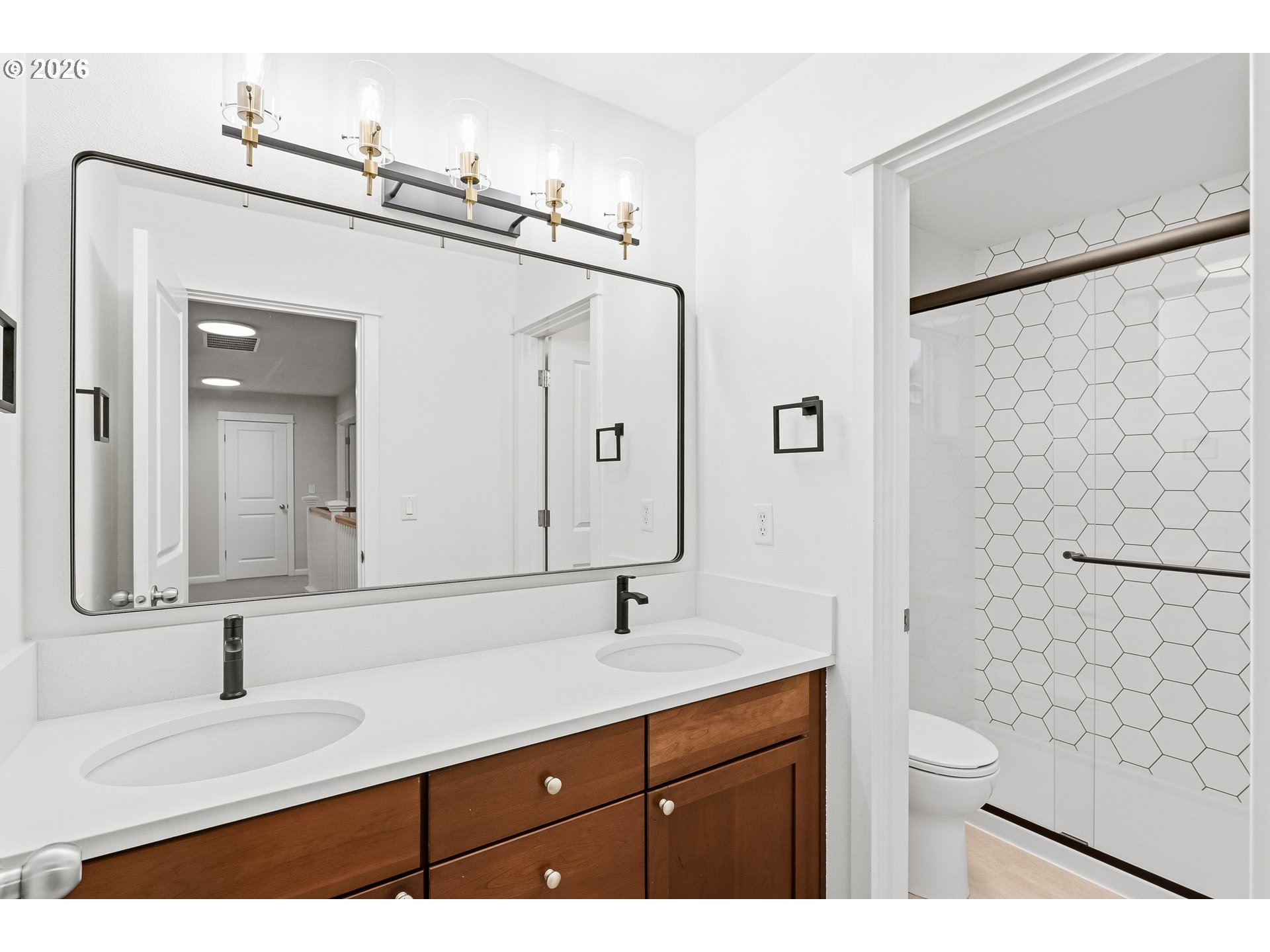 Immaculately cared-for Craftsman with stunning views of Mt. Hood! Filled with light and charm, this home features high ceilings, large windows, and beautiful hardwood floors throughout the main living areas. The living room is inviting with vaulted ceilings and a gas fireplace set against a custom-tiled hearth, while the formal dining room offers coved ceilings and elegant hardwood floors, perfect for hosting. The recently updated gourmet kitchen and bathrooms (2025) are designed for both style and function. The kitchen boasts quartz countertops, custom cabinetry, a striking tile backsplash, built-in microwave, and all-new stainless steel gas appliances. A large island with an eat bar, pantry, and cozy breakfast nook with sliding glass doors creates a seamless connection to the backyard for indoor-outdoor entertaining. The primary suite is a private retreat with double doors, a coved ceiling, a walk-in closet, and a spa-like ensuite featuring a soaking tub, walk-in shower, and double sinks with quartz countertops. Four additional bedrooms (or three additional bedrooms plus den/office) provide ample flexibility. The daylight basement offers versatile living space, including a bonus or family room with high ceilings, carpeted floors, and sliding glass doors to a covered porch, along with a bedroom and full bathroom. Outside, the fully fenced yard, covered patio, deck, and arborvitae offer privacy and endless possibilities for gardening, entertaining, or relaxing. Ideally located just minutes from shopping, dining, parks, and main roads!