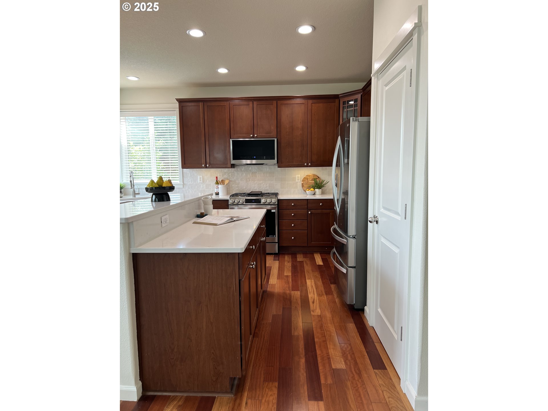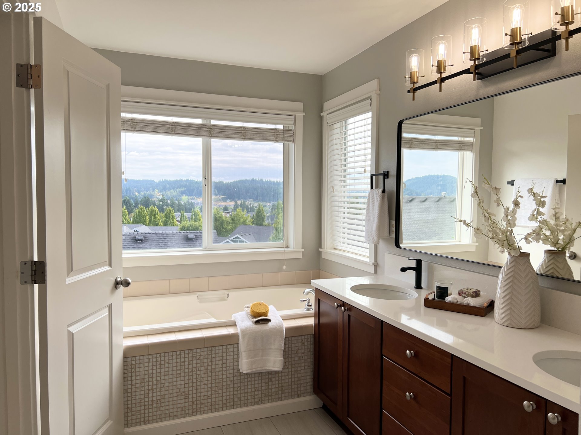 Enjoy breathtaking, unobstructed views of Mt. Hood from this beautifully remodeled 3,218 sq. ft. home in desirable Happy Valley. Perfectly located just minutes from Town Center, top-rated hospitals, shopping, and dining, this move-in ready residence offers 4 spacious bedrooms, an office, 3.5 baths, and two expansive great rooms. The 2025 remodel showcases a designer kitchen with quartz countertops, custom cabinetry, and all-new stainless steel appliances—including a gas range, refrigerator, dishwasher, and microwave. Luxurious bathrooms feature modern finishes and a spa-inspired walk-in shower, while light-filled living areas create a warm and inviting atmosphere. Step outside to enjoy a private backyard retreat, ideal for relaxing or entertaining. With its thoughtful upgrades, open layout, and stunning mountain views, this home combines comfort, style, and convenience in one exceptional package.