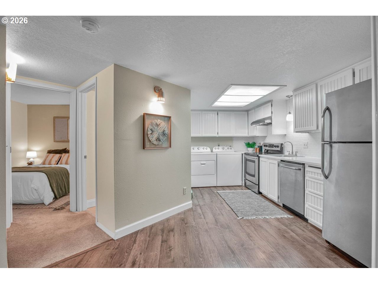 Beautifully located end-unit condo in one of the most private and quiet settings in the community, backing to Mt. Talbert and Mt. Scott Creek. Just 1.3 miles to Clackamas Town Center, MAX Station, and Costco with easy access to freeways, hospital, and shopping. Features include two bedrooms, cozy wood burning fireplace, and green space views. Unique to this unit is a front patio area, plus a deck for outdoor living. No rental cap. Excellent value in a prime location, and access to walking trails from your front door. HOA covers pool, sewer, trash, water, basketball court, and exterior maintenance. Washer, dryer, fridge, and all appliances are included.
