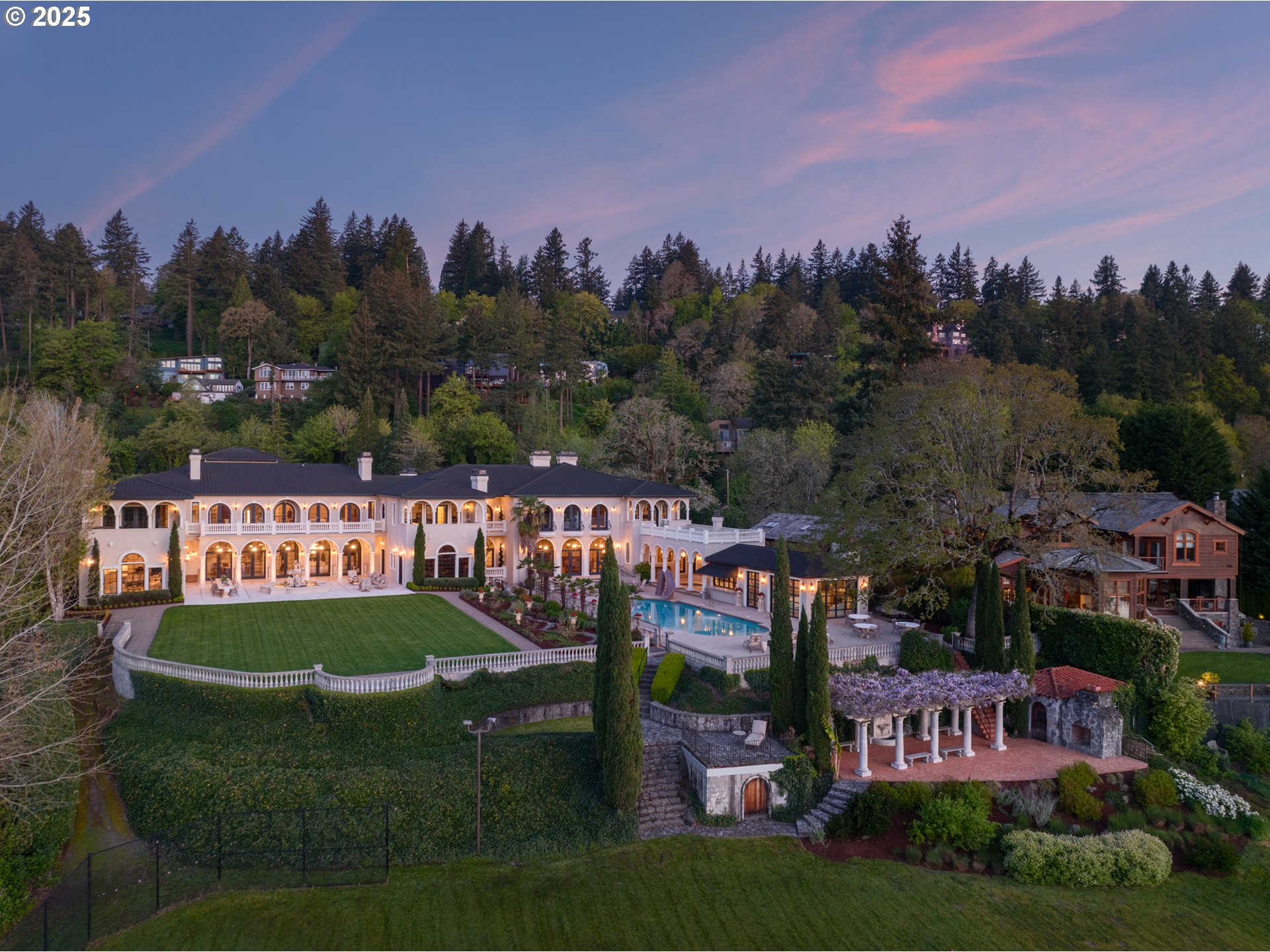 (503) 893-8874This exquisite estate will leave you speechless the moment you pass through the gates. Your very own pond greets you as you drive up the circular driveway. Step inside and prepare to be in awe of the custom finishes, jaw-dropping craftsmanship, and dramatic architectural and design details throughout. At the heart of the home, a stunning theater room boasts soaring ceilings, a grand fireplace, Juliet balconies, and a built-in stage that can transform into an elegant ballroom. Through the double doors, you'll find a home gym and a spacious billiards room, complete with a full bar and kitchen—perfect for entertaining. A dream for any reader, the home features an elegant library along with several beautifully designed home offices throughout. Striking hardwood floors lead you into a kitchen that’s a true culinary delight, with coffered ceilings, custom cabinetry, and top-of-the-line gas appliances. Hide away and play in the forest-themed playroom, complete with a treehouse bunk and a rope bridge. Upstairs, the primary suite offers a spa-like retreat with custom tile work, a large walk-in closet, double vanities, an oversized soaking tub, and a walk-in shower. With over eight additional bedrooms and eleven full bathrooms—each with its own unique charm—there’s room for everyone to relax in comfort and style. Step outside to enjoy resort-style living on your palatial patio, featuring seating for 20, a courtyard fountain, a fully equipped pool house, an expansive pool, an in-ground spa, and multiple entertaining areas—all with serene views of the Willamette River. Stroll down to your private dock and immerse yourself in everything the river has to offer. The property also includes 12+ garage spaces and a massive workshop located beneath the home. Don’t miss this rare opportunity to own one of Oregon’s most breathtaking riverfront estates.
