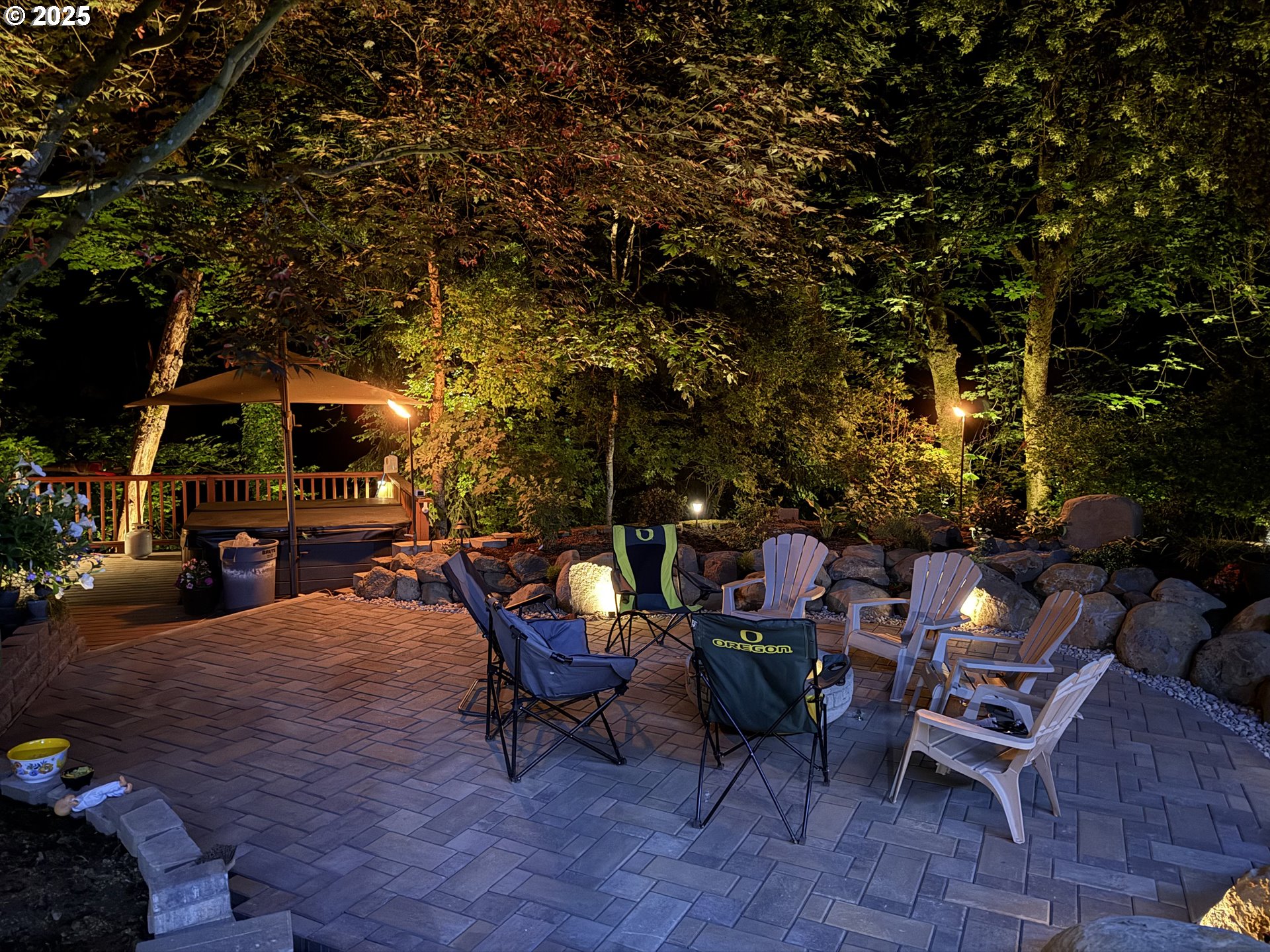 Beautiful custom built home with spacious great room floor plan with Brazilian walnut hardwood floors and built-ins. Stunning kitchen with slab granite and stone backsplash, large cook island and stainless appliances. Luxurious owner suite with two walk in closets, tiled shower with dual heads and oversized soaking tub. The media room is theater ready with a large 140" projection screen with built in surround sound speaker system. It has a closet so it can also be used as a 4th bedroom. The entire house is wired with built in speakers in almost every room, it sounds incredible. There are 2 staircases in the home. Between the kitchen and the dining room is a wine cellar that can hold roughly 400 bottles. The home is equipped with a tankless propane water heater with a built in recirculation system so you get near instant hot water at every fixture. Outside you get to enjoy plenty of living space with decks and a patio featuring a hand carved Stastany gas fire pit. Near the fire pit is a new 8 person hot tub, purchased about 6 months ago. Please note that even though this has a Sherwood address you are less than 1 mile to Wilsonville and you will be in the Wilsonville school district.