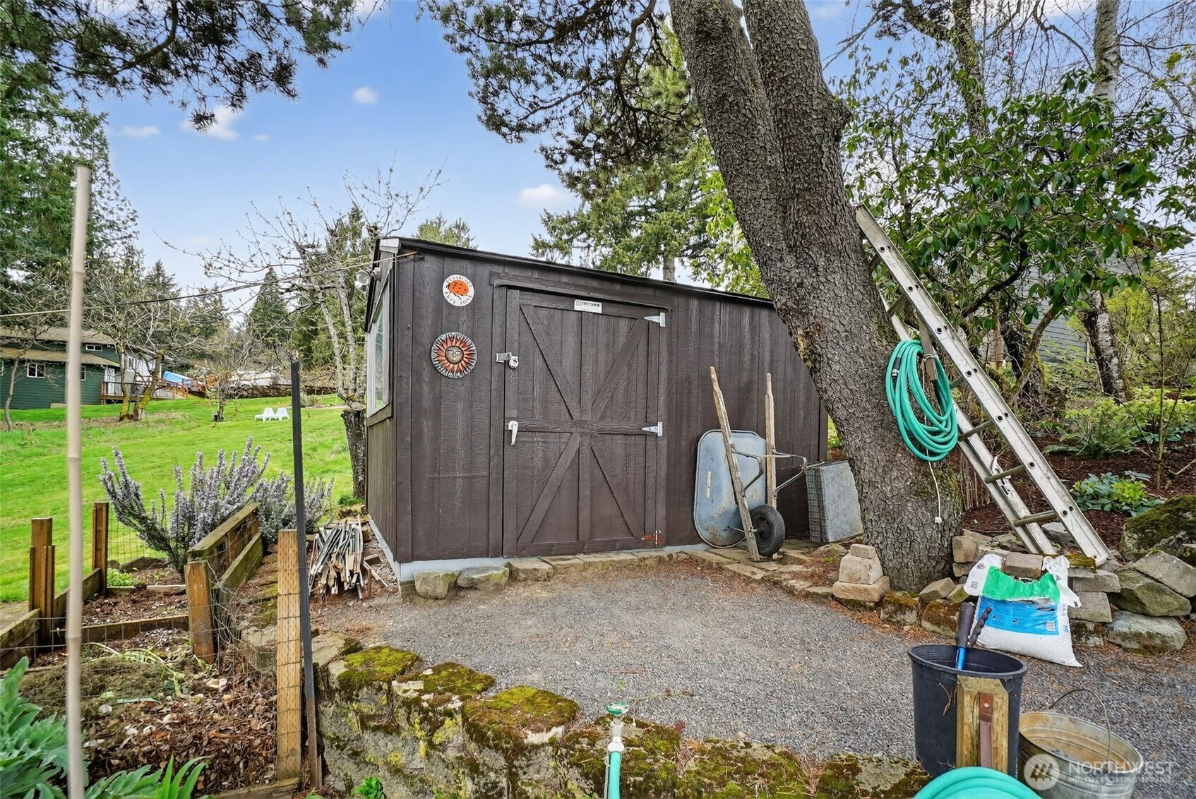 This one-of-a-kind mid-century dayranch was originally the builder’s home - and it shows! Four spacious bedrooms and 3 bathrooms. The Owner’s Suite is on the main floor with its own private bathroom, complete with a remodeled tiled shower. The kitchen showcases cherry cabinets with pullout drawers, soapstone counters, a 5-burner gas cooktop and a vent fan with warming lights. The south-facing wall of windows along the back of the home invites territorial views from the kitchen and living room. The sellers have enjoyed stunning sunsets and the annual professionally produced 4th of July firework show at Happy Valley Park from their deck. Harwood floors on the main. Wood-burning fireplace on each level. Possible 2nd living space downstairs with plumbing and drain stubbed in. Quality updates throughout. Roof, Furnace/AC/Tankless Hot Water, driveway, entry concrete, interior/exterior paint, deck refinishing, garage door/front door all replaced in 2020 or after. Fenced-in garden area with mature berry vines and several fruit trees. Chicken coup, 4 laying hens, and two handsome roosters can stay. 10’ x 12’ Tuff Shed with power & lighting. Sprinklers. Mature landscaping. Covered patio has a waterproof roof. Hurry!