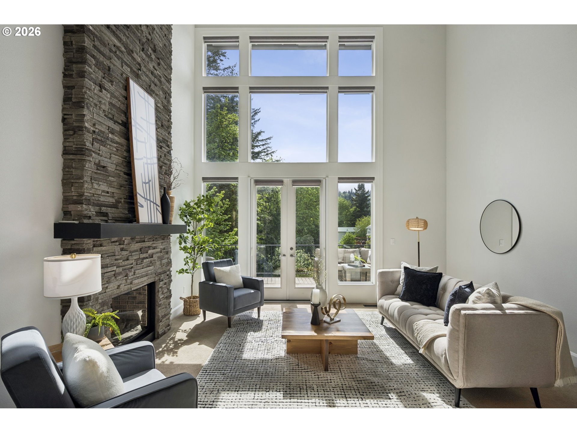 (503) 893-8874Tucked at the end of a quiet, private street, this home offers peaceful living and the soothing sounds of the Tualatin River. The open-concept kitchen features quartz counters, stainless gas appliances, double ovens, and a large pantry, flowing seamlessly into the family room with built-ins and slate fireplace. Step outside to a covered paver patio for entertaining, and upper firepit patio. Fully fenced yard creates privacy and space to relax, garden. The living room offers 20’ ceilings, floor-to-ceiling windows, and gas fireplace. Generous dining room with a built-in wine bar and new wine fridge adds a perfect touch. Main floor office (4th bedroom) includes French doors, built-ins, a two-way fireplace and deck. Upstairs, primary ensuite offers high ceilings, a gas fireplace, private balcony, and river views, and spa-like bath and walk-in closet. Two additional bedrooms with walk-in closets. Additional highlights include a well-equipped laundry room with desk, solar-powered blinds, fire suppression system, and a 3-car tandem garage (fits 4). Fresh paint, professional cleaning, power washing and windows cleaning make this home truly move-in ready. Ideally located just 0.6 miles to Willamette Park & Boat Ramp—home of the West Linn Fair—0.3 miles to Willamette Garage food trucks, 2 miles to Oregon Golf Club, and 1.3 miles to Fields Bridge Park & Athey Creek Middle School. Enjoy the vibrant Summer Street Market every Wednesday from May through September just 0.3 miles away.