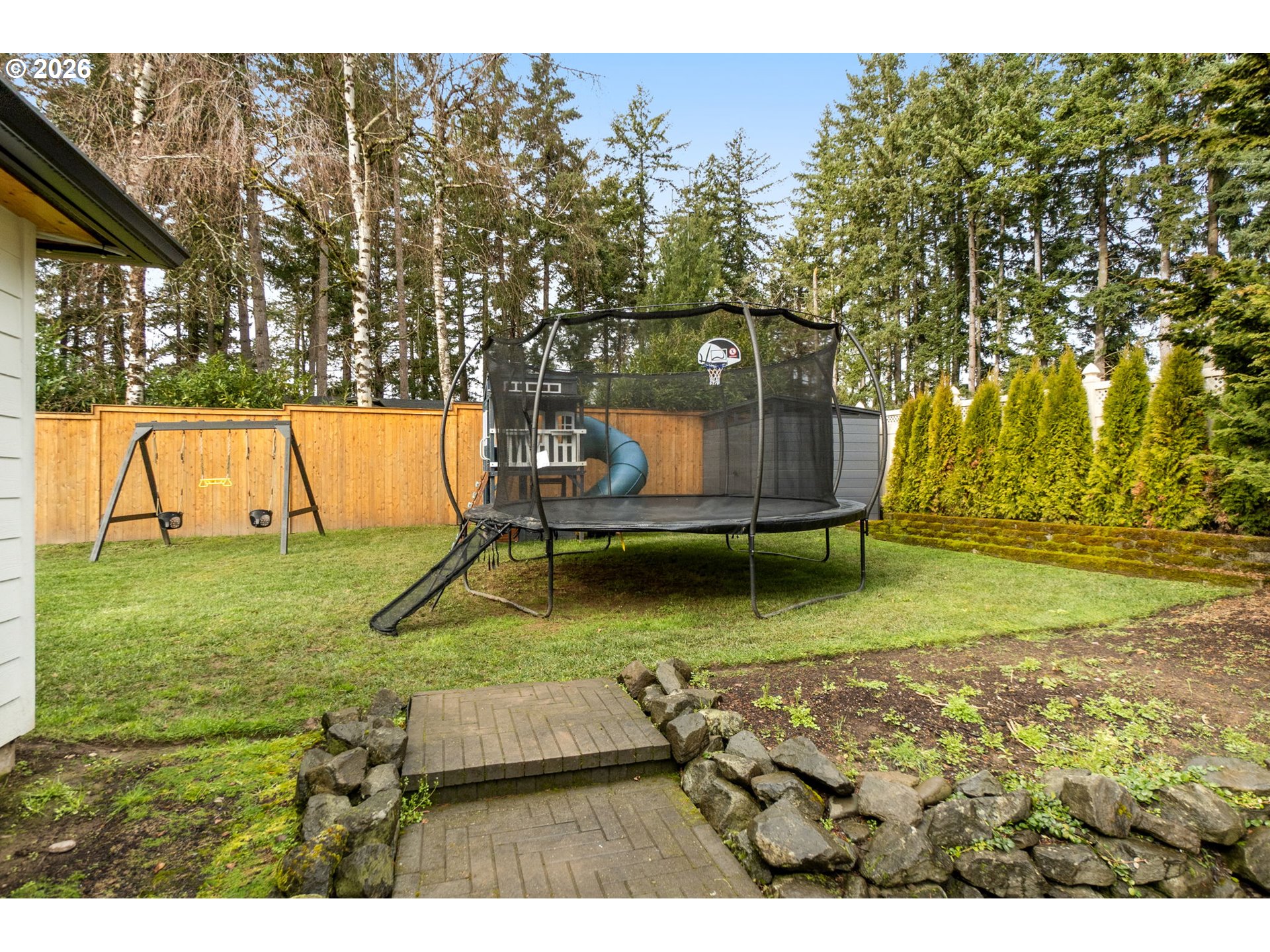 Better than new! Completely remodeled in 2022, this beautifully updated 3-bedroom, 3-bath contemporary offers turnkey living on a rare .26-acre level lot. Major upgrades include new siding, roof, HVAC, windows, doors, landscaping, and more — providing modern style and peace of mind. The light-filled main level features high ceilings, skylights with remote-controlled blinds, a sunken living room with fireplace, and durable LVP flooring that extends throughout both levels. The remodeled kitchen is a true standout, boasting quartz countertops, stainless steel appliances, and sprawling island. French doors open to the backyard for seamless indoor-outdoor living. Upstairs, the primary suite includes a walk-in closet with custom organizers, and an en-suite bathroom with double sinks, soaking tub, and walk-in shower. Enhanced attic insulation and fan help keep the upper level cool in summer. Enjoy a fully fenced yard with a pergola and retractable cover, large deck, separate fenced garden or chicken coop area, and a new shed on a concrete foundation. Permanent exterior perimeter lighting adds the perfect touch as you enjoy nights on the patio. A truly move-in ready home in a convenient location, private yet minutes to the 205.