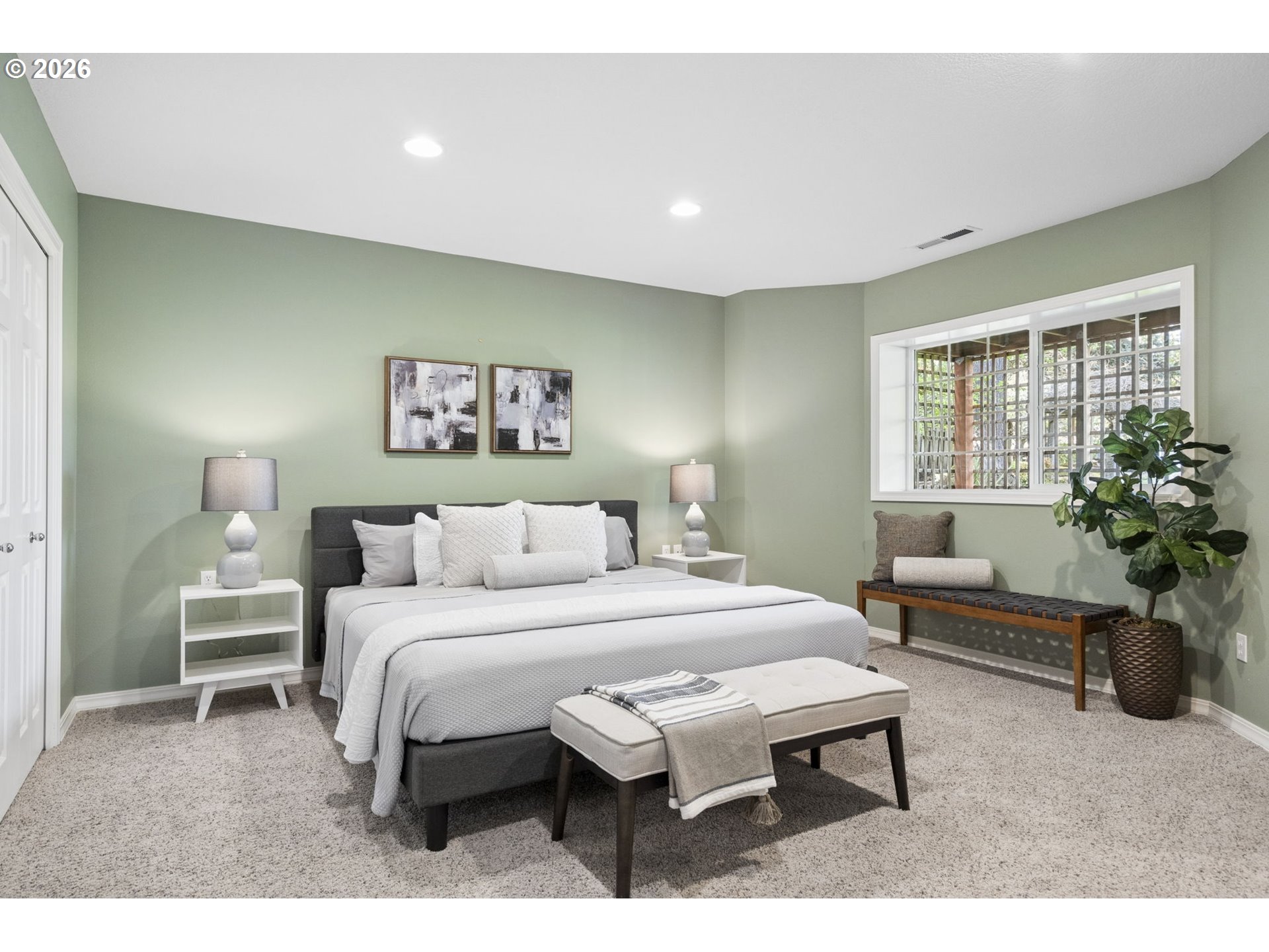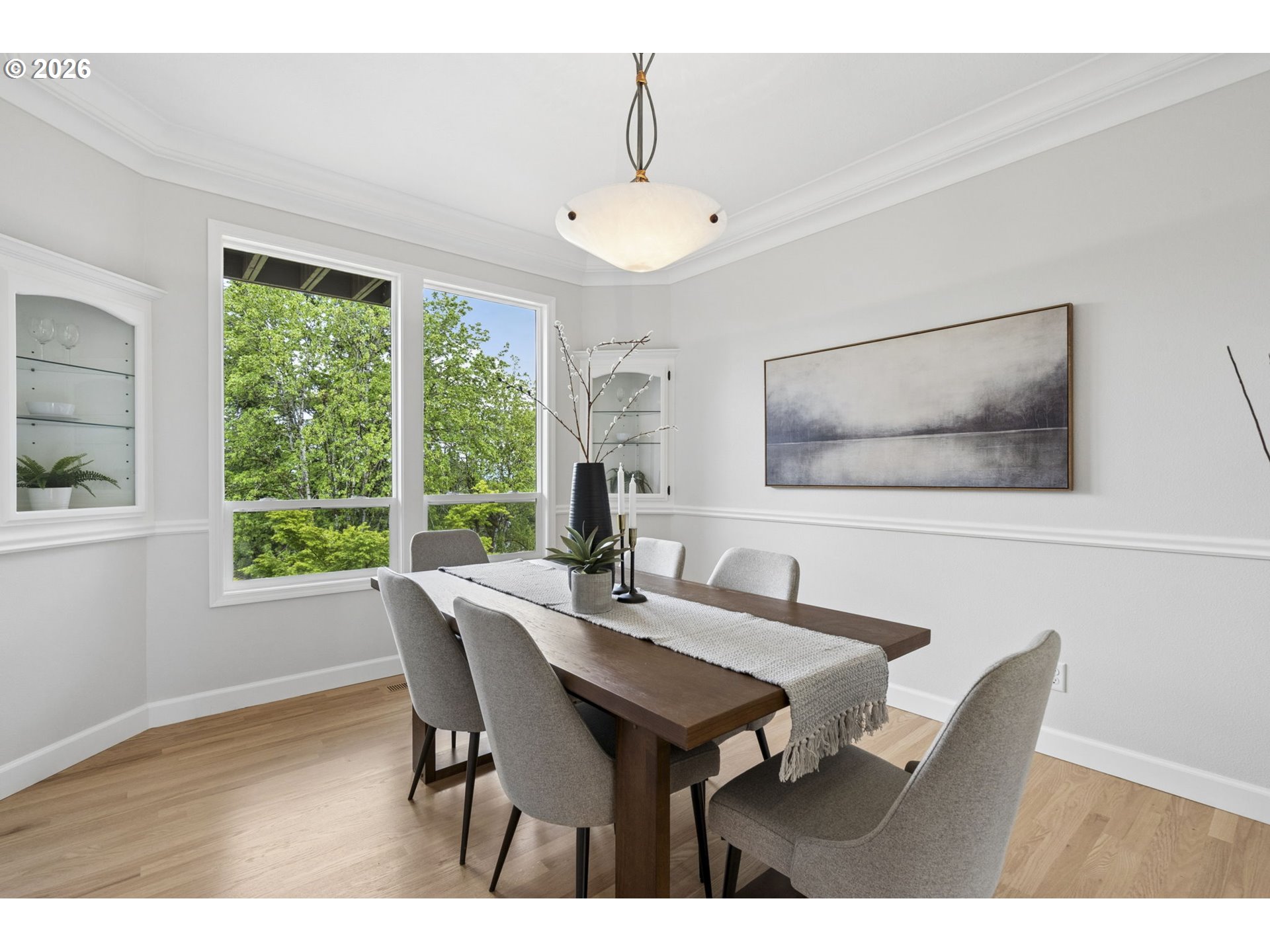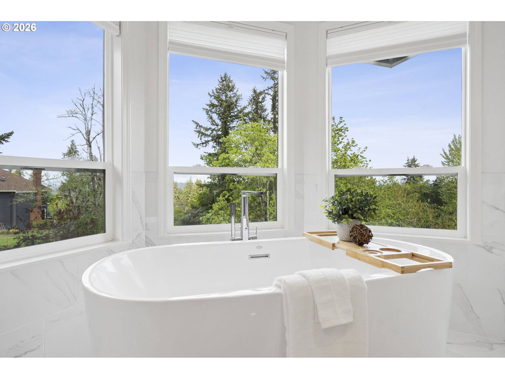 This beautifully updated home sits atop Skyline Ridge with unobstructed mountain views. Hardwood floors span the main level, leading into a brand-new kitchen with white oak cabinetry, quartz counters, and Thermador stainless steel appliances. A built-in speaker system provides seamless Bluetooth audio for cooking and entertaining. The kitchen opens to a great room with a gas fireplace and sliding doors to an upper deck overlooking the spacious 0.26-acre yard. Upstairs features three guest bedrooms (one staged as a bonus room), a full bath, and a luxurious primary suite with vaulted ceilings, new carpet, panoramic views of Mount Hood and Mount Adams, and a private balcony. French doors open to a fully remodeled en suite with a walk-in shower, double sinks, soaking tub, and elegant tile. The daylight basement includes a wine cellar, theater room, recreation area with pool table and wet bar, plus a fifth bedroom and full bath—ideal for multi-generational living. Sliding doors lead to a large lower deck with gas hookup for grilling. The backyard features a zonal sprinkler system & strategic uplighting of the home & landscaping. Just down the street you will find Skyline Ridge Park with tennis courts, basketball, playground & more. Skyline Ridge also has a community pool which residents in this neighborhood can join if they would like for an annual fee. Please ask your realtor for a list of updates & amenities for an in depth look at all the high end systems that were put into this home. This home is impeccably maintained and thoughtfully updated. A lot of fun memories were had at this home over the last 28, and now it's ready for you.