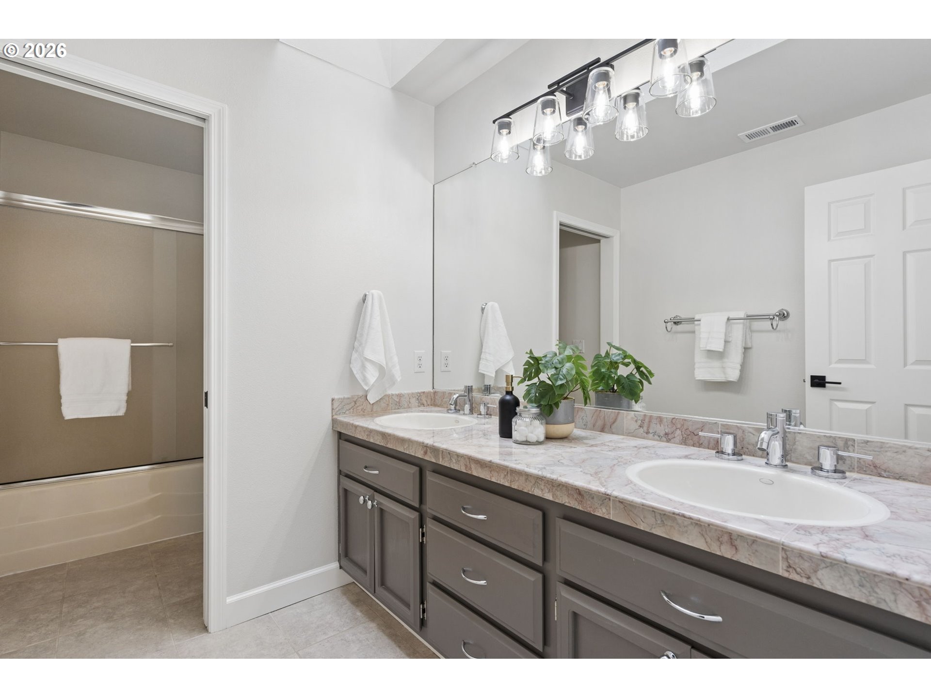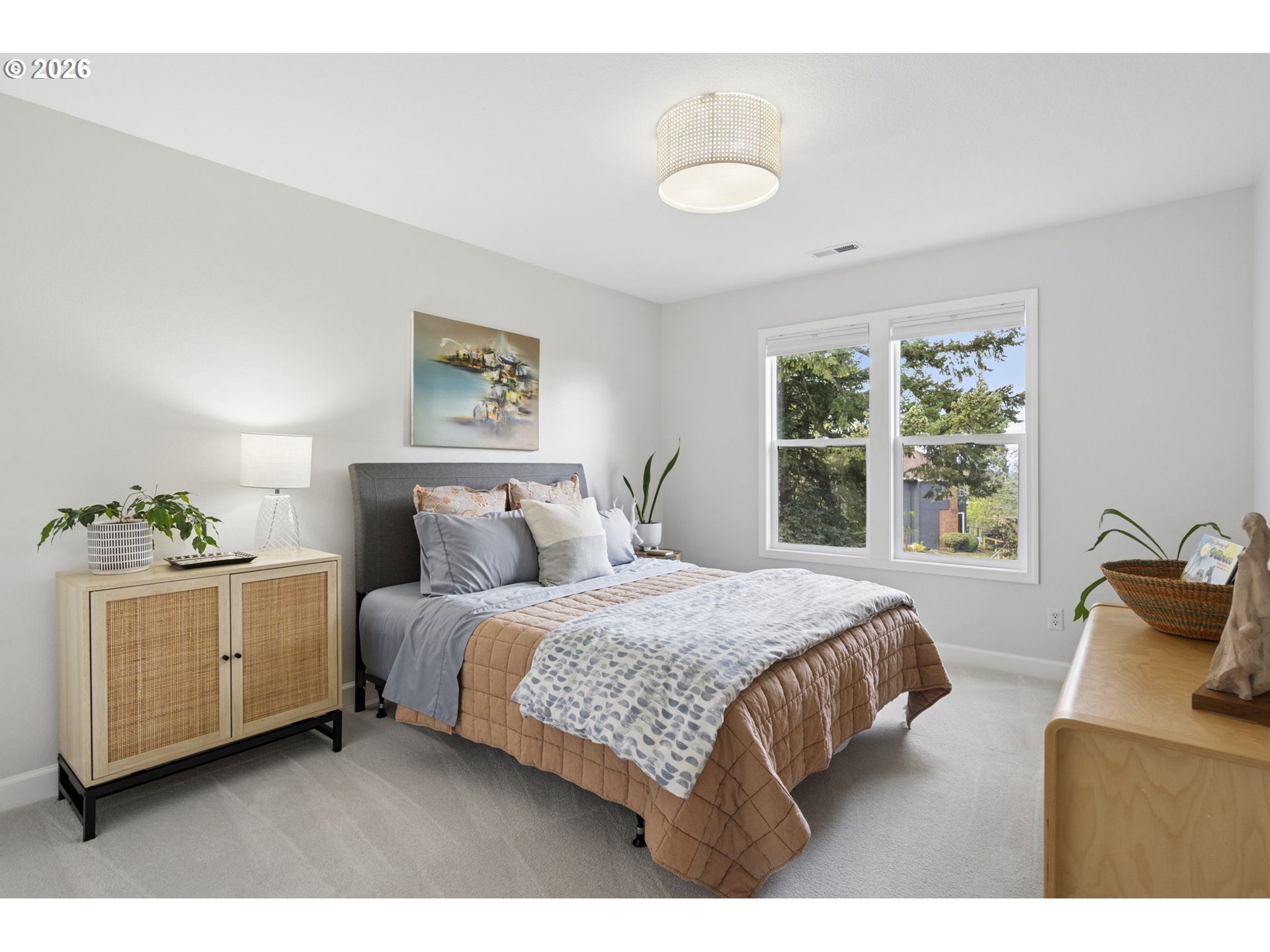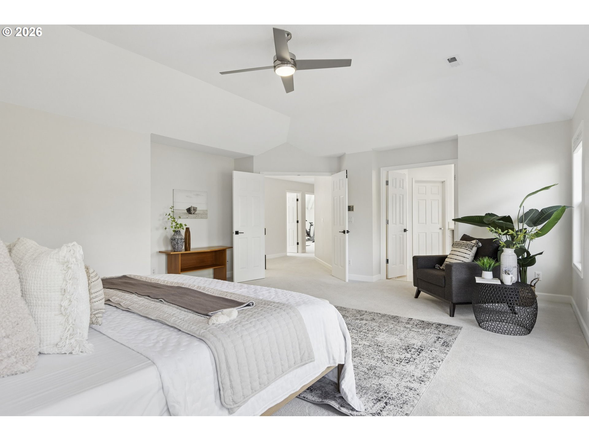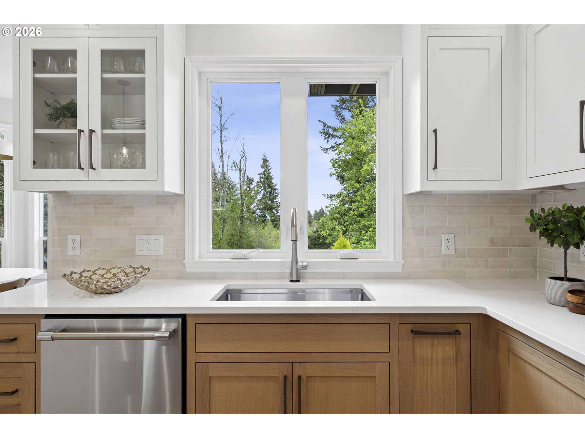 This beautifully updated home sits atop Skyline Ridge with unobstructed mountain views. Hardwood floors span the main level, leading into a brand-new kitchen with white oak cabinetry, quartz counters, and Thermador stainless steel appliances. A built-in speaker system provides seamless Bluetooth audio for cooking and entertaining. The kitchen opens to a great room with a gas fireplace and sliding doors to an upper deck overlooking the spacious 0.26-acre yard. Upstairs features three guest bedrooms (one staged as a bonus room), a full bath, and a luxurious primary suite with vaulted ceilings, new carpet, panoramic views of Mount Hood and Mount Adams, and a private balcony. French doors open to a fully remodeled en suite with a walk-in shower, double sinks, soaking tub, and elegant tile. The daylight basement includes a wine cellar, theater room, recreation area with pool table and wet bar, plus a fifth bedroom and full bath—ideal for multi-generational living. Sliding doors lead to a large lower deck with gas hookup for grilling. The backyard features a zonal sprinkler system & strategic uplighting of the home & landscaping. Just down the street you will find Skyline Ridge Park with tennis courts, basketball, playground & more. Skyline Ridge also has a community pool which residents in this neighborhood can join if they would like for an annual fee. Please ask your realtor for a list of updates & amenities for an in depth look at all the high end systems that were put into this home. This home is impeccably maintained and thoughtfully updated. A lot of fun memories were had at this home over the last 28, and now it's ready for you.
