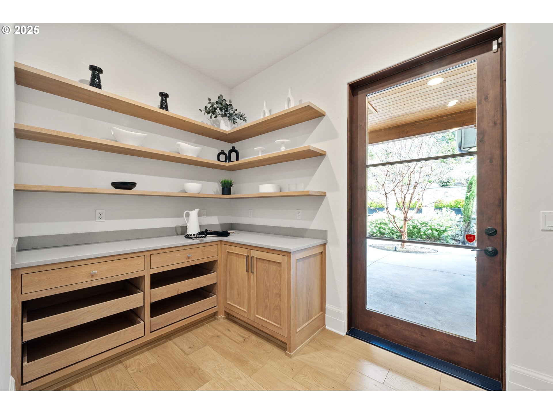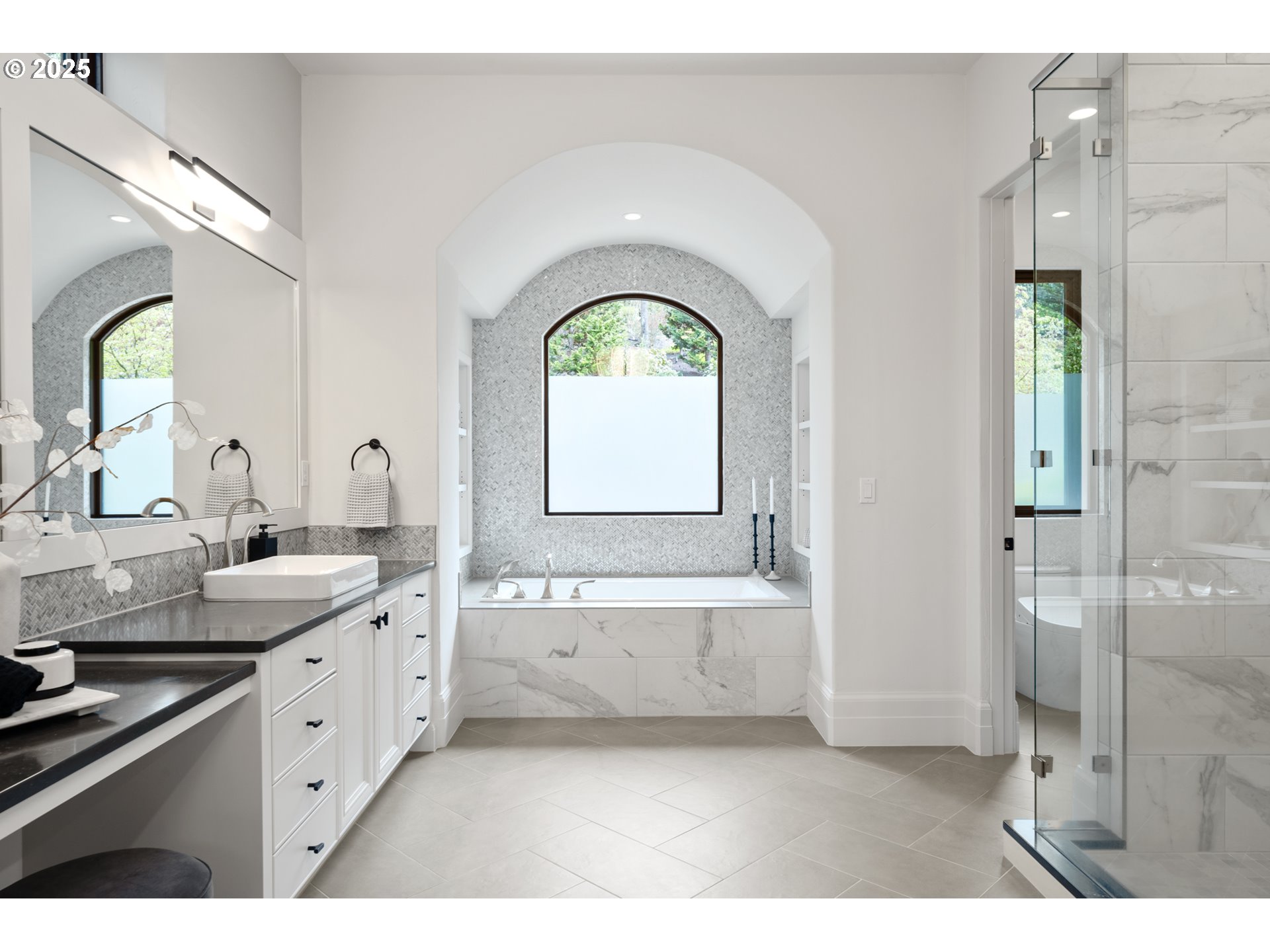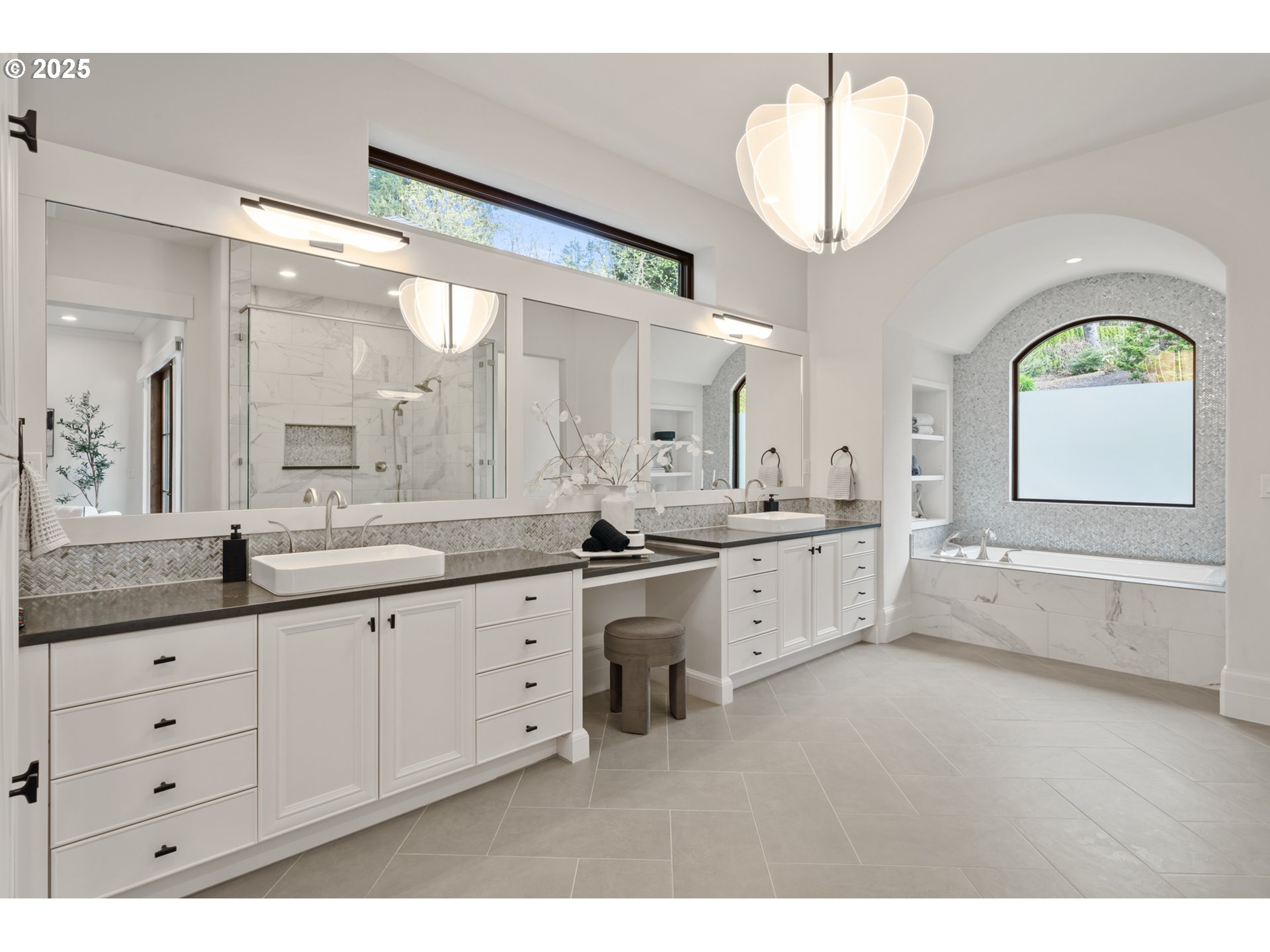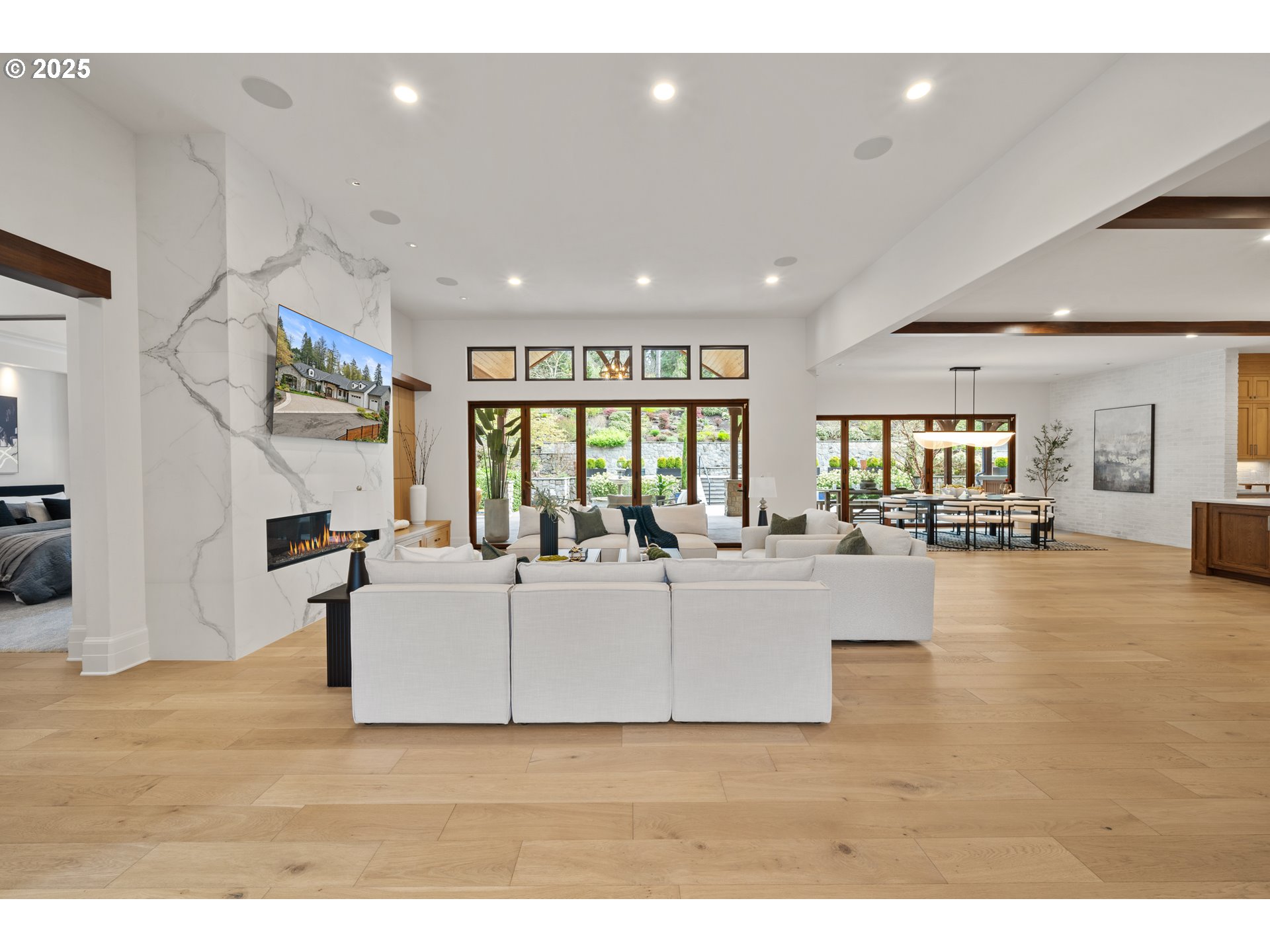 (503) 893-8874Experience luxury living at its finest in this gated, single-level custom home, offering over 5,000 square feet of thoughtfully designed space and a rare oversized five-car garage. Located in the prestigious Dunthorpe neighborhood and benefiting from Clackamas County taxes, this residence blends newer, high-quality construction with timeless design, exceptional privacy, and seamless indoor-outdoor living. Situated on two tax lots totaling approximately one acre, the property makes a striking first impression with a circular drive, professionally landscaped grounds, and a spacious motor court—setting the tone for the sophistication found within. Step inside to a soaring great room anchored by a sleek linear gas fireplace wrapped in quartz, setting a modern yet inviting ambiance. The gourmet kitchen is a showpiece, appointed with custom white oak inset cabinetry, a Viking range, dual ovens, dual Sub-Zero refrigerators, a spacious quartz island, and an open-concept pantry. Adjacent to the kitchen, a geothermal-cooled wine cellar provides the ideal space to store and showcase your collection. The primary suite is a serene retreat, complete with a luxurious en-suite bath and an expansive custom walk-in closet. Thoughtfully designed for privacy, the additional bedrooms are well-separated from the primary suite, each featuring en-suite baths and walk-in closets. Two LaCantina folding glass doors open to a covered outdoor living area, outfitted with a built-in BBQ, overhead heaters, and skylights for year-round comfort. A spacious patio offers multiple zones for entertaining, including a fire pit, raised planter beds, and terraced gardens framed by a lush natural backdrop. The oversized five-car garage delivers exceptional storage and flexibility, while whole-house generator ensures uninterrupted peace of mind. Zoned for both Riverdale and Lake Oswego schools, and located just minutes from high-end shopping, dining, and outdoor recreation, this is refined Northwest living.