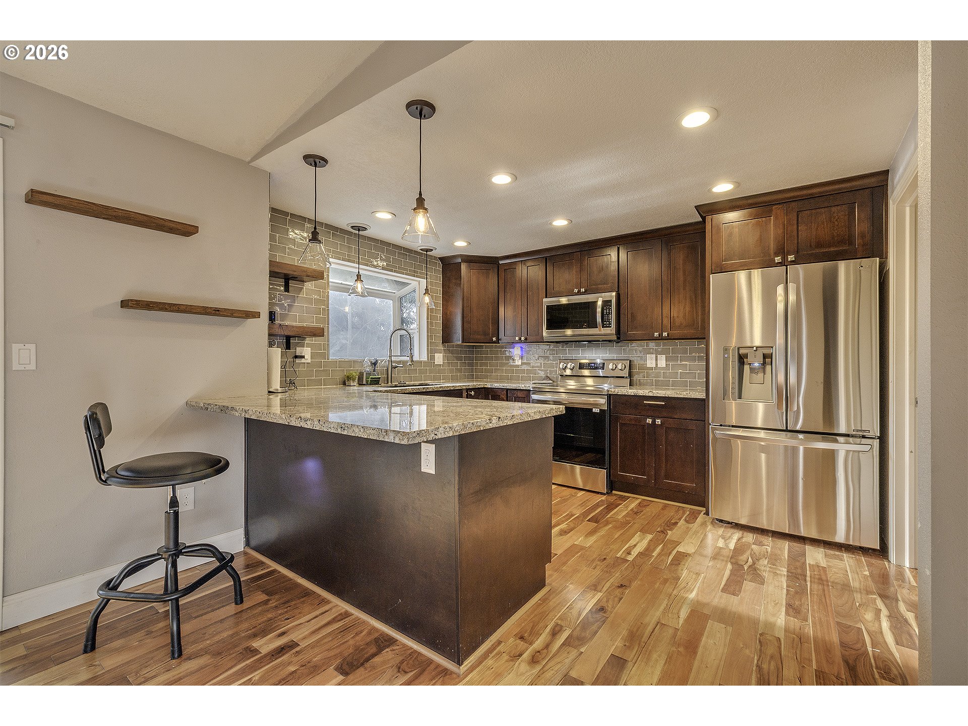 Granite, HighCeilings, VaultedCeiling, WoodFloors