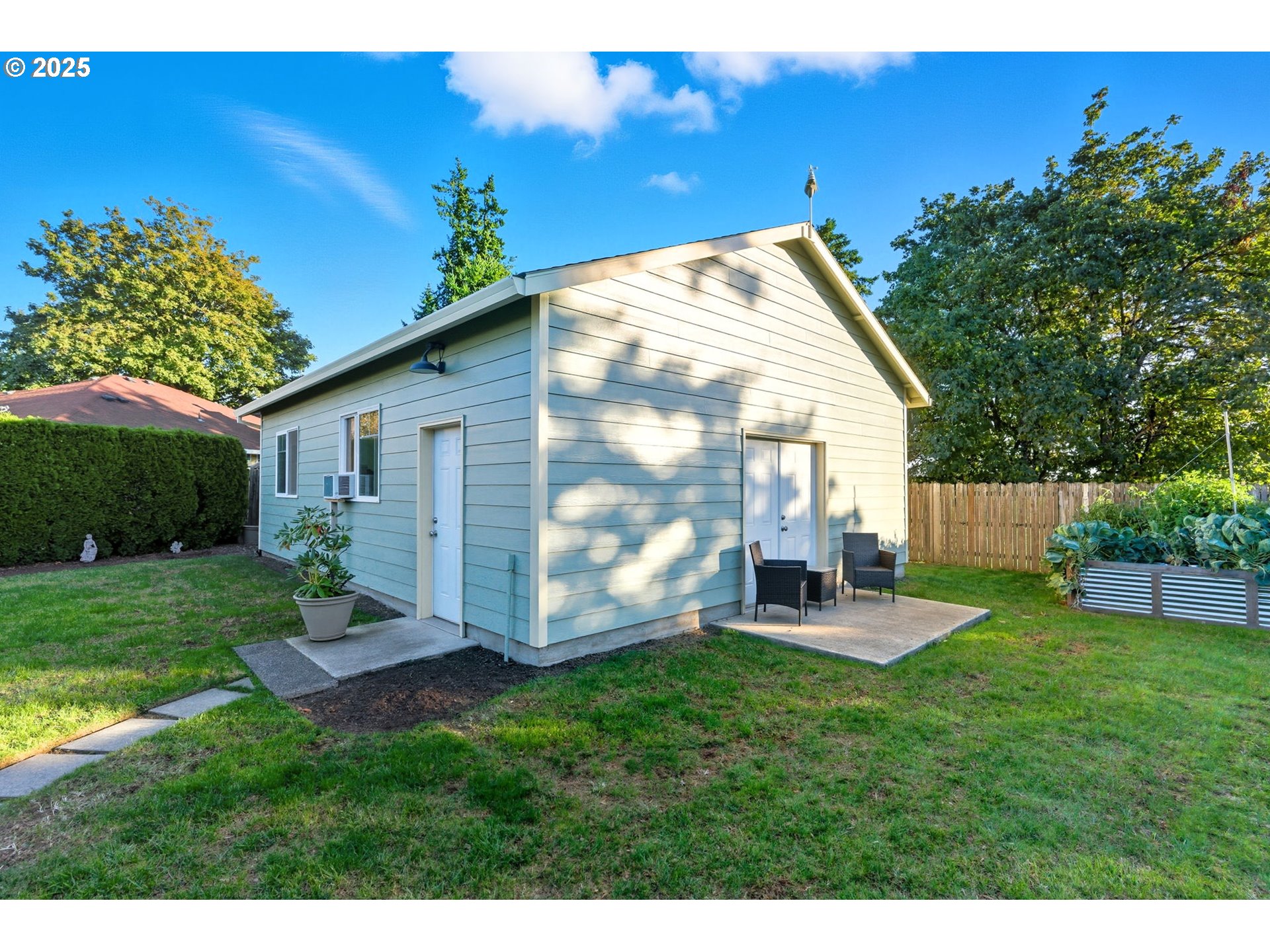 CoveredPatio, Fenced, Garden, Outbuilding, Patio, RaisedBeds, RVBoatStorage, Sprinkler, ToolShed, Workshop, Ya