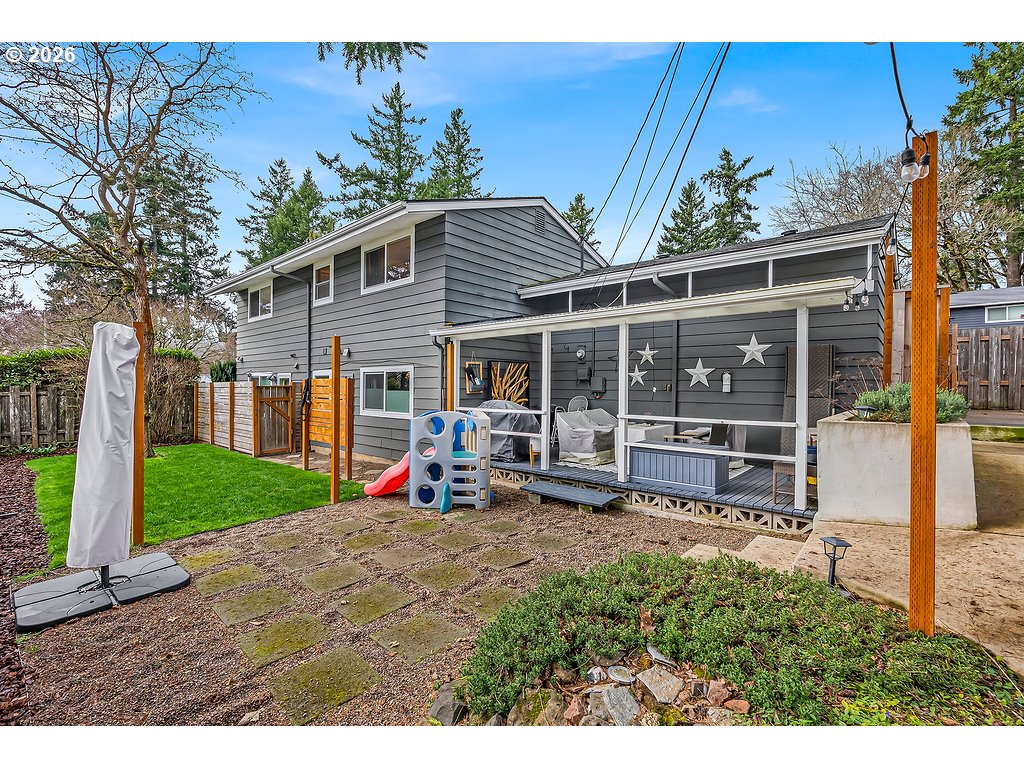 Charming and thoughtfully updated tri-level home offering the perfect blend of character, comfort, and flexible living space. This well-cared-for home features hardwood floors, abundant natural light, a cozy gas fireplace, and central A/C for year-round comfort. The kitchen is both functional and stylish with sleek Dekton countertops and an eat-in dining area ideal for everyday living or entertaining. Major improvements include Milgard windows with custom wood trim, California Closet systems in every closet, updated interior plumbing connections, refreshed bathroom finishes, and fresh interior paint. A standout feature of the home is the remodeled non-conforming ADU (approx. 500 SQ. FT.), offering incredible versatility for guests, a home office, creative studio, or potential rental opportunity. Step outside to an entertainer’s backyard featuring patio pavers for a fire pit, posts for string lights, fresh sod, a dog run, and mature landscaping including hydrangeas, a Japanese maple, cherry tree, mint, and an impressive producing blueberry bush. Additional highlights include a covered deck, attached two-car garage, washer and dryer on the main level, and recent landscaping updates. Conveniently located near parks, shopping, and easy I-5 access while feeding into highly regarded Lake Oswego schools. The ADU furnishings may also be negotiated for a potential turnkey setup.