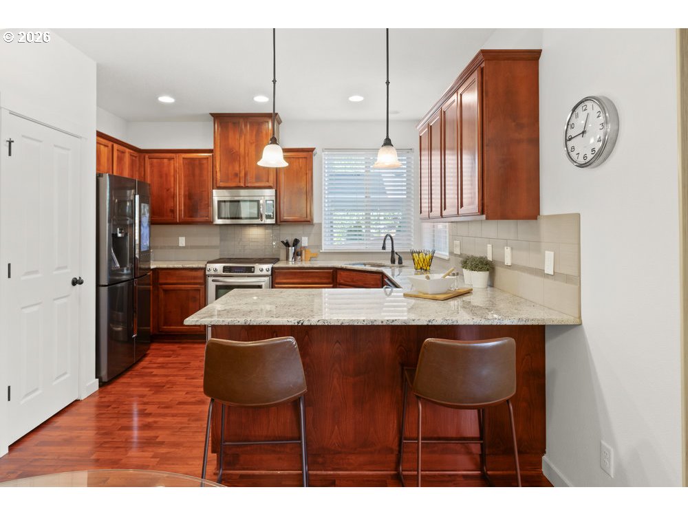 Modern design, thoughtful layout, and unbeatable location come together at 13543 SE Almond Drive. This 4-bedroom, 3-bath home offers over 2,500 sq ft of versatile living space, complete with standout features like a third full bathroom and 612 sq ft of dedicated garage storage. The open-concept main floor features a spacious living area, dining room, and a well-appointed kitchen with stainless steel appliances, a large island, and ample storage. A full bathroom and bedroom on the main level create the perfect setup for guests, remote work, or multigenerational living.The home has been freshly painted throughout, and the three upstairs bedrooms feature brand-new flooring. The light-filled primary suite includes a walk-in closet and en suite bath, while a third full bathroom, laundry room, and bonus loft provide flexibility for any lifestyle.The backyard offers a flat lawn, raised garden beds, and direct access to green space through a private gate—ideal for play, pets, or relaxing outdoors. The oversized garage delivers rare additional storage or workshop potential, with 612 sq ft of space not included in the main square footage.Located on the same street as Pfiefer Park and just two blocks from Rock Creek Middle School and Clackamas High School, this home also offers unbeatable access to local dining, shopping, and the seasonal farmers market—all just minutes away. A perfect blend of comfort, functionality, and convenience in one of Clackamas’ most desirable neighborhoods.