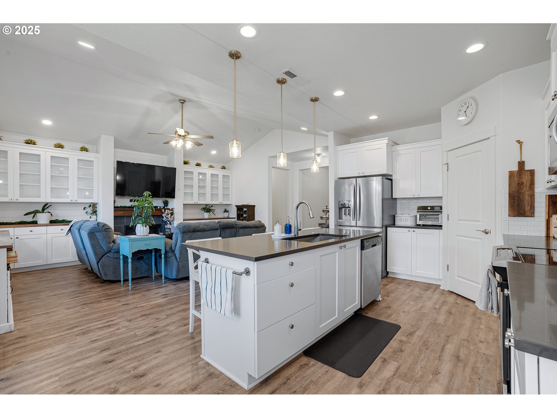 Welcome to 1374 NW Bagby St in Estacada- where thoughtful upgrades meet modern comfort in the heart of Campanella Estates! This beautifully maintained single-level home features 3 bedrooms, 2 bathrooms, a versatile office/den, and a bonus insulated room in the spacious three-car garage – ideal for a home gym, art studio, or hobby space. A beautifully designed Murphy bed by California Closets transforms one bedroom into a stylish and functional guest space. Step inside to an open-concept layout bathed in natural light, with stylish details throughout. The living area offers custom built-ins, a cozy fireplace accented with modern shiplap, and durable LVP flooring that’s as attractive as it is low-maintenance. The kitchen is a true centerpiece, showcasing quartz countertops, white cabinets, stainless steel appliances, and a large island with bar seating- perfect for everyday living and entertaining. Retreat to the primary suite, a private oasis with a generous layout and thoughtful finishes. Additional highlights include custom cabinetry in both the entry and laundry room, offering extra charm and functional storage. Step outside to enjoy the fully fenced backyard, complete with an extended hot tub–grade concrete patio, sidewalks on both sides, and raised garden beds – ideal for relaxing, entertaining, or cultivating your own garden oasis. Located just minutes from local shops, and schools, this home offers small-town charm with modern convenience in one of Estacada’s most desirable neighborhoods.