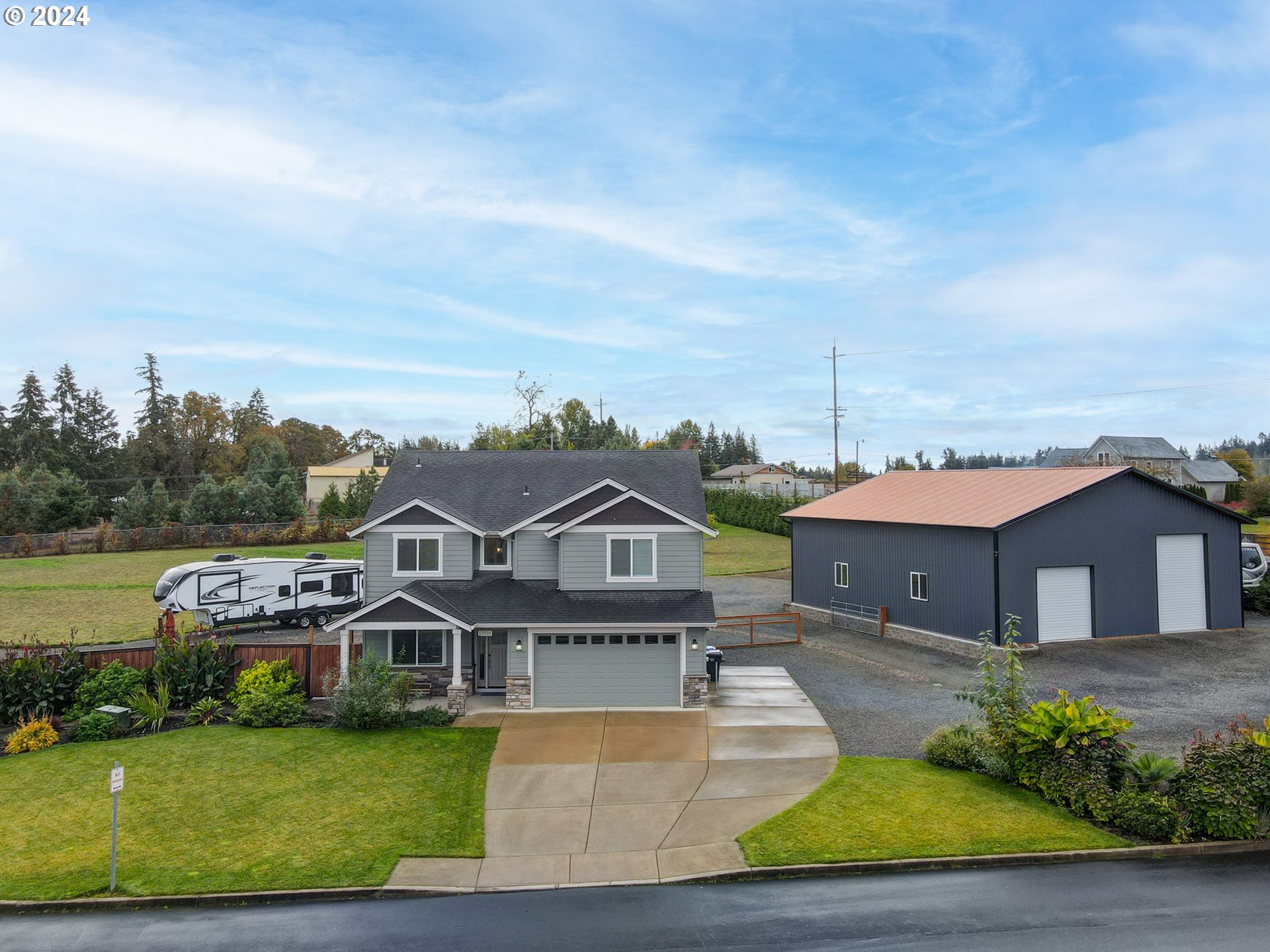(503) 893-8874Experience custom luxury on two pristine acres. Completed in 2019, this 2,507 sq. ft. residence seamlessly blends elegance and function. The main floor, adorned with engineered hardwoods, features a main-level office and a stunning great room with a gas fireplace, crown molding, and rope lighting. The heart of the home is the gourmet kitchen, boasting quartz countertops, an island, premium stainless steel appliances, and a walk-in pantry.Retreat to the luxurious primary suite, which offers a large walk-in closet, a soaker tub, a separate shower, and dual quartz vanities. Outside, enjoy the covered patio, beautifully landscaped garden, and mature fruit trees.The property’s amenities are unmatched: an attached 2-car garage, dedicated RV parking with an electric hookup, and a spectacular detached 2,484 sq. ft. shop. This incredible space features 24-foot ceilings, a full bathroom with a tiled shower, a tankless water heater, and abundant room for all your vehicles and toys. This isn't just a home; it's a lifestyle.