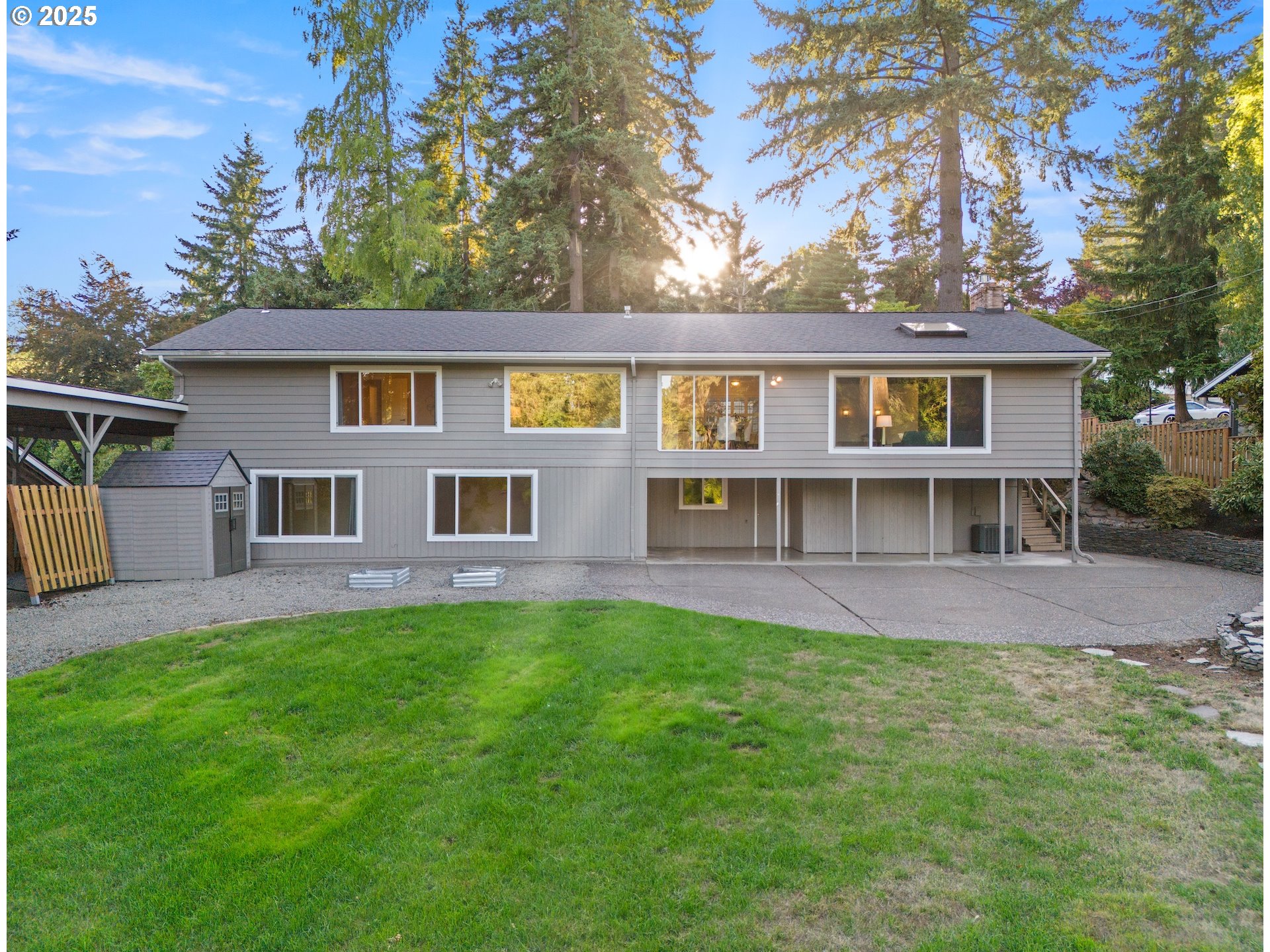 OPEN HOUSE SATURDAY 12/6 12:30 – 2:30 PM. Step into a world of timeless elegance on this expansive property, ideally located within walking distance of top-rated Lake Oswego High School and Junior High. Meticulously designed, the home offers a seamless blend of style and functionality. Upon entering through the custom neighborhood gathering porch, you're greeted by the heart of the property, where the dining and living rooms merge, bathed in natural light. The adjacent family room, with its vaulted ceilings and fireplace, adds a unique charm and connects beautifully to the sprawling backyard. The updated kitchen features granite countertops and modern appliances, combining aesthetics and practicality. The main floor primary suite, complete with a remodeled bathroom, is complemented by two additional bedrooms and another fully remodeled bathroom. Downstairs, a versatile space includes a large family room, two bedrooms, and another remodeled bathroom with a private entrance. The property's appeal is enhanced by ample outdoor storage, two garden sheds, and a 60-foot covered RV parking bay. Just beyond your private retreat, downtown Lake Oswego's shops and restaurants are within easy reach. Experience the perfect blend of classic beauty and modern comfort in this exceptional home.