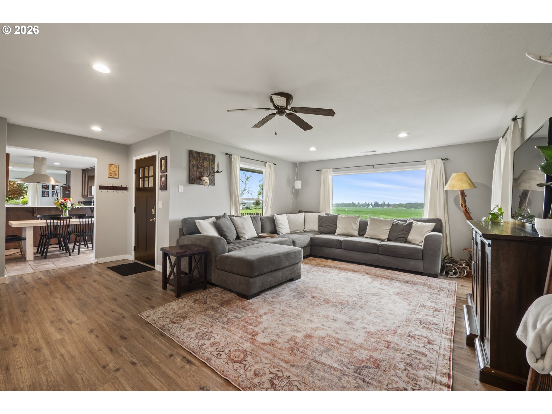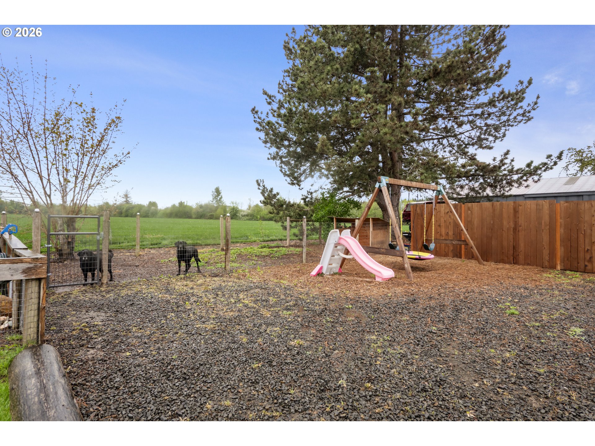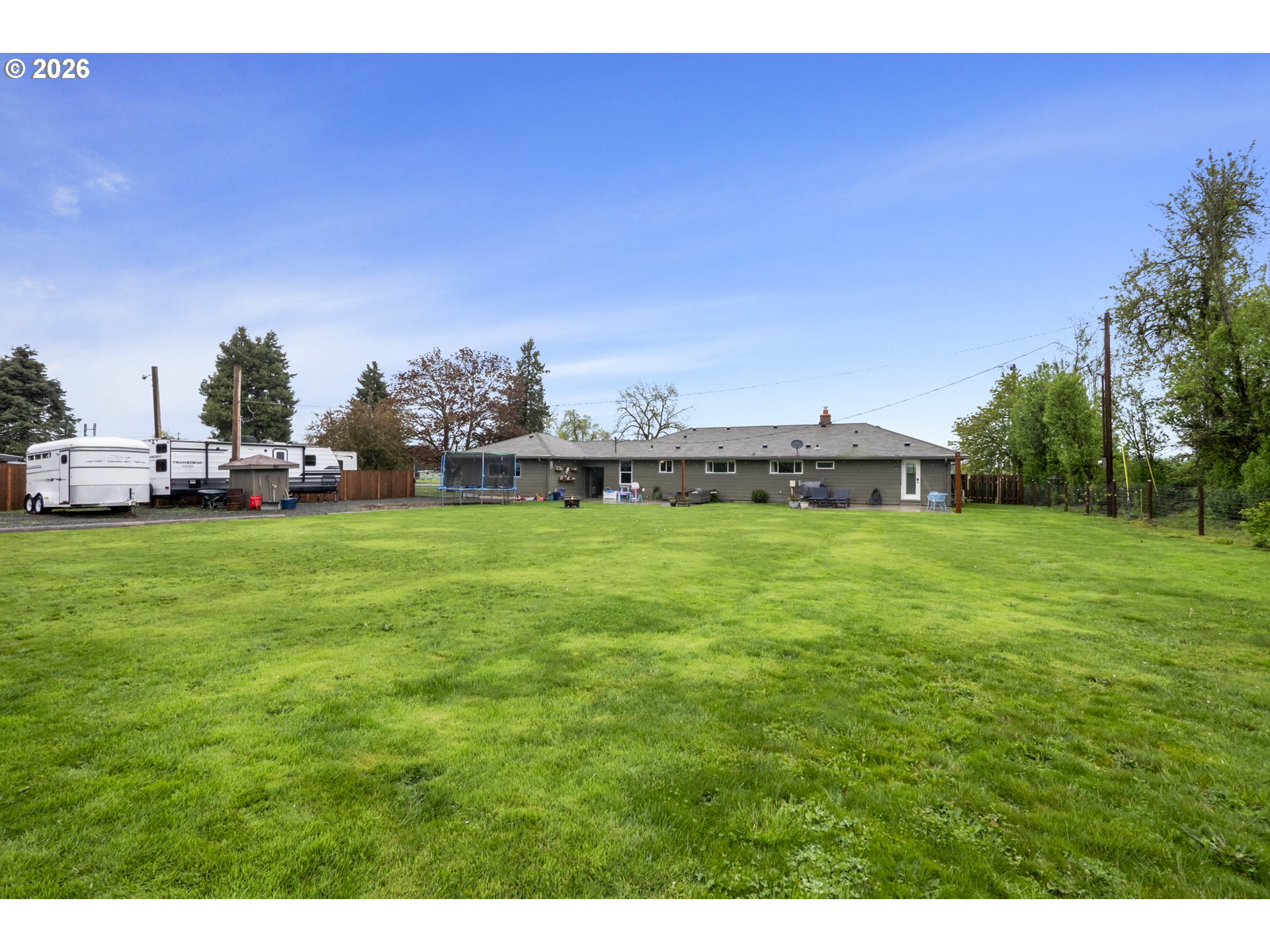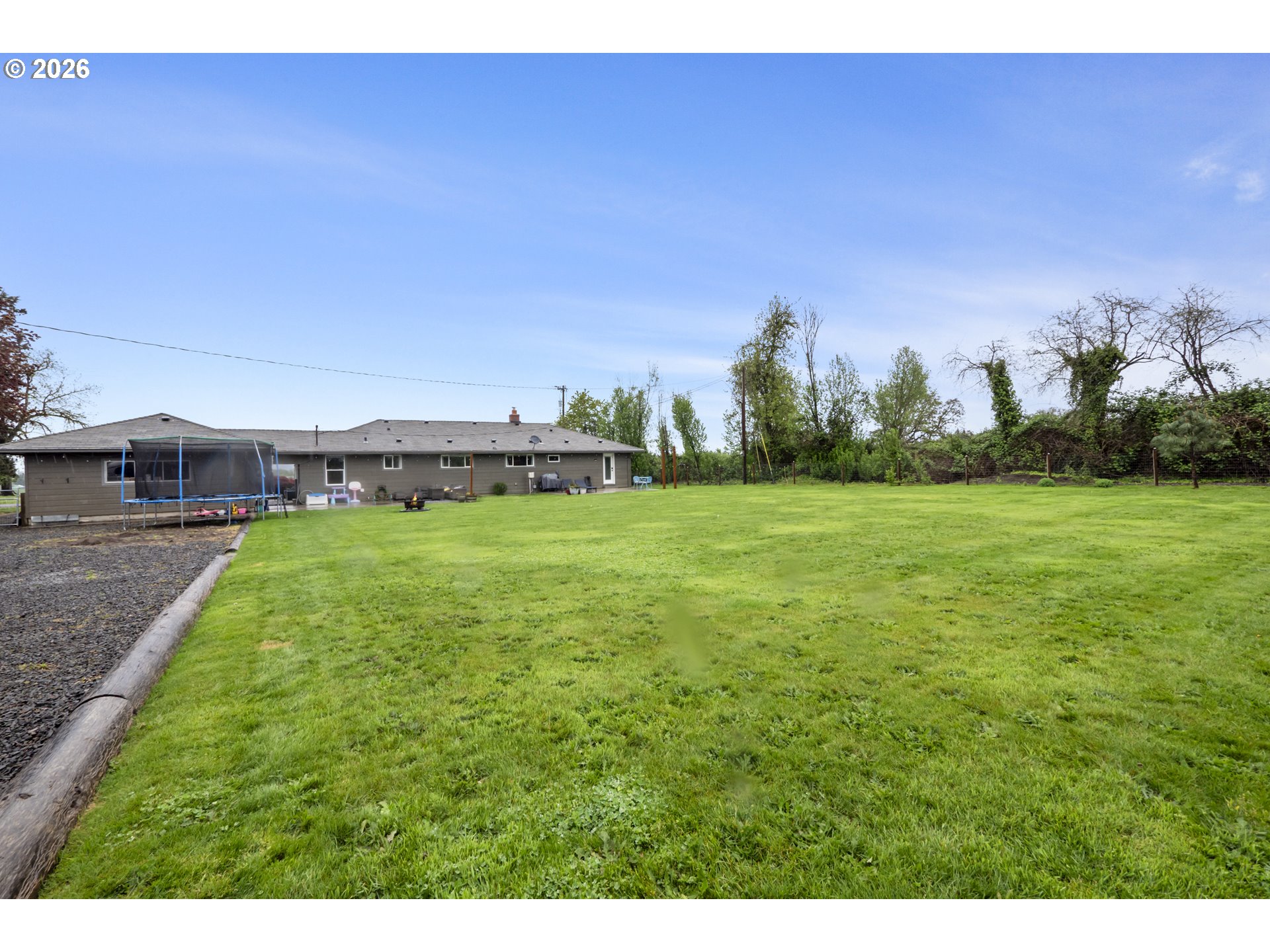 (503) 893-8874One-level living at this close-in Molalla home with 360 degree views of beautiful farmland. Situated on over a half acre of flat, useable, landscape land. Massive kitchen with quartz counters, double oven, farmhouse sink, stainless steel appliances, pantry, and eat bar! Dining room off the kitchen gives way to a large family room with a wood-burning fireplace insert. Primary suite with walk-in closet & ensuite bathroom with walk-in tile shower. Down the hall are two more bedrooms, a full bathroom, and mud/utility room with an exterior door. Tile and LVP flooring throughout the home. Oversized two-car garage with great storage and workspace. Two concrete patios in the backyard make for prime outdoor living spaces in the huge fenced backyard with cross fenced chicken enclosure/garden/dog run areas. Plenty of room for RV/Boat/Toy parking with electrical and water hookup. Move-in ready country home in close proximity to town/amenities.