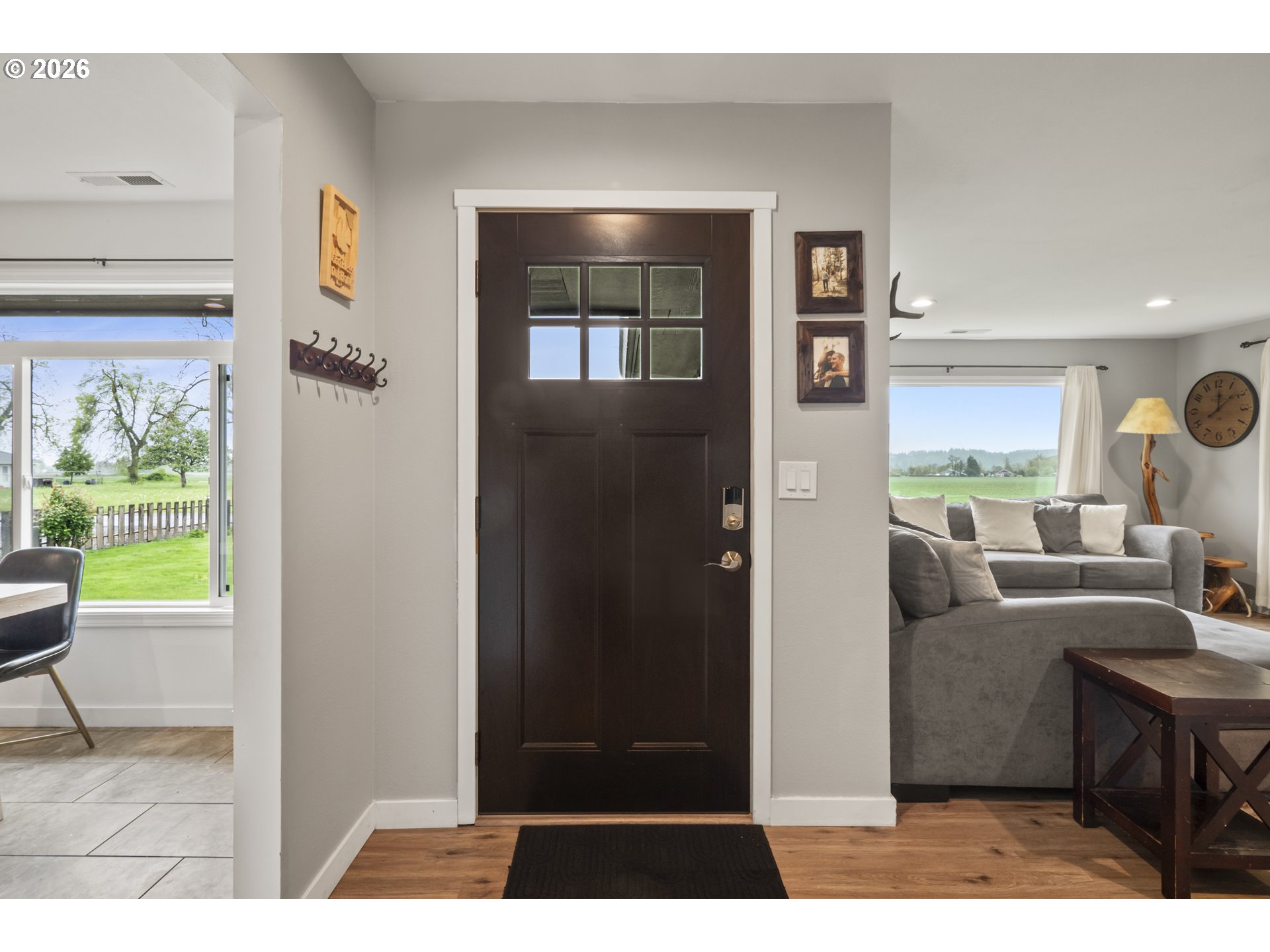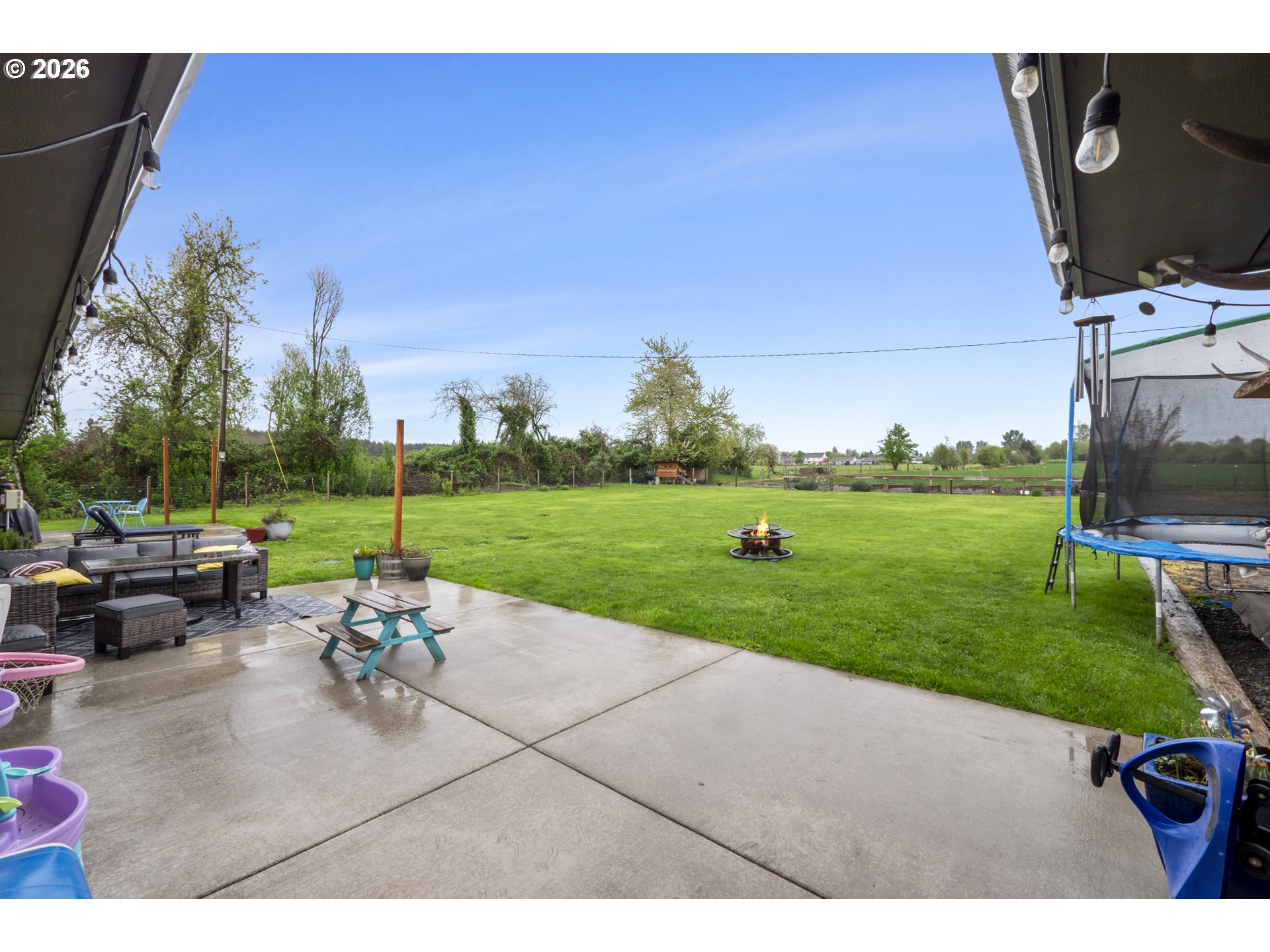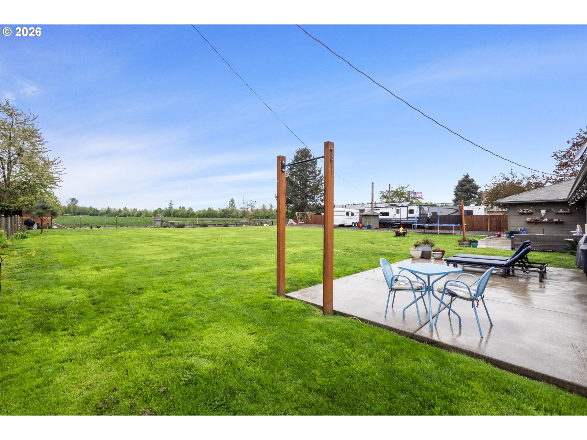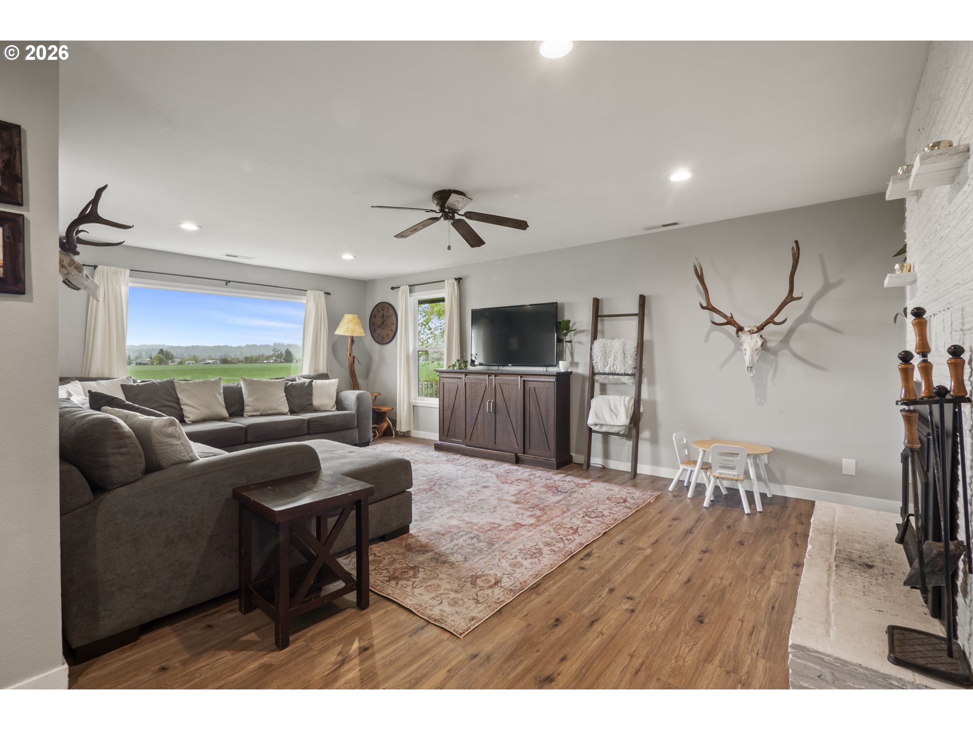 (503) 893-8874One-level living at this close-in Molalla home with 360 degree views of beautiful farmland. Situated on over a half acre of flat, useable, landscape land. Massive kitchen with quartz counters, double oven, farmhouse sink, stainless steel appliances, pantry, and eat bar! Dining room off the kitchen gives way to a large family room with a wood-burning fireplace insert. Primary suite with walk-in closet & ensuite bathroom with walk-in tile shower. Down the hall are two more bedrooms, a full bathroom, and mud/utility room with an exterior door. Tile and LVP flooring throughout the home. Oversized two-car garage with great storage and workspace. Two concrete patios in the backyard make for prime outdoor living spaces in the huge fenced backyard with cross fenced chicken enclosure/garden/dog run areas. Plenty of room for RV/Boat/Toy parking with electrical and water hookup. Move-in ready country home in close proximity to town/amenities.