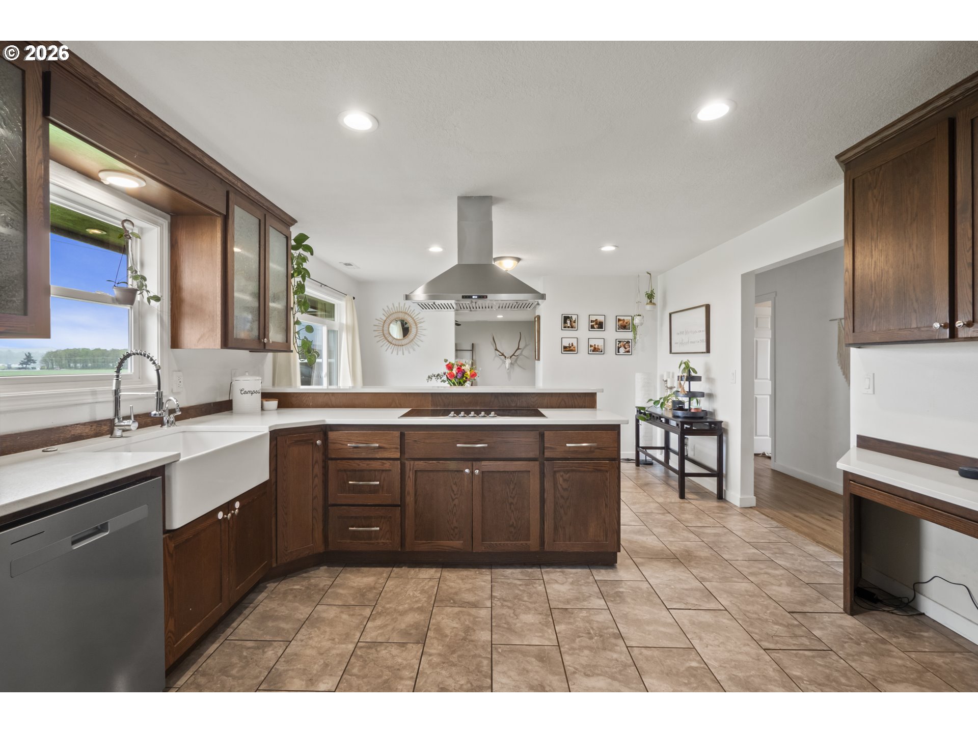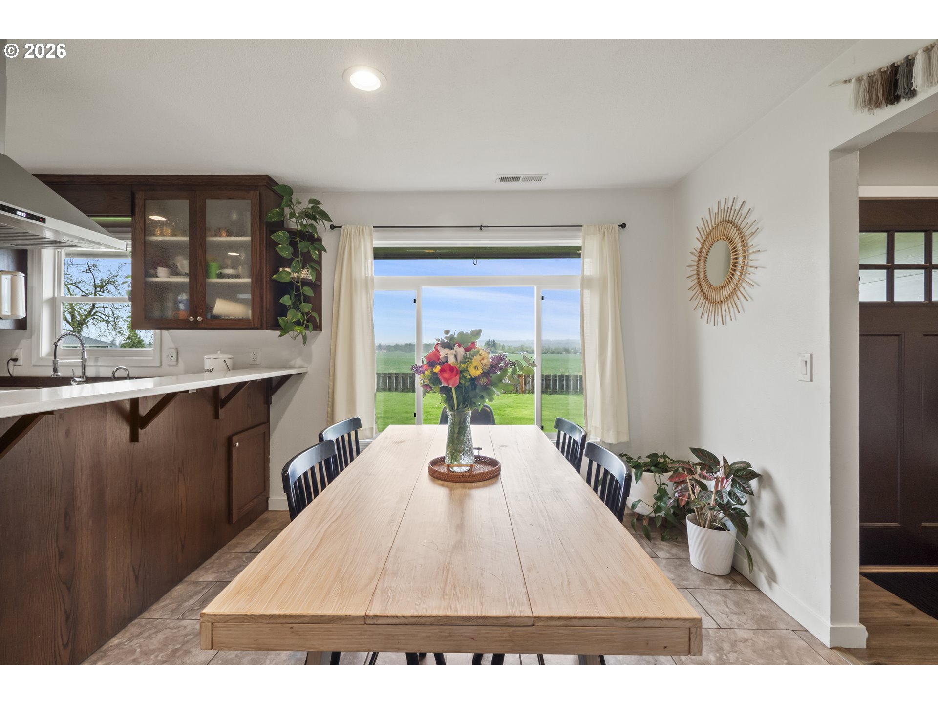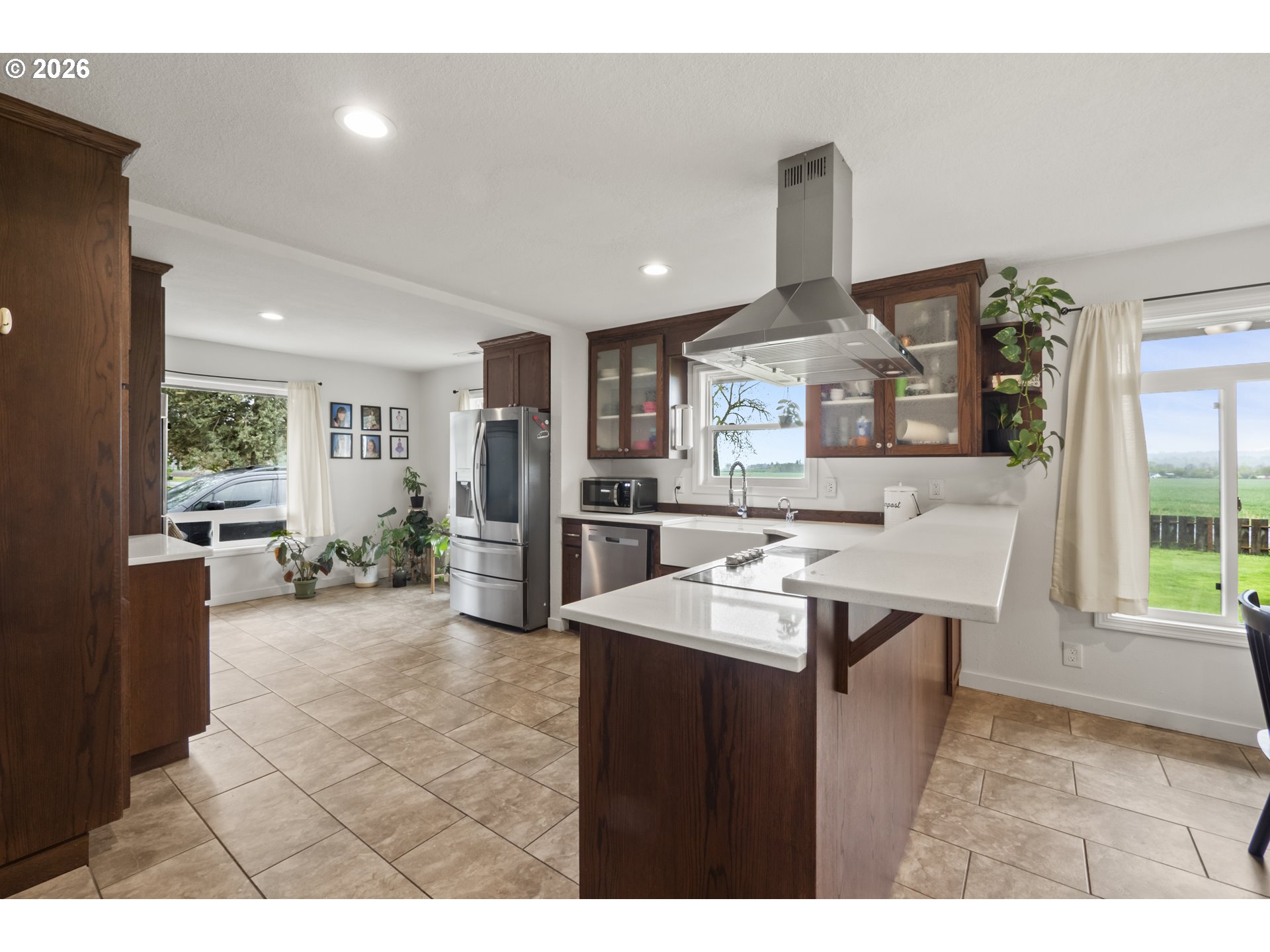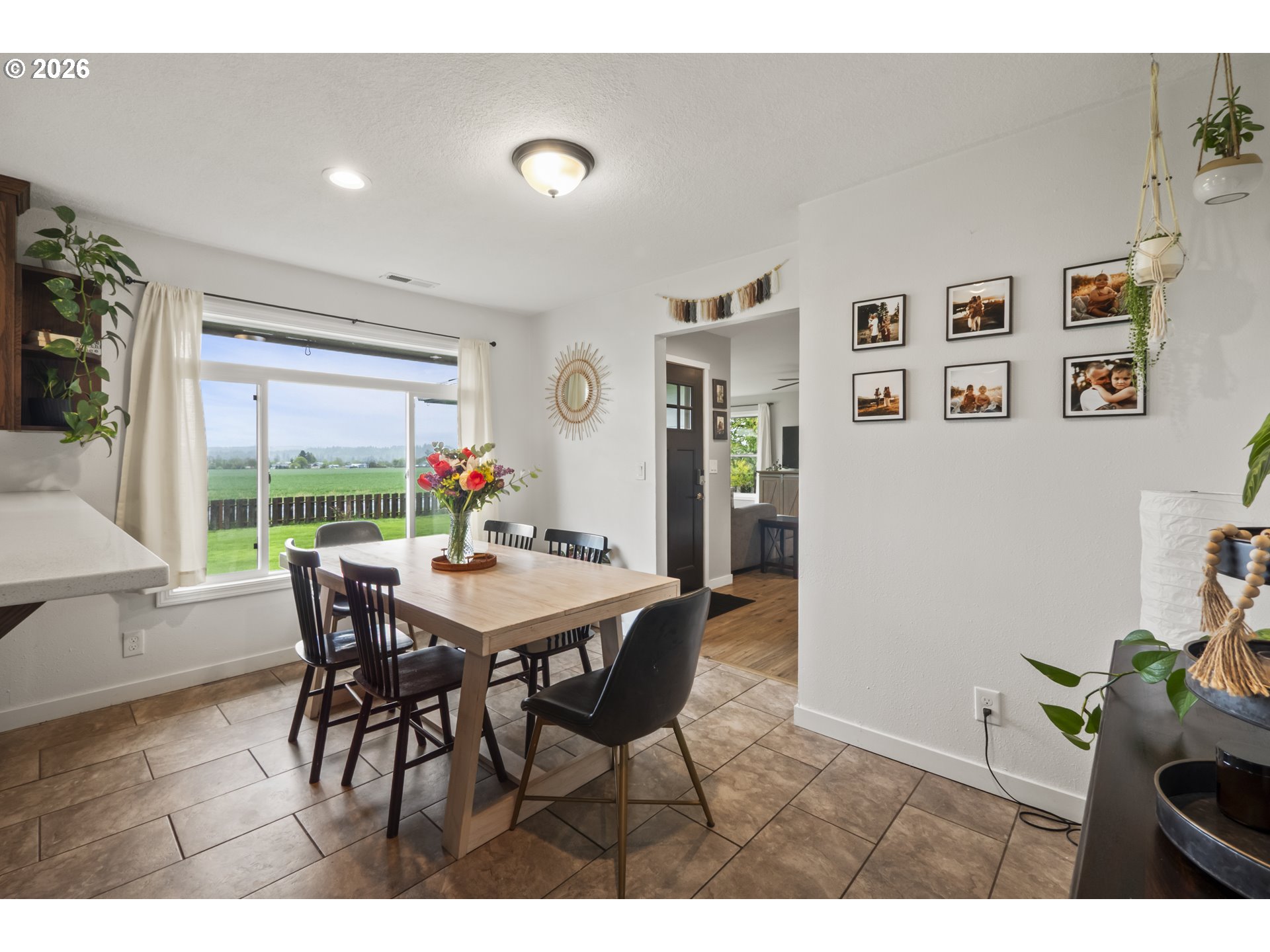 (503) 893-8874One-level living at this close-in Molalla home with 360 degree views of beautiful farmland. Situated on over a half acre of flat, useable, landscape land. Massive kitchen with quartz counters, double oven, farmhouse sink, stainless steel appliances, pantry, and eat bar! Dining room off the kitchen gives way to a large family room with a wood-burning fireplace insert. Primary suite with walk-in closet & ensuite bathroom with walk-in tile shower. Down the hall are two more bedrooms, a full bathroom, and mud/utility room with an exterior door. Tile and LVP flooring throughout the home. Oversized two-car garage with great storage and workspace. Two concrete patios in the backyard make for prime outdoor living spaces in the huge fenced backyard with cross fenced chicken enclosure/garden/dog run areas. Plenty of room for RV/Boat/Toy parking with electrical and water hookup. Move-in ready country home in close proximity to town/amenities.