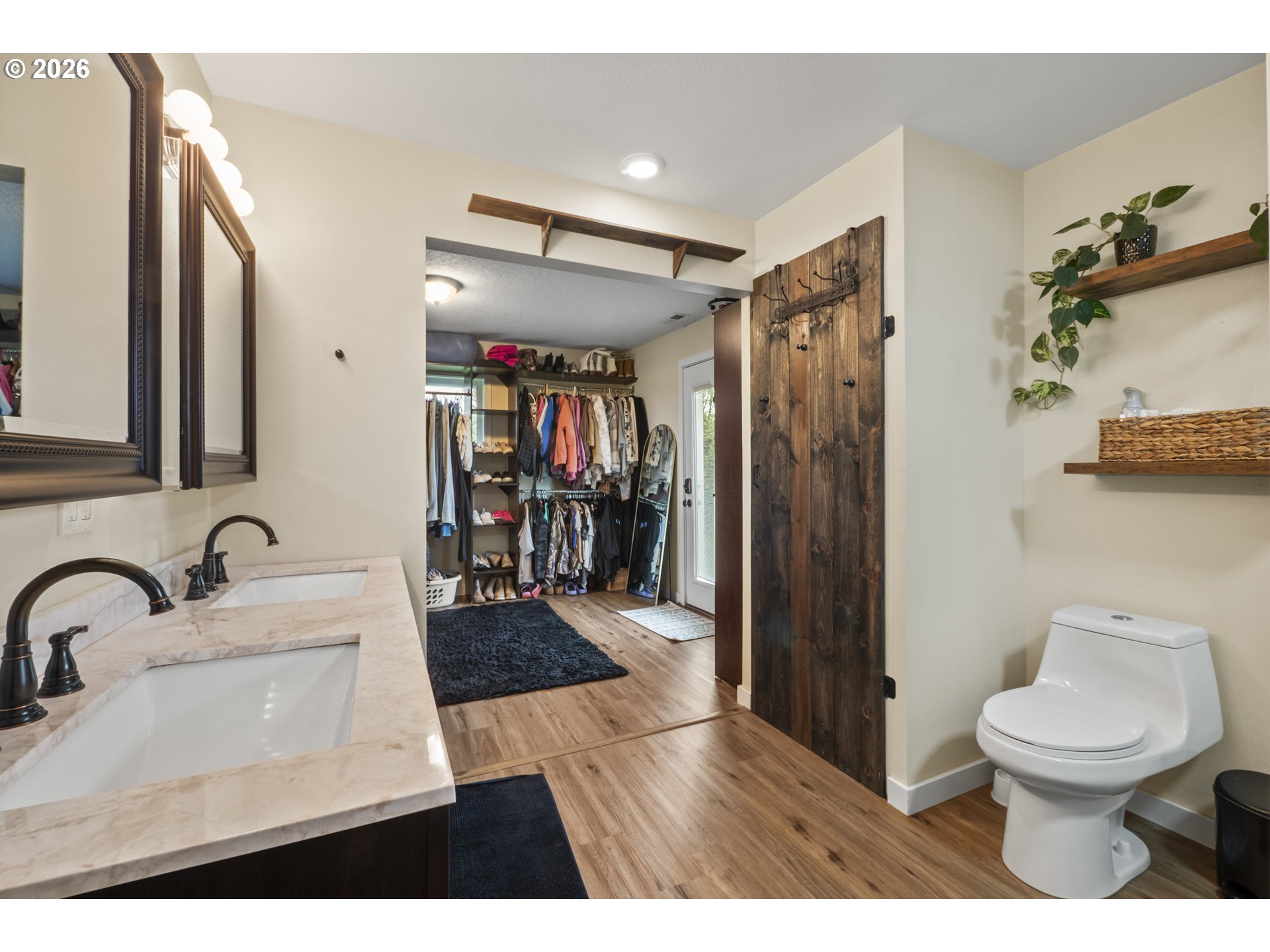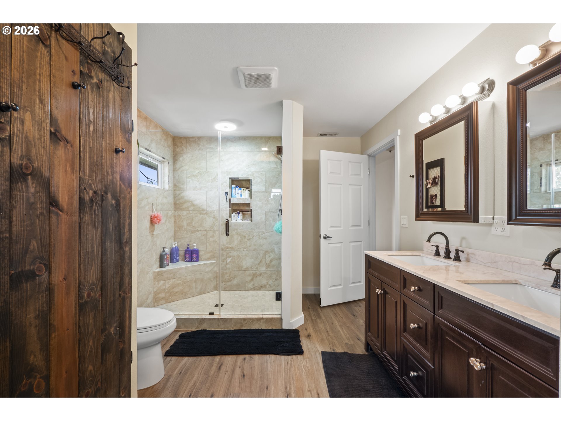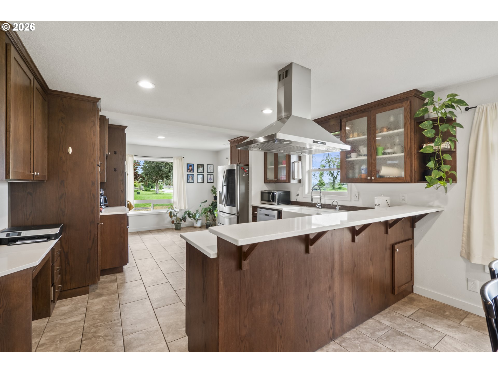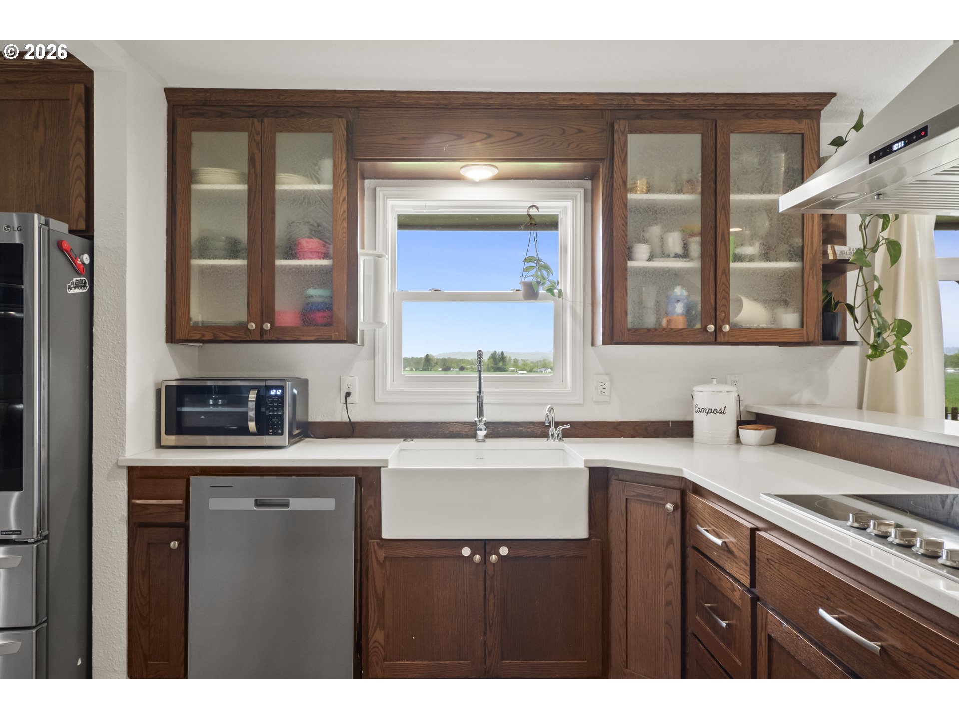 (503) 893-8874One-level living at this close-in Molalla home with 360 degree views of beautiful farmland. Situated on over a half acre of flat, useable, landscape land. Massive kitchen with quartz counters, double oven, farmhouse sink, stainless steel appliances, pantry, and eat bar! Dining room off the kitchen gives way to a large family room with a wood-burning fireplace insert. Primary suite with walk-in closet & ensuite bathroom with walk-in tile shower. Down the hall are two more bedrooms, a full bathroom, and mud/utility room with an exterior door. Tile and LVP flooring throughout the home. Oversized two-car garage with great storage and workspace. Two concrete patios in the backyard make for prime outdoor living spaces in the huge fenced backyard with cross fenced chicken enclosure/garden/dog run areas. Plenty of room for RV/Boat/Toy parking with electrical and water hookup. Move-in ready country home in close proximity to town/amenities.