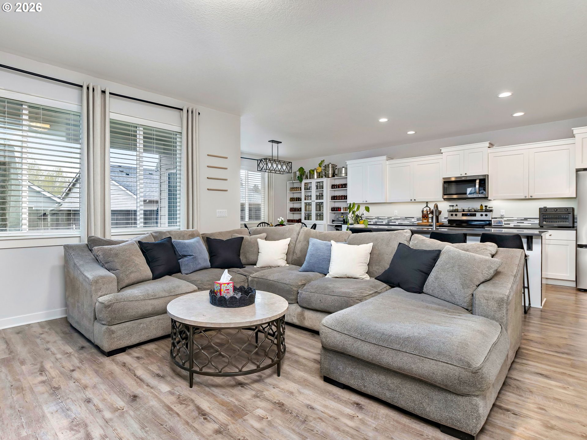 Immaculate 4-bedroom home built by Pahlisch in 2020 featuring an open-concept great room design "The Langford" with high ceilings and continuous LVP flooring throughout the main living area. The kitchen is ideal for entertaining with quartz countertops, a large island, spacious pantry, and adjoining dining area. Enjoy a fully fenced backyard, covered patio, and a spacious primary suite complete with a large walk-in closet and dual sinks. The upper-level utility room provides convenient access near the bedrooms for everyday living.