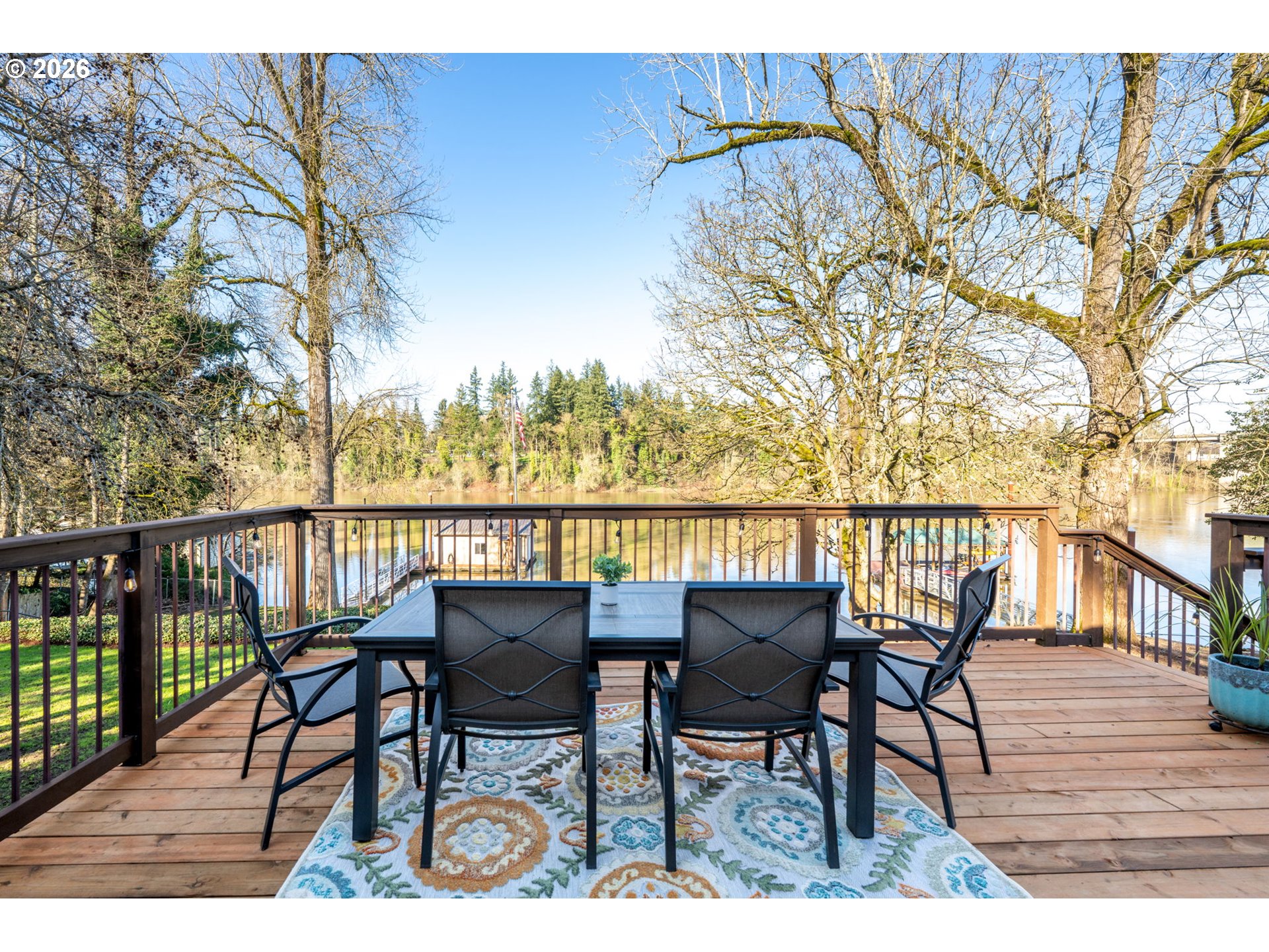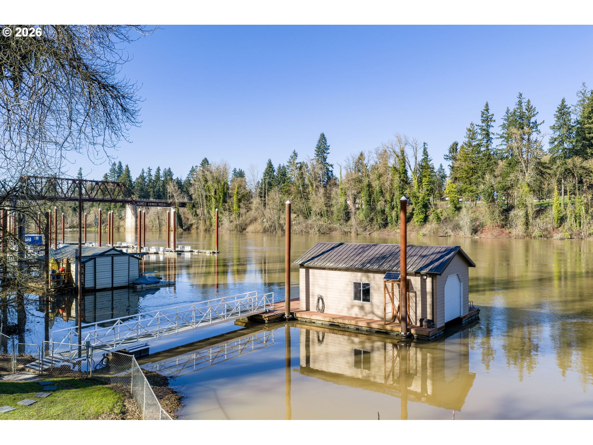 Live your dream in a resort-style waterfront property on a prime lot with 132 feet of Willamette River frontage, ideally positioned in a desirable no-wake zone. With direct water access, this is a true haven for water-sport enthusiasts—boat, kayak, fish, or simply unwind while taking in beautiful views and abundant wildlife, including eagles, hawks, and an array of fish. Set on just shy of 3/4 acre with lush, mature landscaping and towering trees, the outdoor spaces shine with brand-new front and back decks designed for entertaining, catching a beautiful sunset, or just enjoying everyday relaxation.Waterfront amenities impress with water rights, an approx 1,200 sq ft dock, and a new ramp to an approximate 600 sq ft boathouse with a lighted gangway. On days when the weather doesn’t cooperate, the home brings the outdoors in with a wall of windows in the spacious living room, cozy up by the fireplace, and watch the river life drift by. Unwind in the updated primary suite featuring a walk-in closet organizer and a spa-inspired ensuite with heated floors, bidet, dual sinks, and Bluetooth speakers integrated into the lighting.The lower-level yard access adds convenience for unloading gear after a day on the water, and the expansive daylight basement offers a family room and rec room—perfect for hosting, hobbies, or movie nights. See the extensive list of updates and features. No need to vacation when your staycation is right at home!