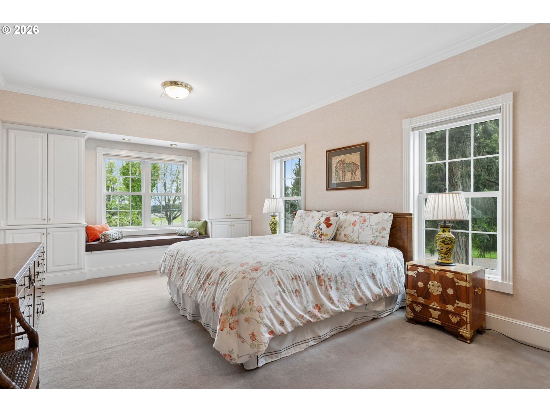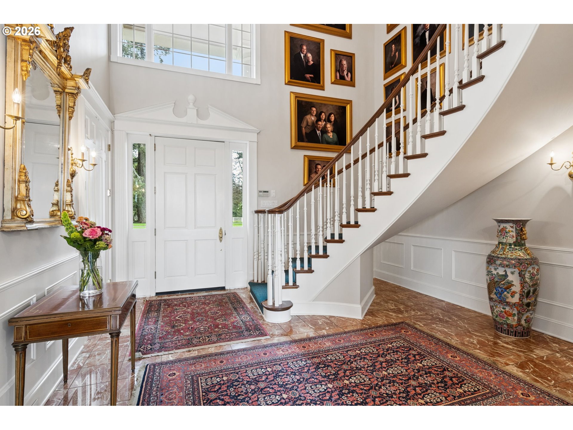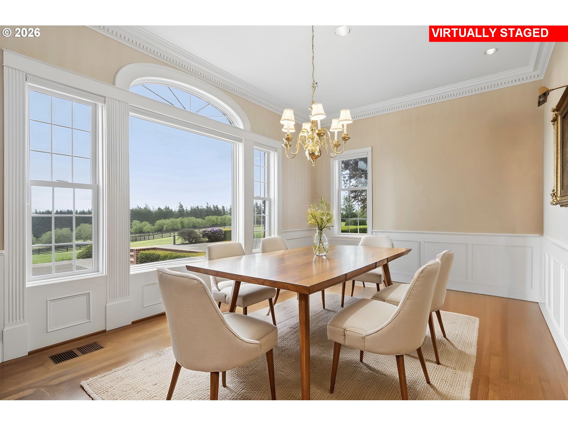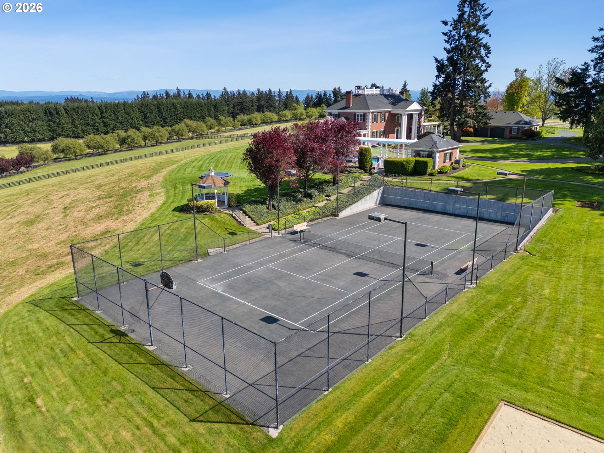 (503) 893-8874Five Peaks Farm — an exquisitely crafted custom Georgian estate sited on 31.79 pristine acres with sweeping 280° vistas of five mountain peaks and glittering city lights. The 8,028sqft residence greets you with a gracious foyer and offers timeless elegance throughout: a main level primary en suite, an impressive office, grand living room, formal dining and kitchen with butler’s station — all opening via walls of windows to multiple patios that capture the territorial panoramas. Interior appointments include rich hardwood floors, vaulted ceilings, wainscoting, six fireplaces, a library/study with a southern style balcony, dedicated theatre, exercise suite with steam and sauna, and high tech security systems. Dual staircases rise to the upstairs wings at either end of the home, while a separate staircase descends to the lower level entertainment spaces featuring a theatre, game room, kitchenette, gym, workshop and abundant storage. Exquisite brickwork and master craftsmanship complete the residence. Outdoors is resort caliber living and entertaining: expansive terraces, a pool with pool house and Island Spa hot tub, in ground trampoline, sand volleyball and tennis courts, plus monkey bars and swing play features—perfect for events, family gatherings and friend filled weekends across the vast, maturely landscaped grounds. Equestrian facilities are exceptional: an oversized Kentucky style barn with grain and tack rooms, storage and four stalls with covered runs, multiple large fenced and cross fenced turnouts, and direct access to on site riding trails. Practical amenities include an oversized detached garage with pull through doors, extensive operational space and the property’s current farm deferral status. Tucked privately off the road yet conveniently located in the top rated Sherwood school district with easy access to Sherwood, Wilsonville, Newberg and the I 5/I 205 corridors, Five Peaks Farm blends privacy, panoramic beauty, top tier infrastructure and lifestyle.