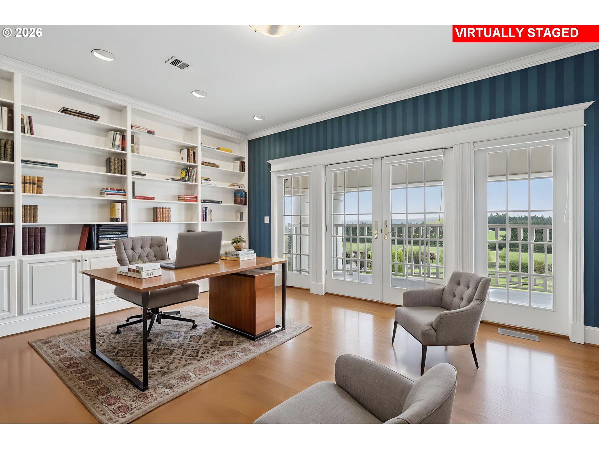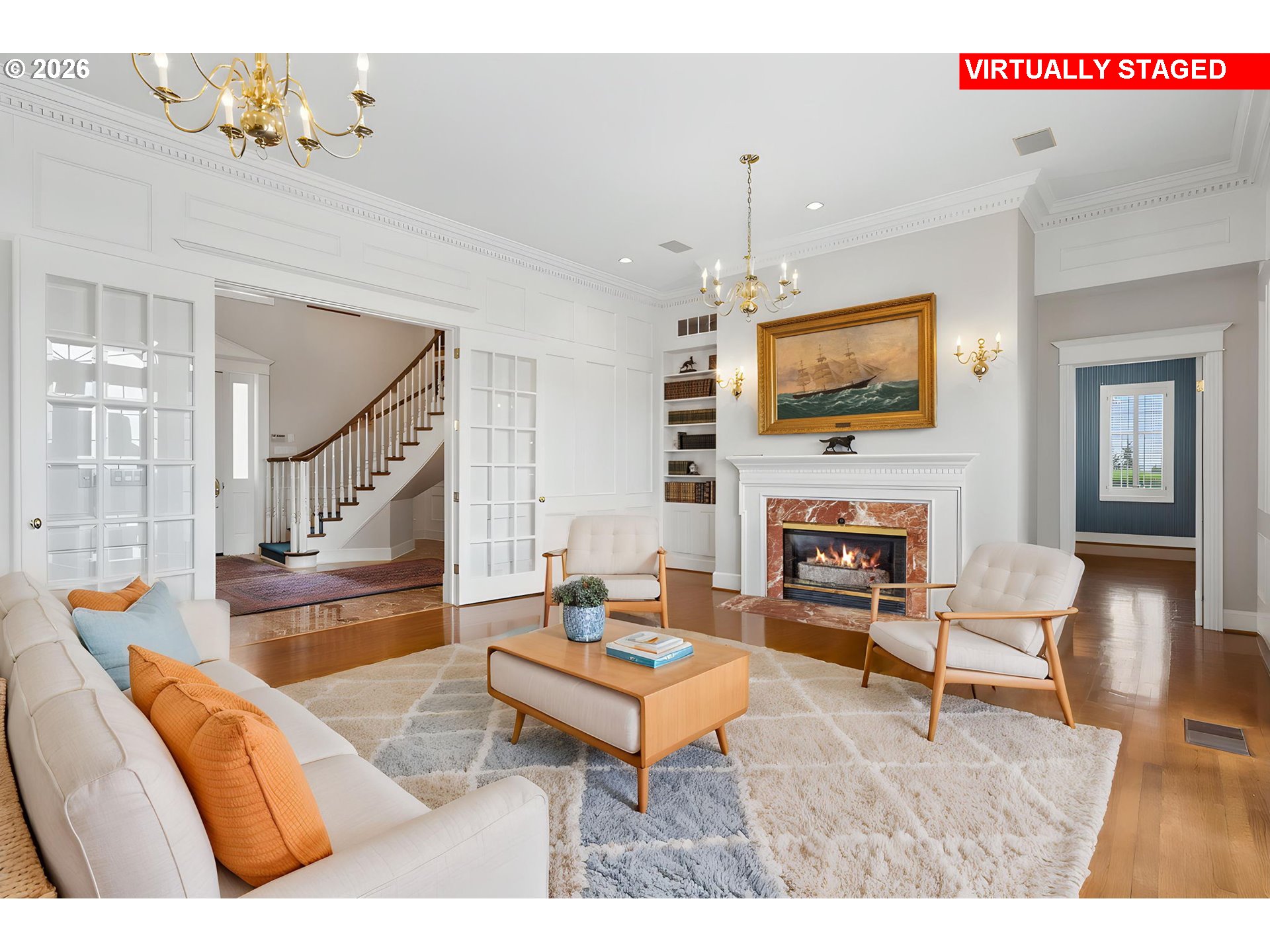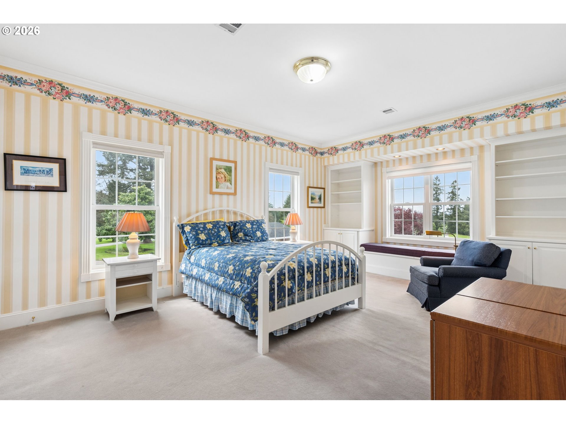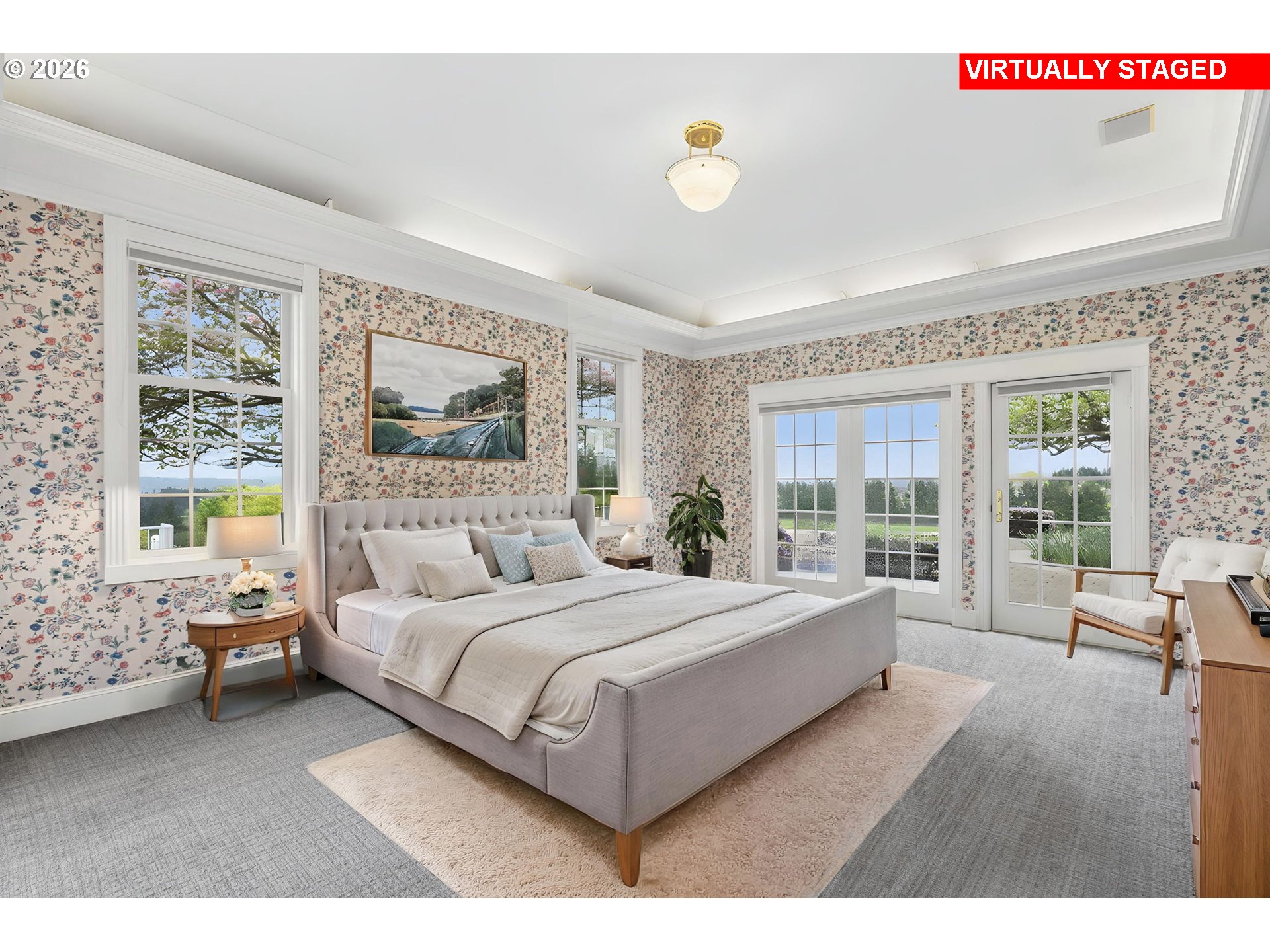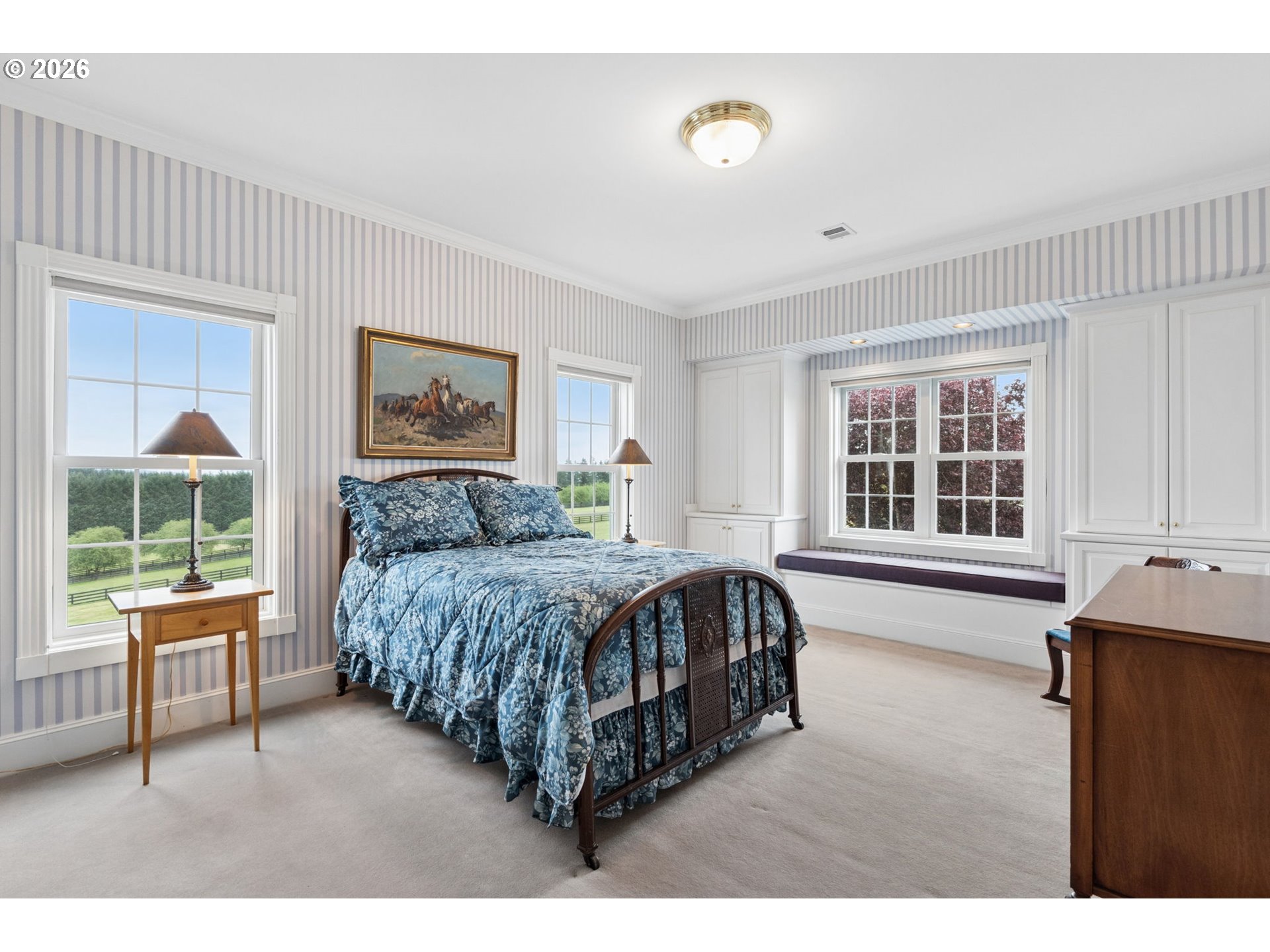 (503) 893-8874Five Peaks Farm — an exquisitely crafted custom Georgian estate sited on 31.79 pristine acres with sweeping 280° vistas of five mountain peaks and glittering city lights. The 8,028sqft residence greets you with a gracious foyer and offers timeless elegance throughout: a main level primary en suite, an impressive office, grand living room, formal dining and kitchen with butler’s station — all opening via walls of windows to multiple patios that capture the territorial panoramas. Interior appointments include rich hardwood floors, vaulted ceilings, wainscoting, six fireplaces, a library/study with a southern style balcony, dedicated theatre, exercise suite with steam and sauna, and high tech security systems. Dual staircases rise to the upstairs wings at either end of the home, while a separate staircase descends to the lower level entertainment spaces featuring a theatre, game room, kitchenette, gym, workshop and abundant storage. Exquisite brickwork and master craftsmanship complete the residence. Outdoors is resort caliber living and entertaining: expansive terraces, a pool with pool house and Island Spa hot tub, in ground trampoline, sand volleyball and tennis courts, plus monkey bars and swing play features—perfect for events, family gatherings and friend filled weekends across the vast, maturely landscaped grounds. Equestrian facilities are exceptional: an oversized Kentucky style barn with grain and tack rooms, storage and four stalls with covered runs, multiple large fenced and cross fenced turnouts, and direct access to on site riding trails. Practical amenities include an oversized detached garage with pull through doors, extensive operational space and the property’s current farm deferral status. Tucked privately off the road yet conveniently located in the top rated Sherwood school district with easy access to Sherwood, Wilsonville, Newberg and the I 5/I 205 corridors, Five Peaks Farm blends privacy, panoramic beauty, top tier infrastructure and lifestyle.