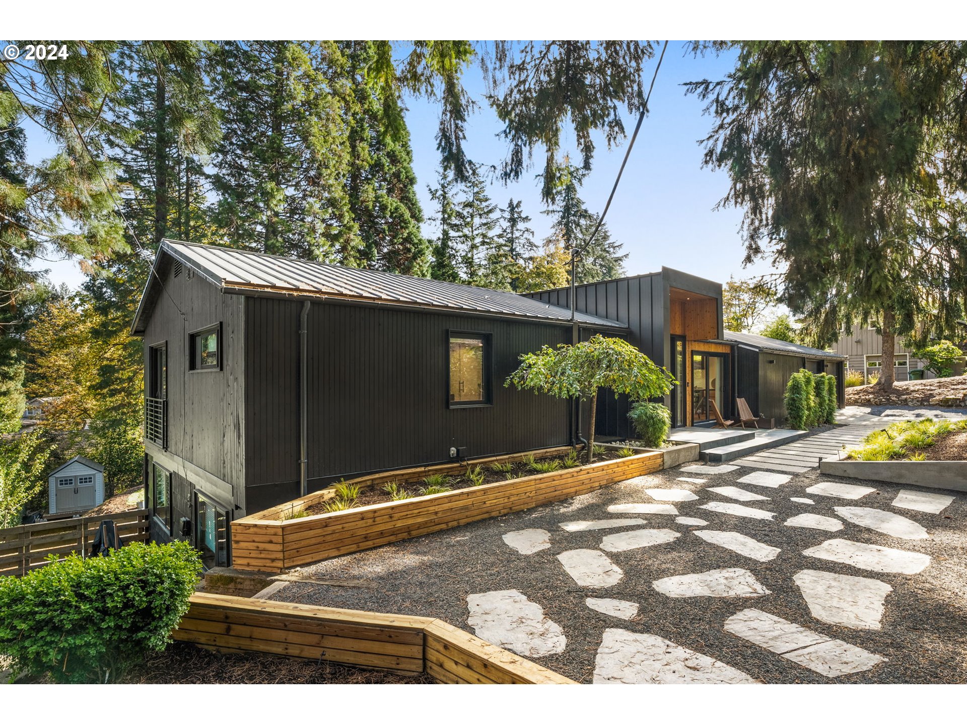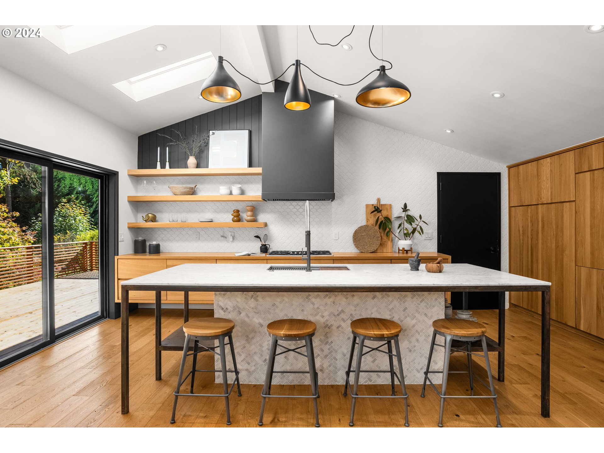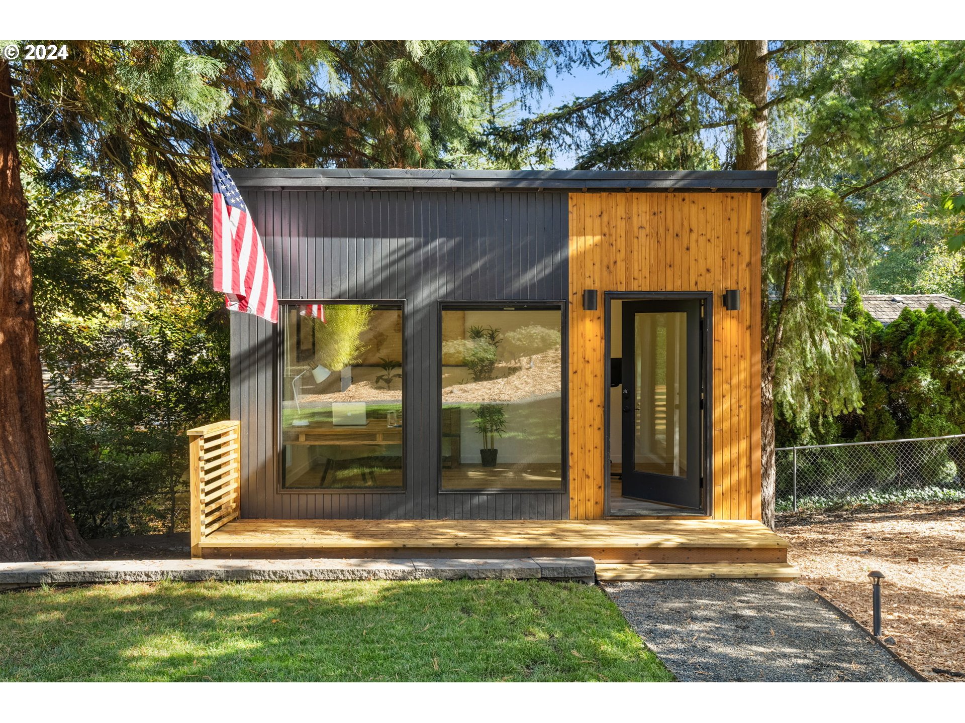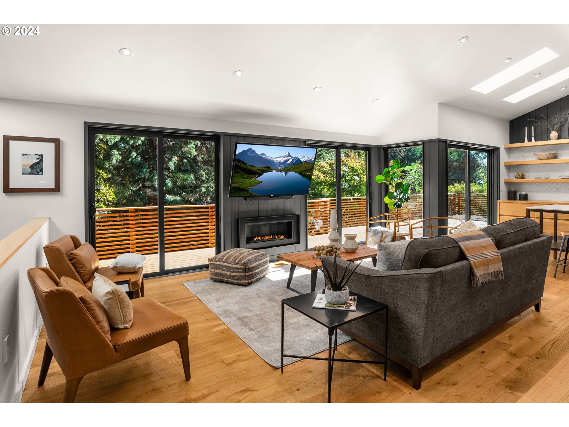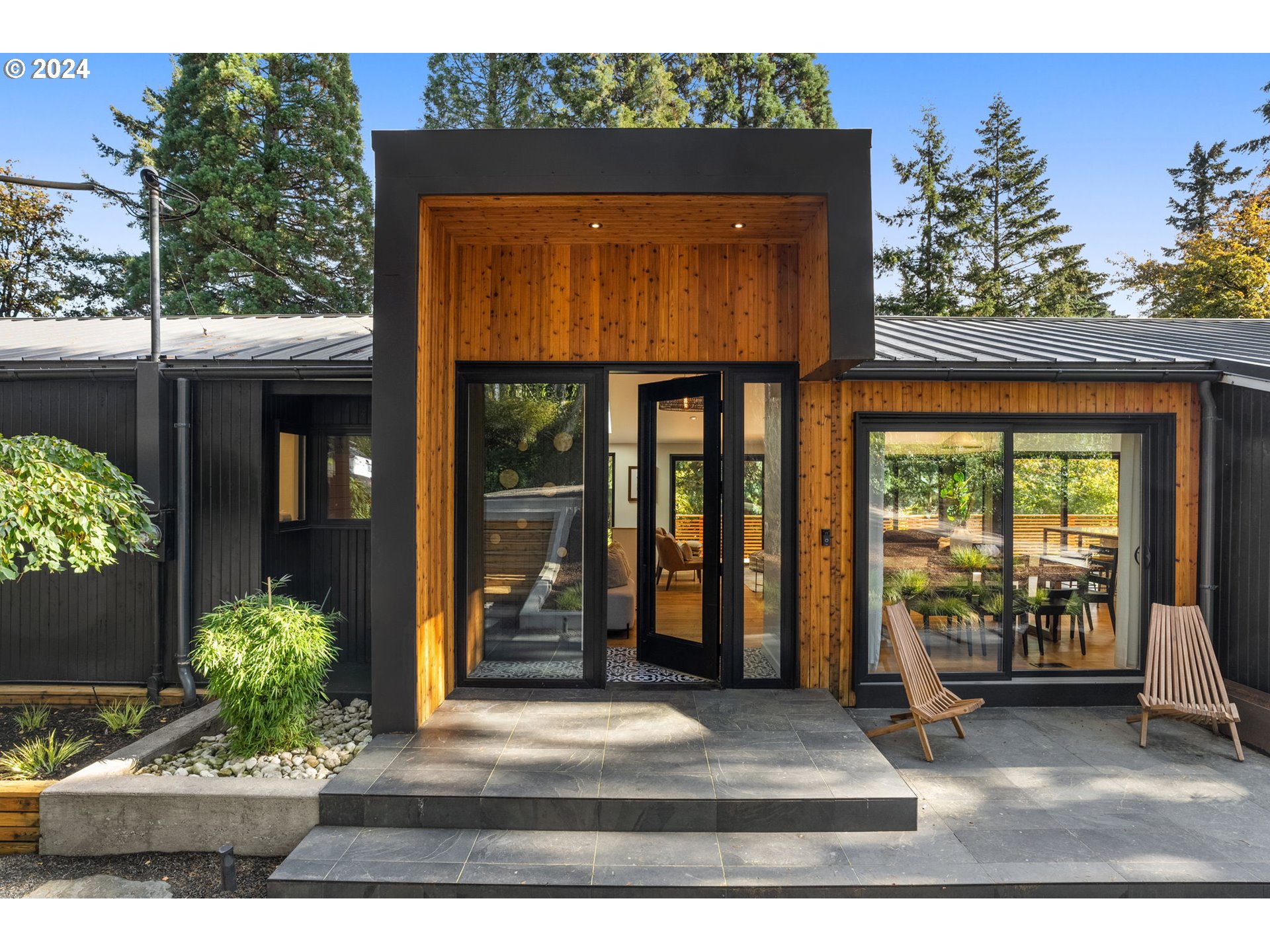 Modern contemporary design with exceptional architecture and stylish liveability that includes a private detached office/studio. The striking entry with cedar accents welcomes you to an open living area complemented by a wall of windows, fireplace, and built ins. Solid oak cabinets anchor the sleek kitchen featuring a spacious marble island with room for seating. Floating cabinets and shelves flank the 6-burner range with custom hood. Floor to ceiling windows and sliders connect you to the outdoors and open to an expansive deck and flat back yard. Wide plank hardwood floors and a myriad of designer touches. Main floor primary suite with luxurious master bath and walk-in closet. The lower level has 2 additional bedrooms, large family room with fireplace and built-in wet bar along with ample space for impromptu gatherings, crafts, hobbie