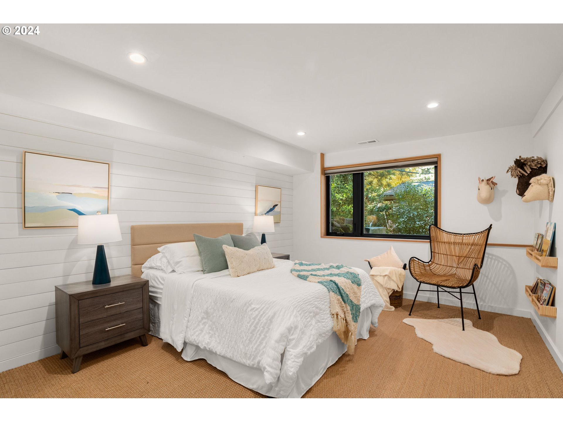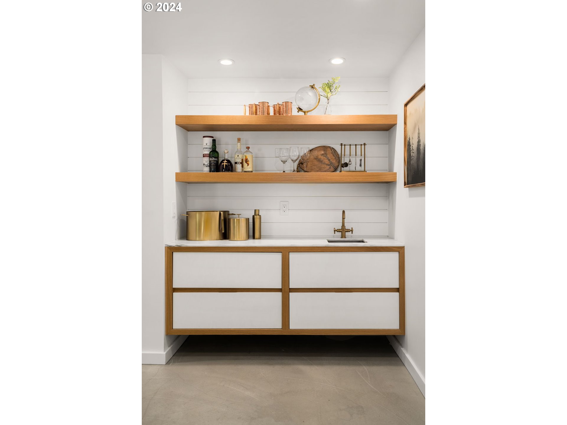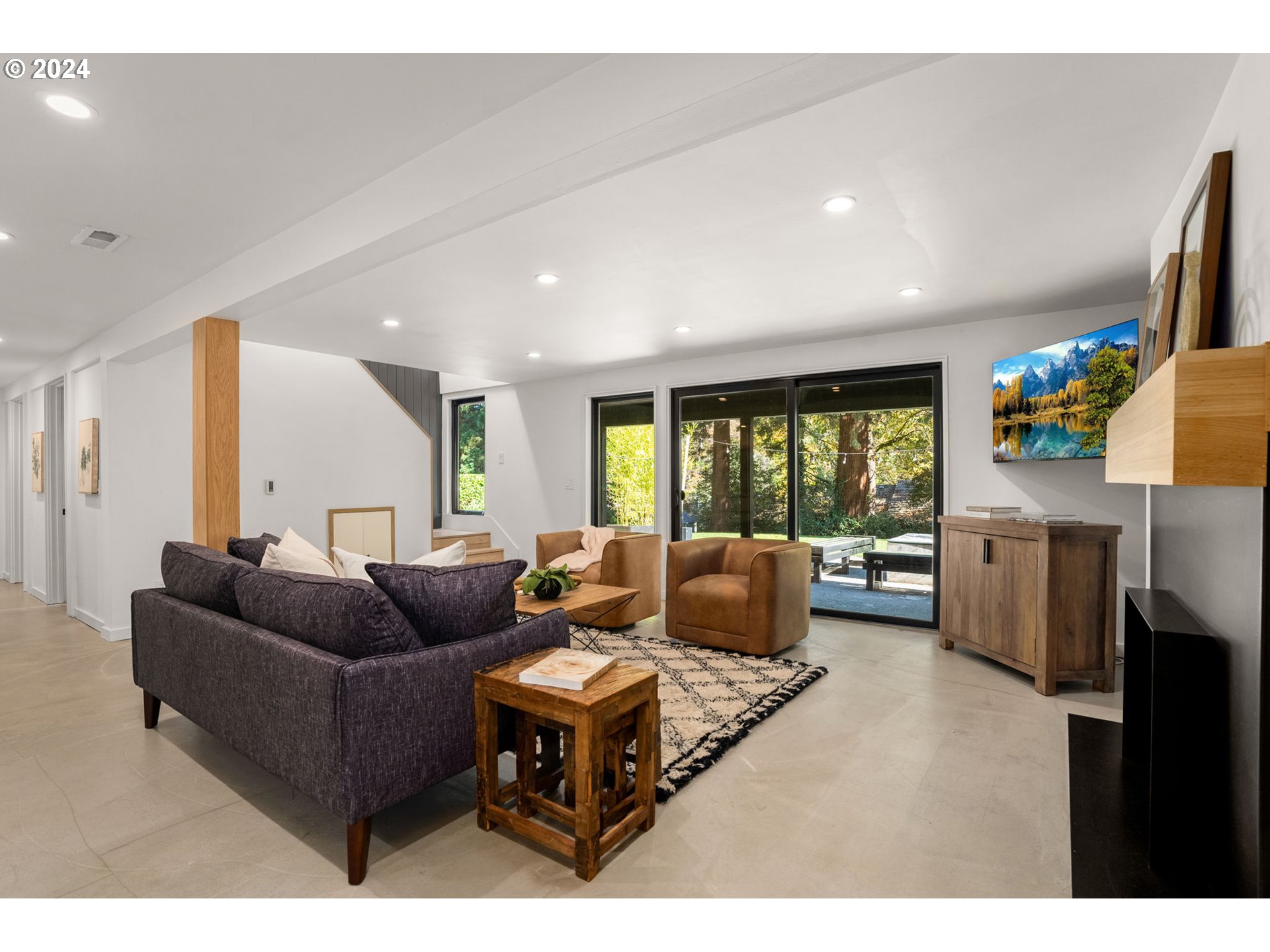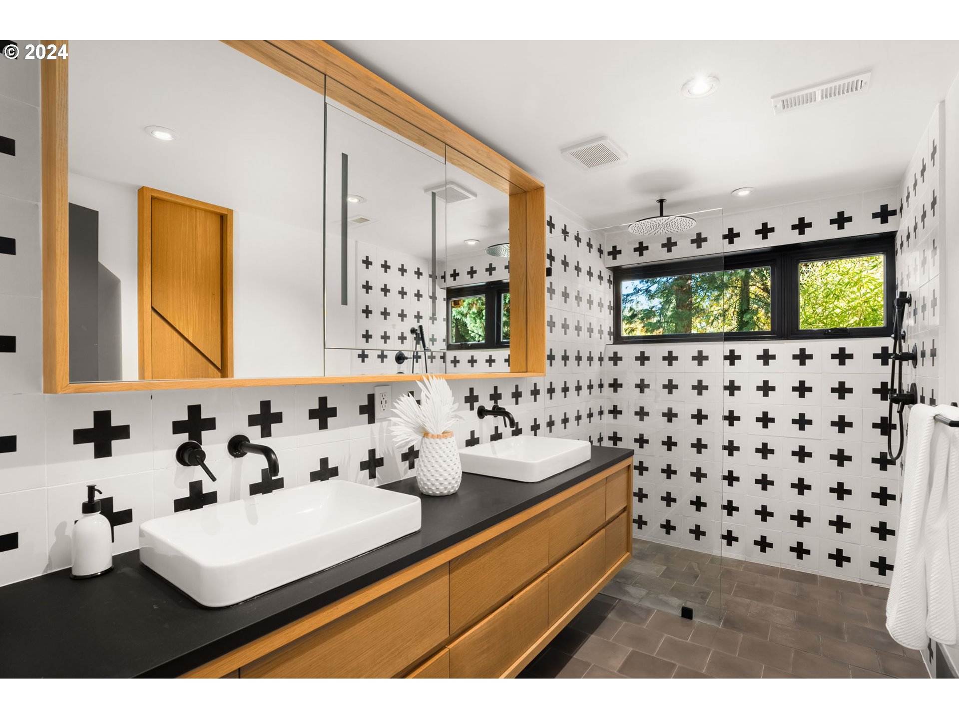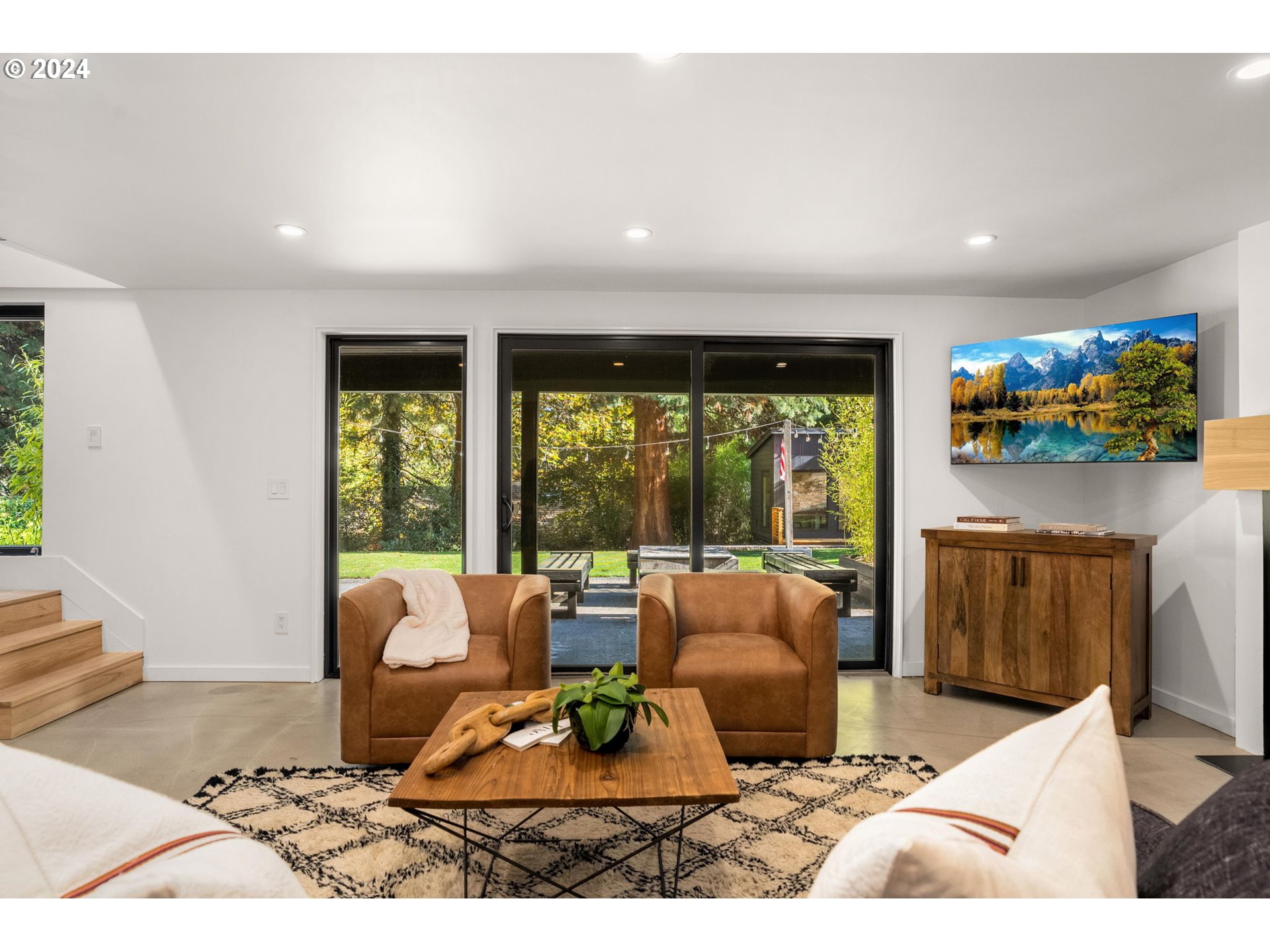 Modern contemporary design with exceptional architecture and stylish liveability that includes a private detached office/studio. The striking entry with cedar accents welcomes you to an open living area complemented by a wall of windows, fireplace, and built ins. Solid oak cabinets anchor the sleek kitchen featuring a spacious marble island with room for seating. Floating cabinets and shelves flank the 6-burner range with custom hood. Floor to ceiling windows and sliders connect you to the outdoors and open to an expansive deck and flat back yard. Wide plank hardwood floors and a myriad of designer touches. Main floor primary suite with luxurious master bath and walk-in closet. The lower level has 2 additional bedrooms, large family room with fireplace and built-in wet bar along with ample space for impromptu gatherings, crafts, hobbie