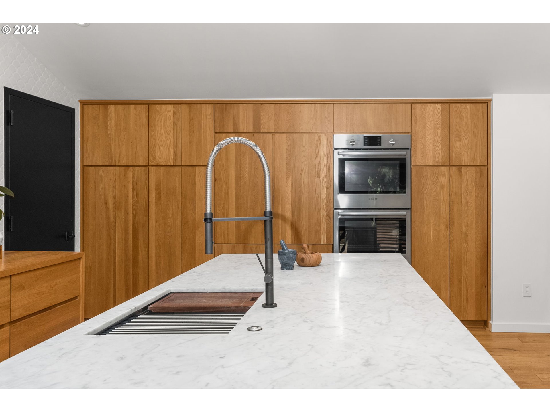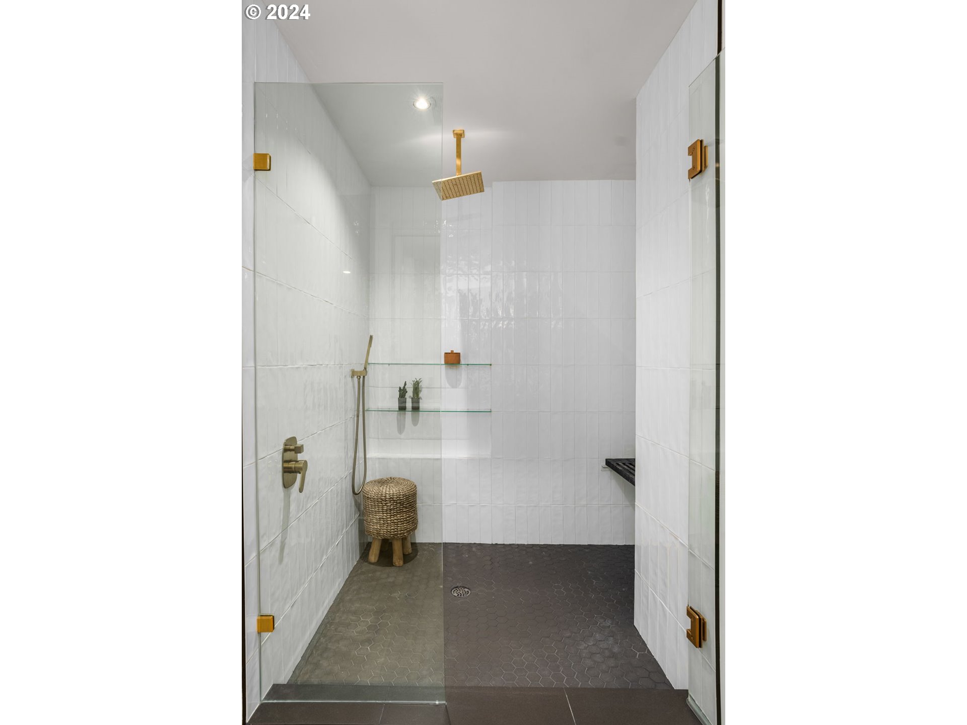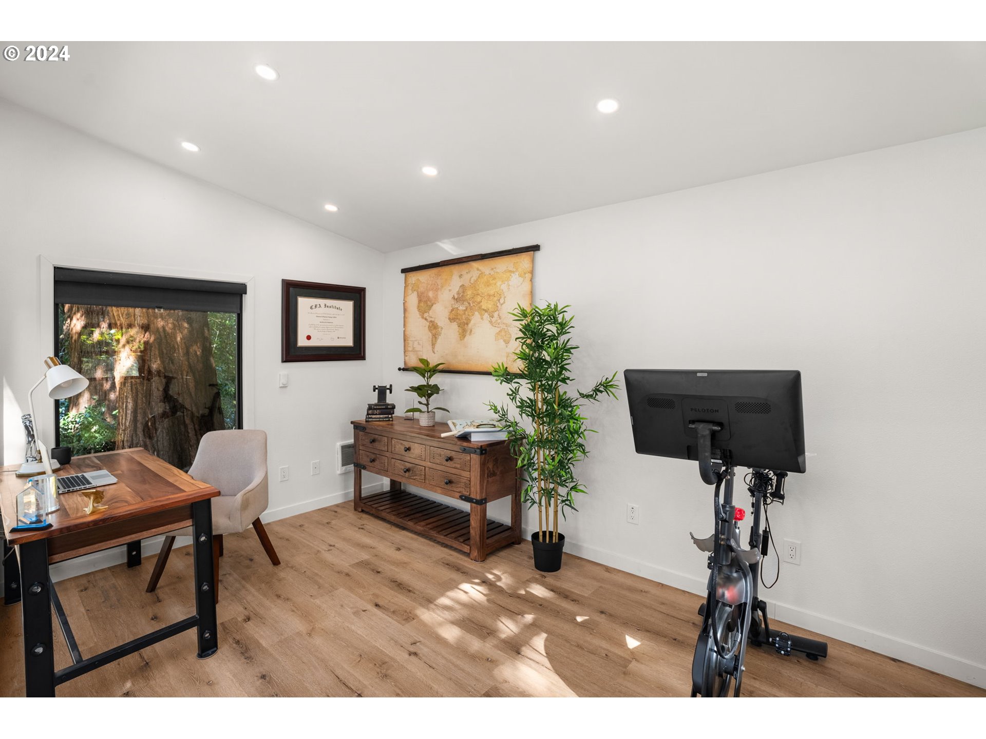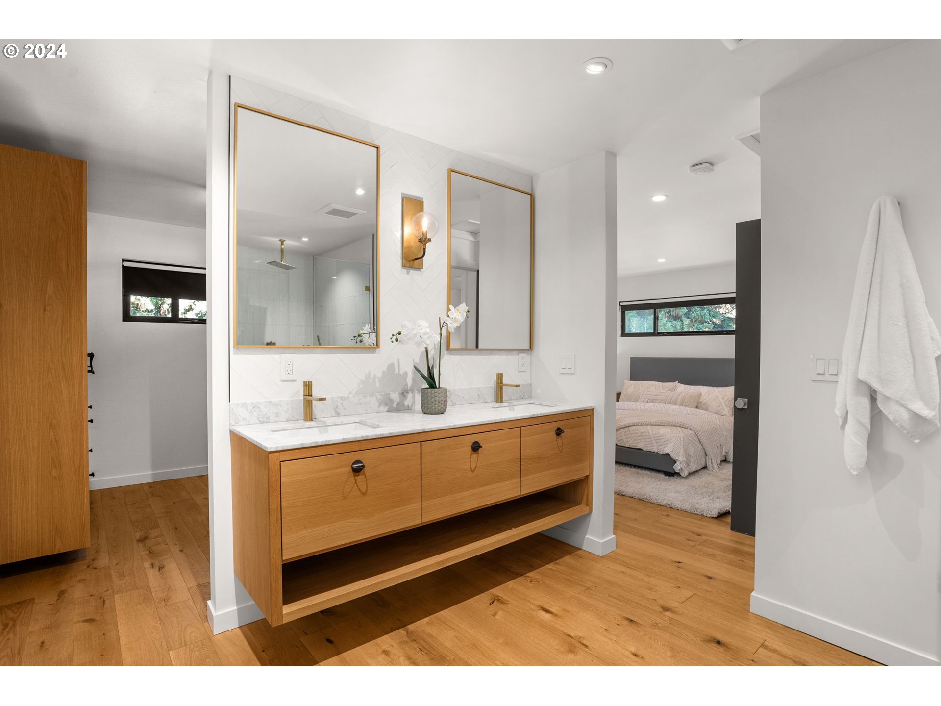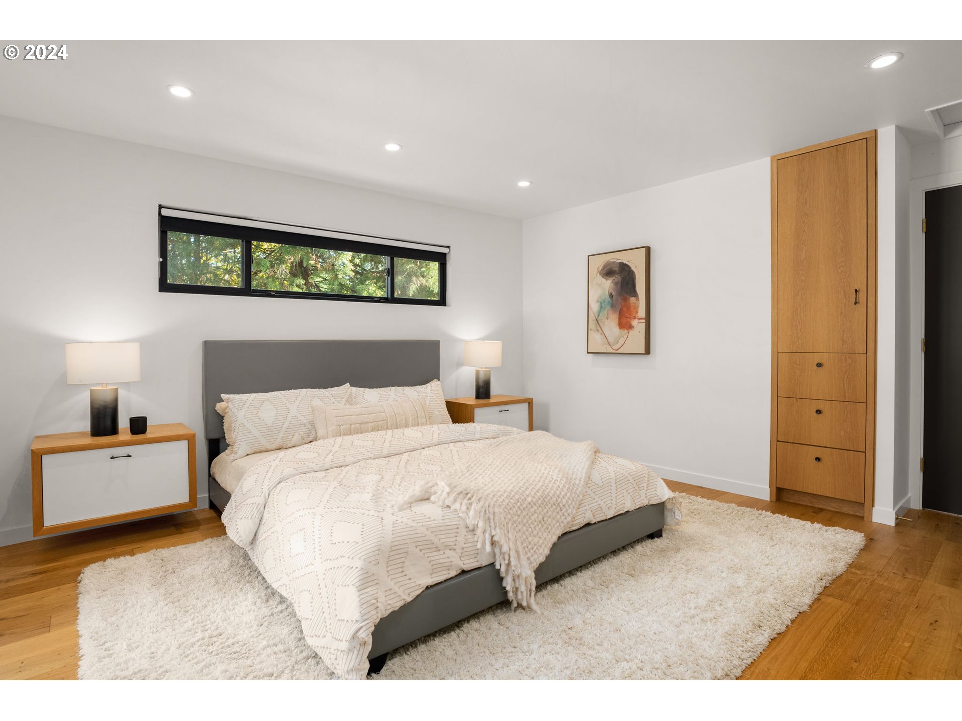 Modern contemporary design with exceptional architecture and stylish liveability that includes a private detached office/studio. The striking entry with cedar accents welcomes you to an open living area complemented by a wall of windows, fireplace, and built ins. Solid oak cabinets anchor the sleek kitchen featuring a spacious marble island with room for seating. Floating cabinets and shelves flank the 6-burner range with custom hood. Floor to ceiling windows and sliders connect you to the outdoors and open to an expansive deck and flat back yard. Wide plank hardwood floors and a myriad of designer touches. Main floor primary suite with luxurious master bath and walk-in closet. The lower level has 2 additional bedrooms, large family room with fireplace and built-in wet bar along with ample space for impromptu gatherings, crafts, hobbie