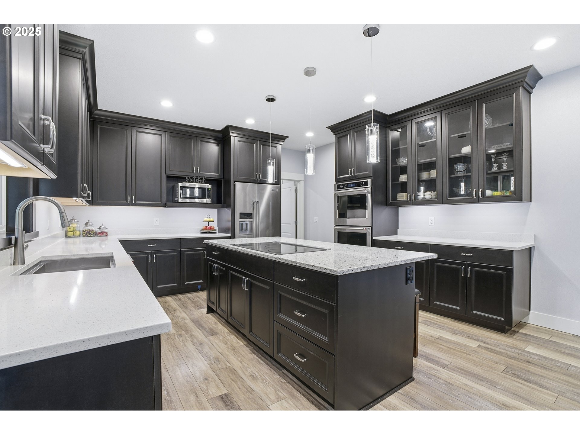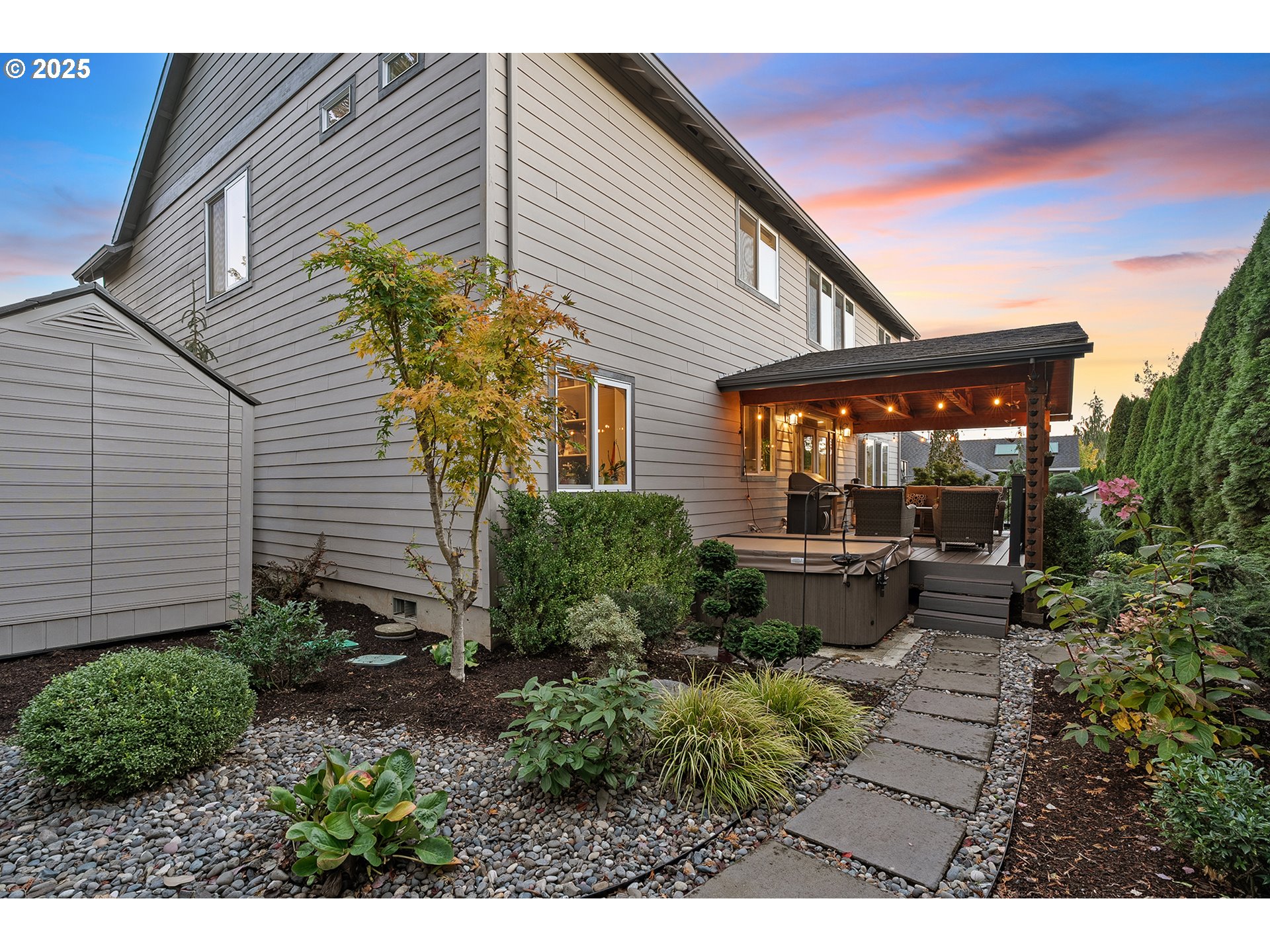 Tucked away on a quiet, private lot, this custom-designed and owner-built home offers the perfect blend of sophistication and comfort. Thoughtfully crafted with high-end finishes and a floor plan made for modern living, it’s ideal for families and entertainers alike.Step inside to an open and inviting main level featuring a dedicated office, spacious great room, and a designer kitchen with a walk-in pantry and convenient mud room, perfectly suited for a busy household. Upstairs, you’ll find five generous bedrooms, including a vaulted primary suite with a luxurious spa-like bathroom. One of the secondary bedrooms offers flexible use as a bonus room, playroom, or home gym.Enjoy year-round outdoor living on the private covered back deck, surrounded by low-maintenance landscaping that lets you relax instead of spending weekends on yard work. The extra-deep garage, ample driveway parking, and dedicated space for an RV or boat make this home as practical as it is beautiful.Quietly tucked away from the hustle and bustle, yet moments from top-rated schools, parks, shopping, restaurants, and freeway access, this Happy Valley gem offers privacy, luxury, and convenience all in one.