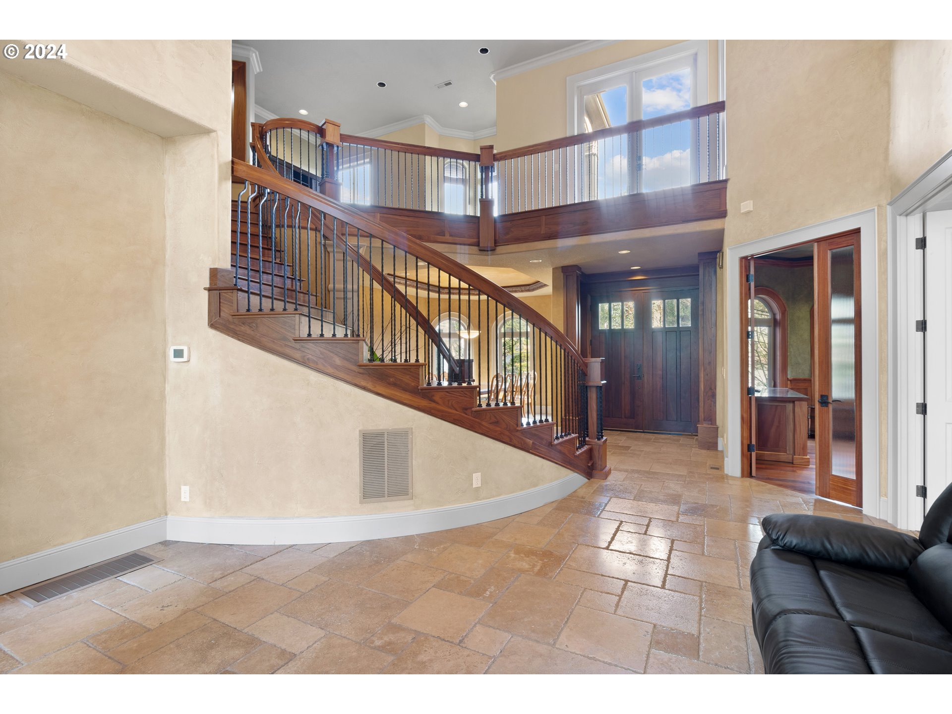 (503) 893-8874Wyler Estates Grand Estate Home on a Private 0.44 Acre Lot in a Gated Community. Sweeping lobby staircase. Luxurious finishes with Brazilian hardwoods, Travertine stone, and arched windows on each level. Enjoy the cathedral ceilings, floor-to-ceiling cabinetry, and abundant built-ins. Main level owners suite. 7 total bedrooms, 5.5 bathrooms. Loft and Juliet balcony upstairs. Convenient separate living quarters downstairs with a gourmet kitchen, sauna, separate laundry and entry. Close to Happy Valley Park with scheduled local events. Click the virtual tour link for 3D home tour and floorplan!